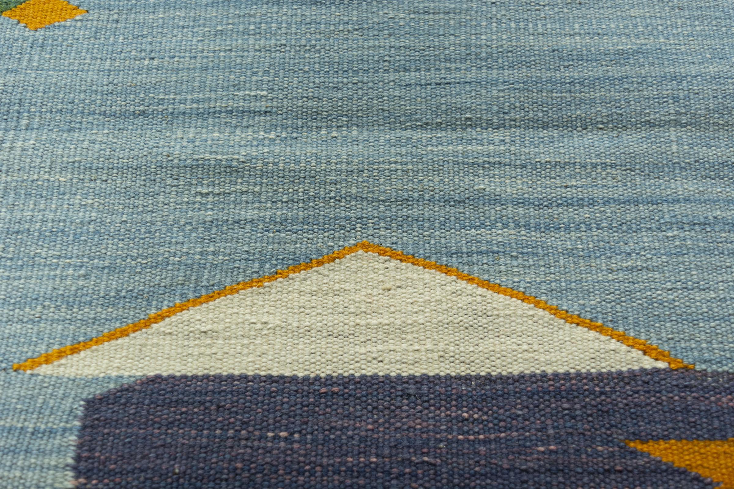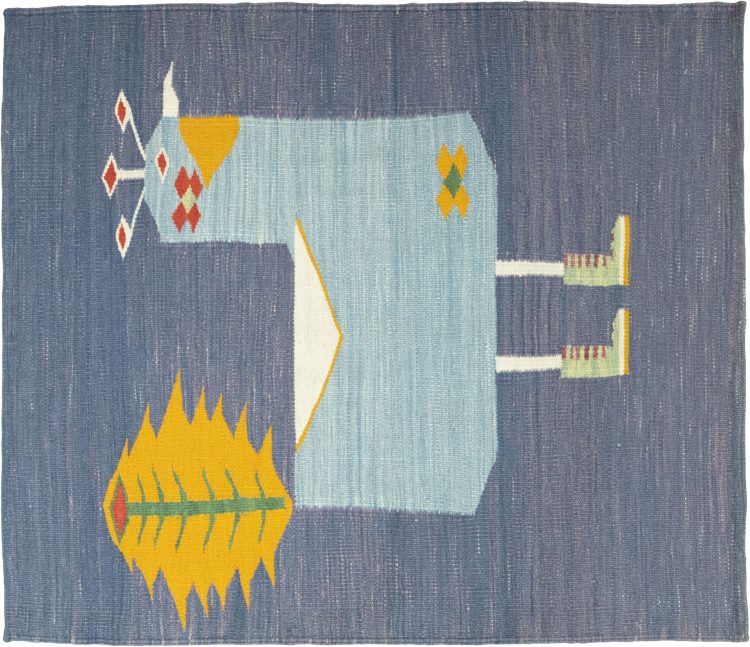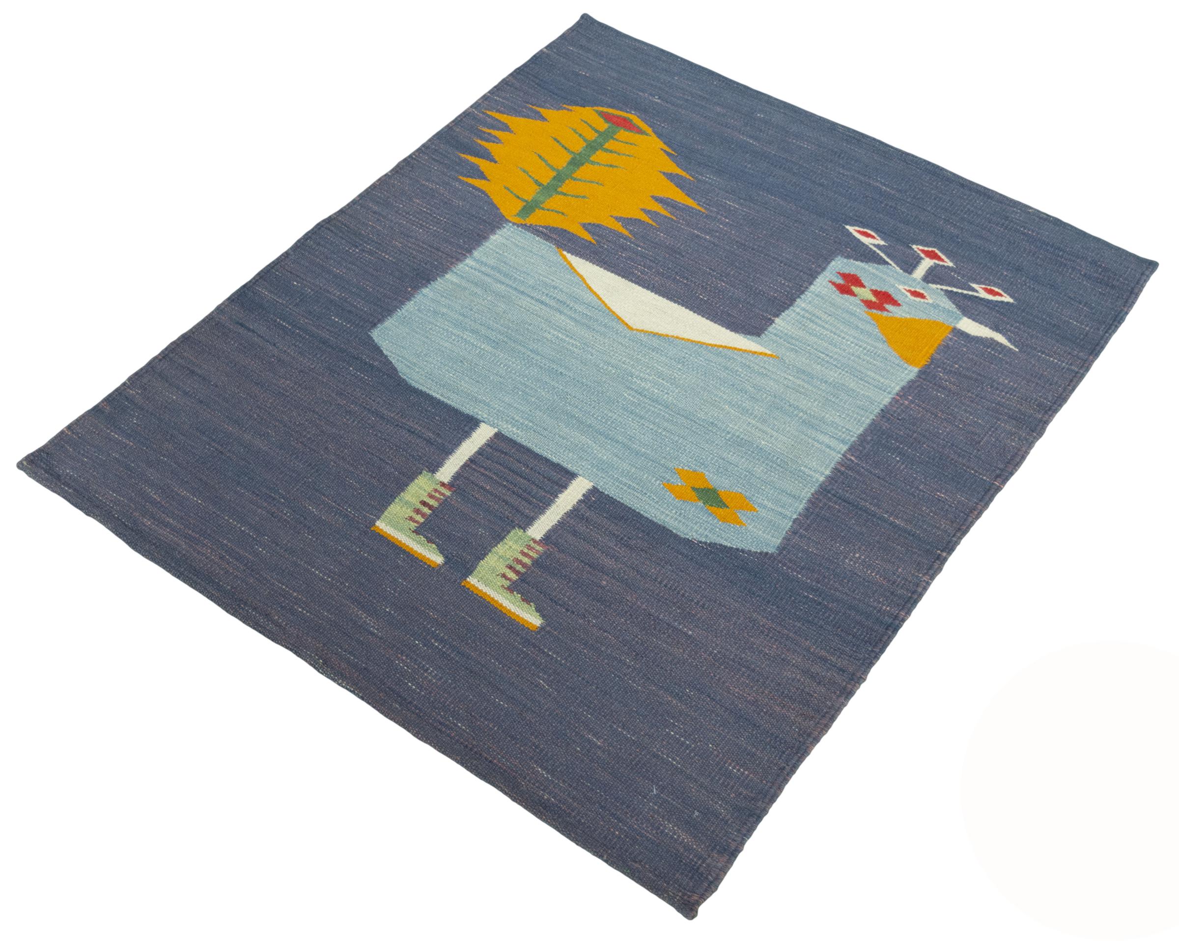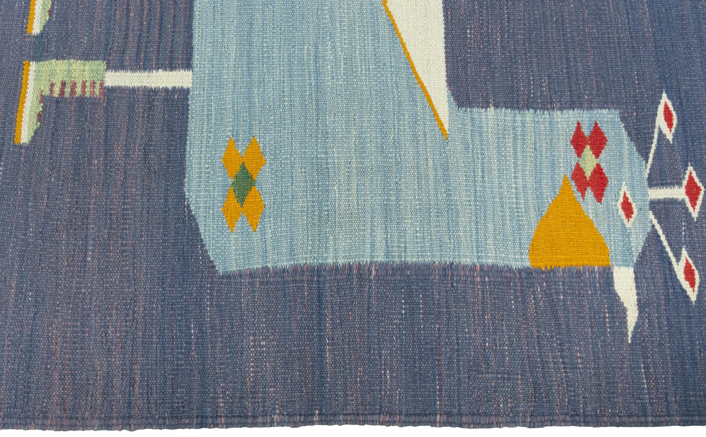 This rug was made as a flat weave by hand on a loom. Flatweave is the term used to describe rugs that have no pile. As the name promises, these rugs are woven and not knotted. This results in a flat rug with a structured surface. Flatweaves are not as soft and usually thinner than knotted rugs. At the same time they are much less complex to manufacture and can usually be laid out from both sides (front and back). Their patterns are usually geometric, which is determined by the fabric.