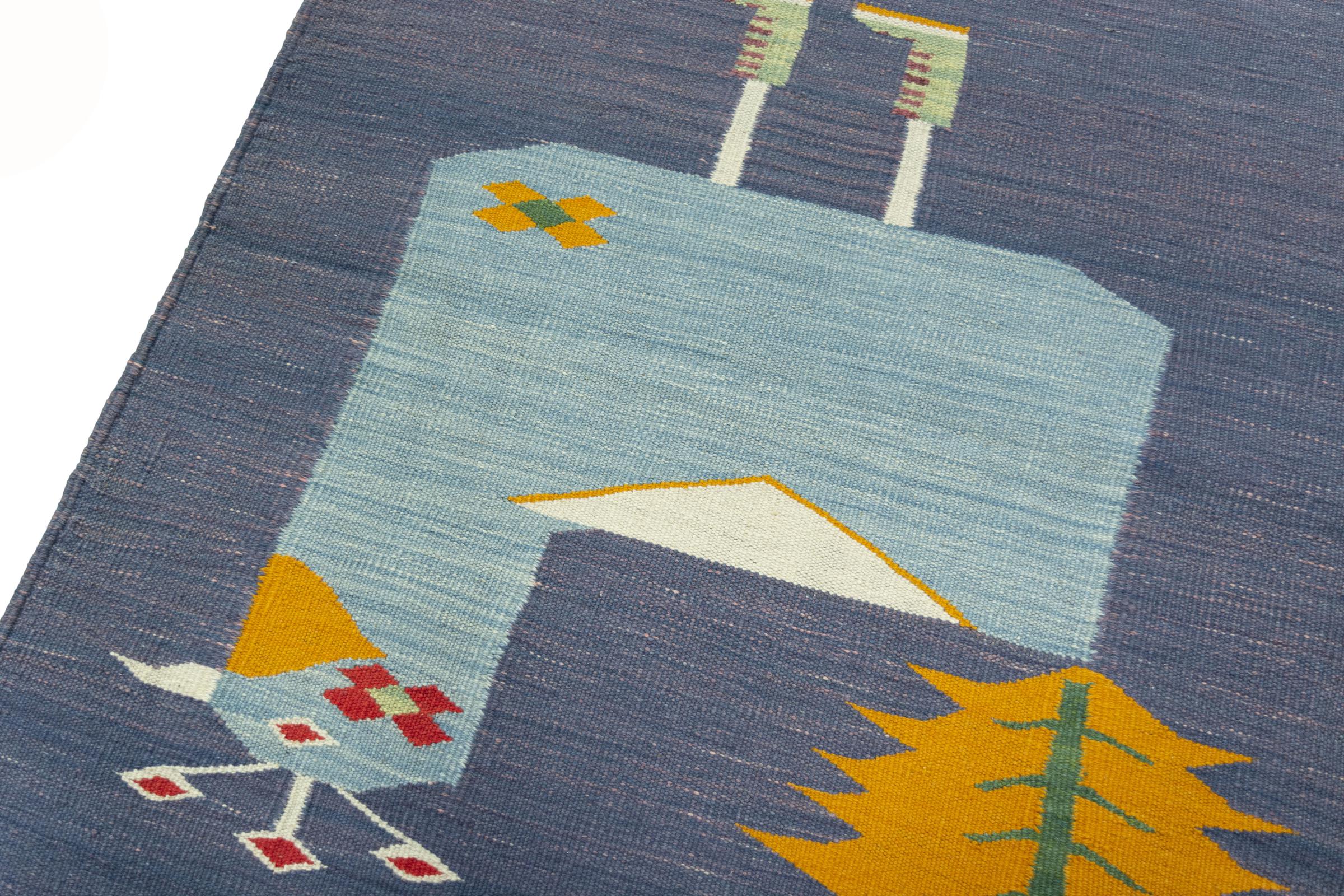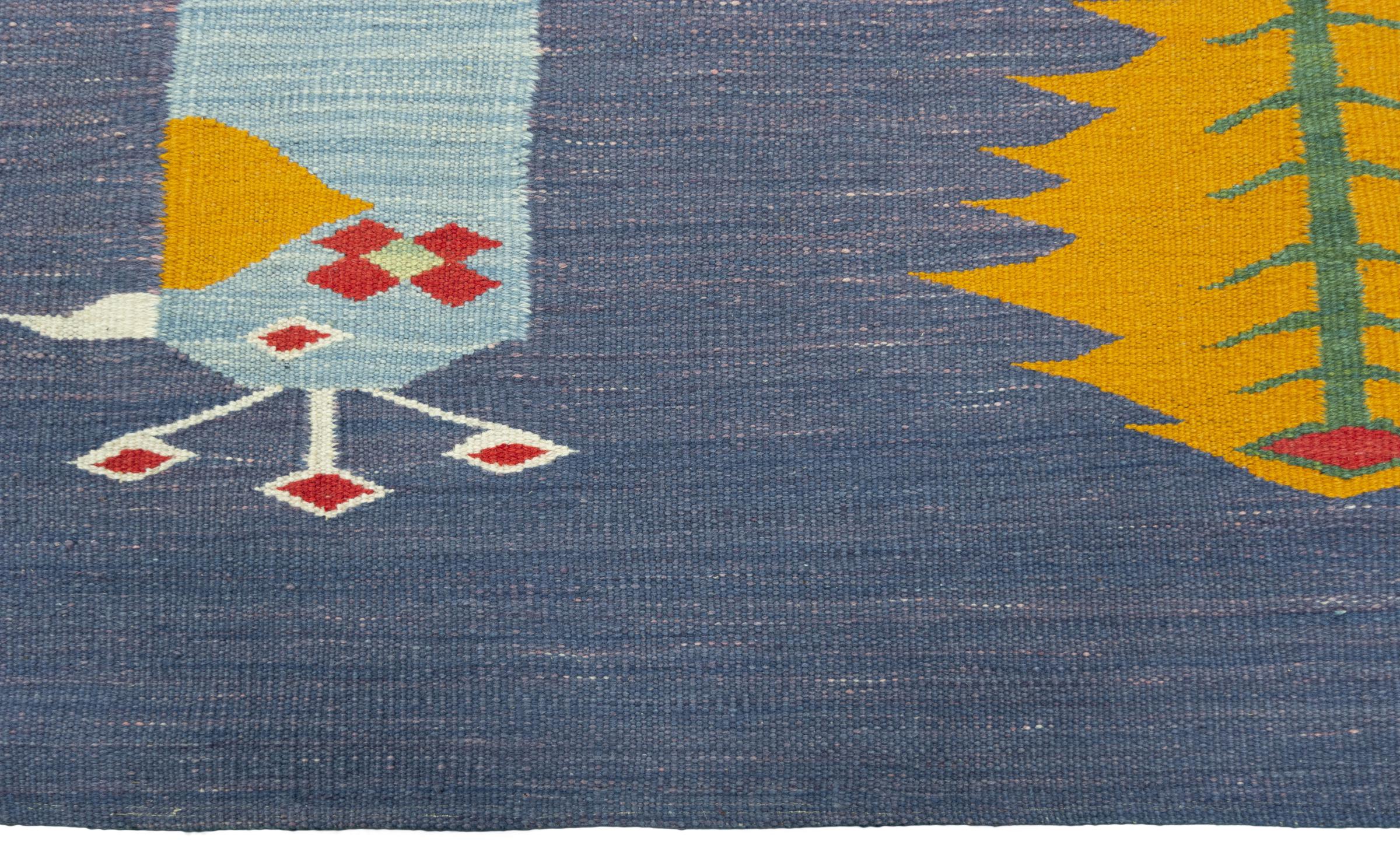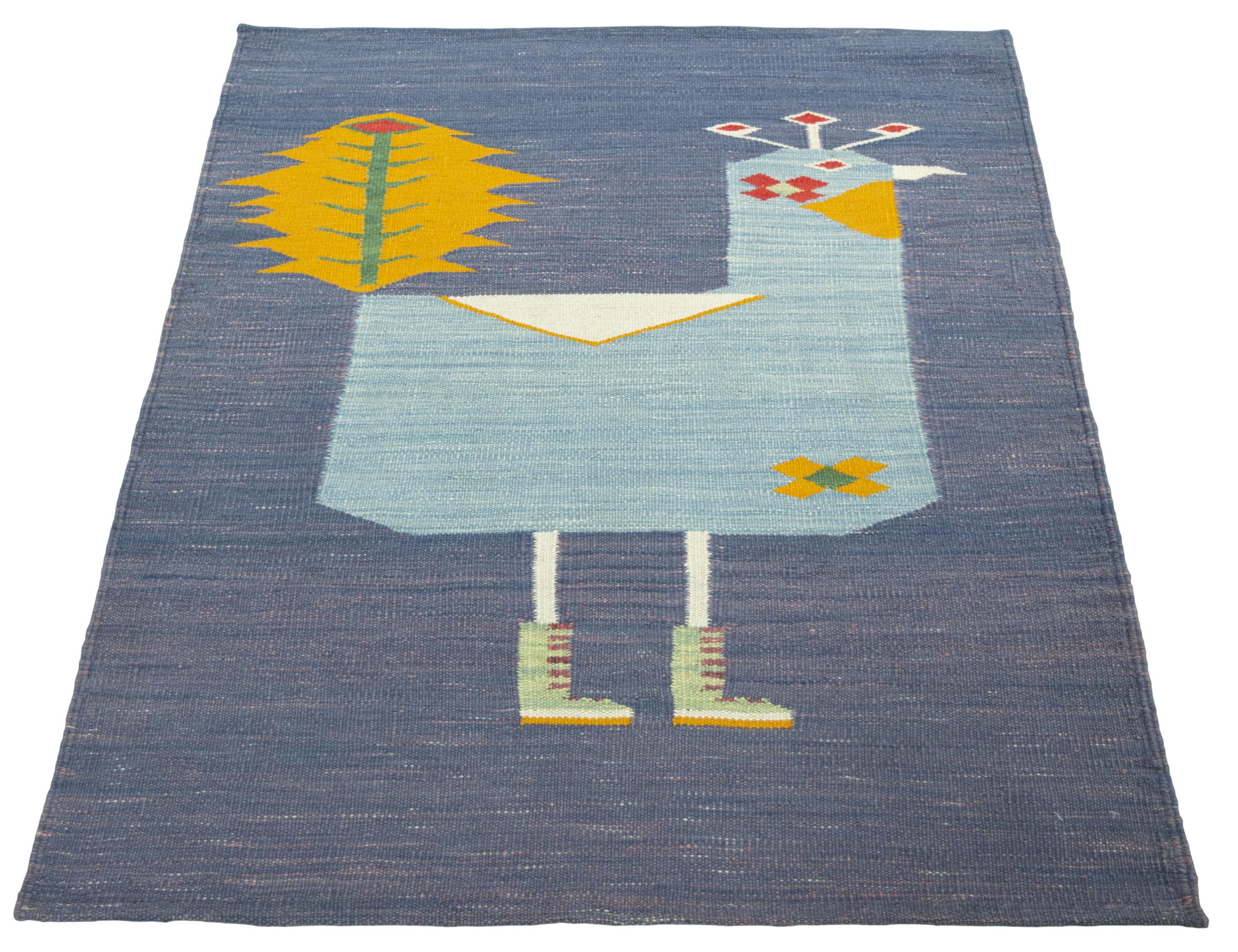 This rug was made as a flat weave by hand on a loom. Flatweave is the term used to describe rugs that have no pile. As the name promises, these rugs are woven and not knotted. This results in a flat rug with a structured surface. Flatweaves are not as soft and usually thinner than knotted rugs. At the same time they are much less complex to manufacture and can usually be laid out from both sides (front and back). Their patterns are usually geometric, which is determined by the fabric.