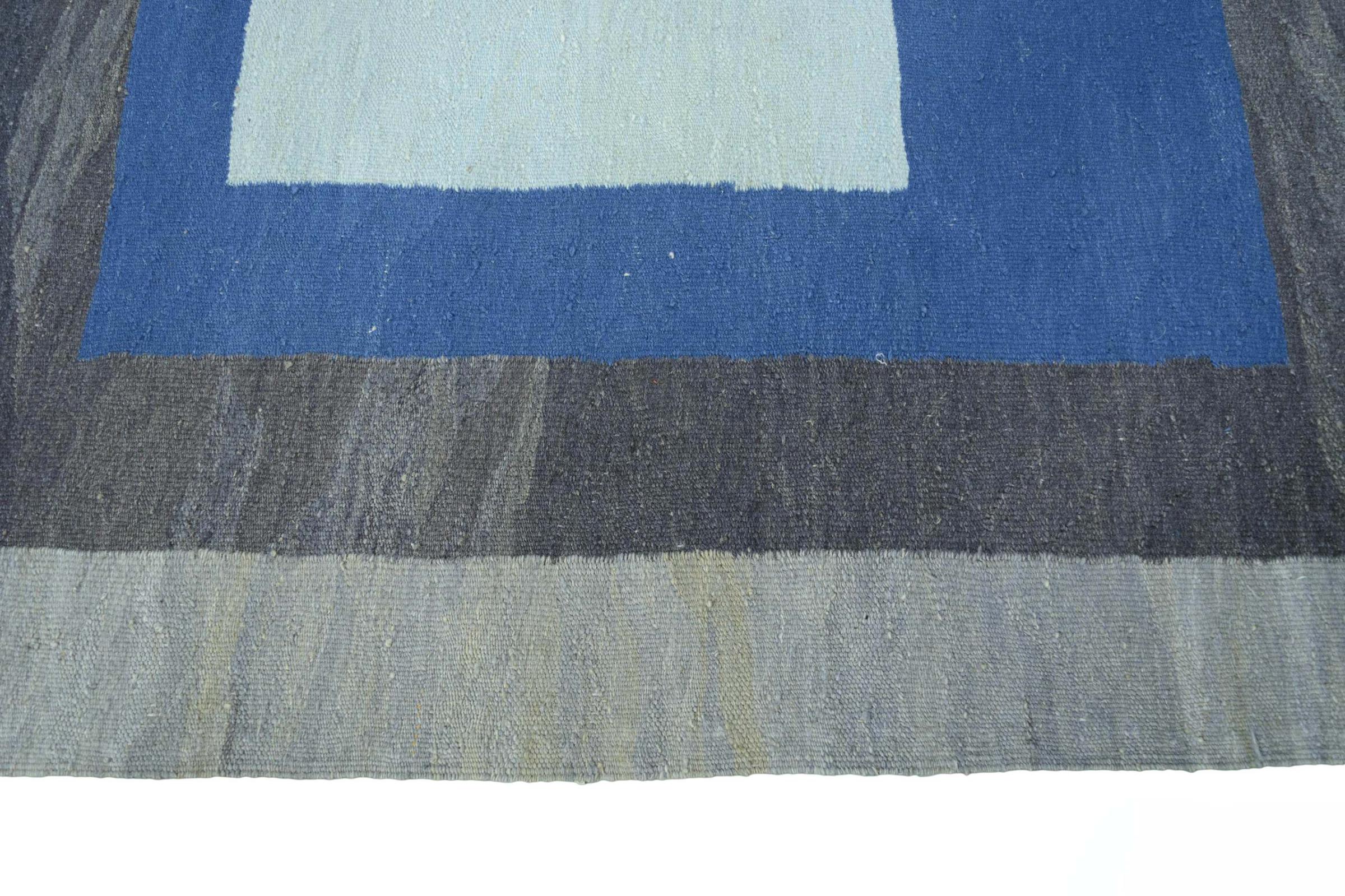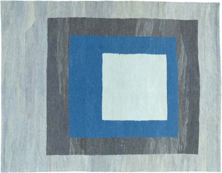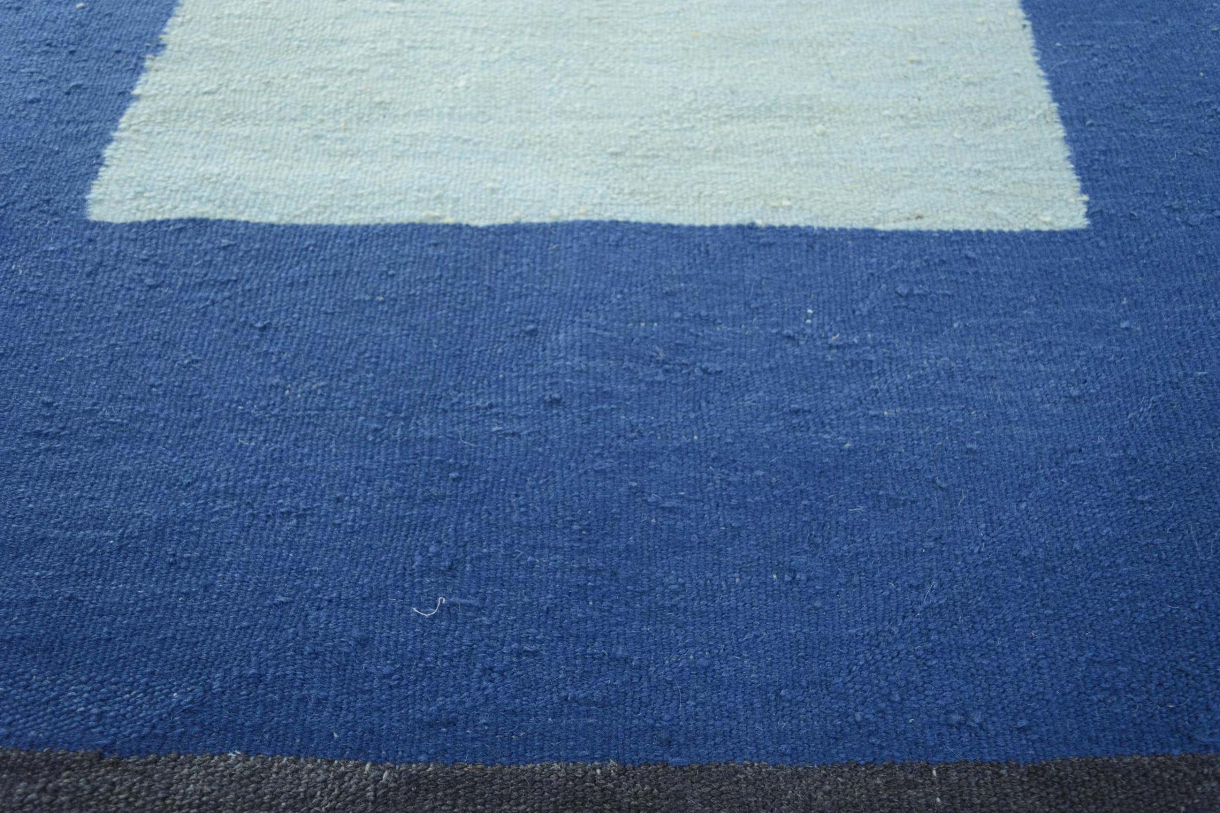 This rug was made as a flat weave by hand on a loom. Flatweave is the term used to describe rugs that have no pile. As the name promises, these rugs are woven and not knotted. This results in a flat rug with a structured surface. Flatweaves are not as soft and usually thinner than knotted rugs. At the same time they are much less complex to manufacture and can usually be laid out from both sides (front and back). Their patterns are usually geometric, which is determined by the fabric.