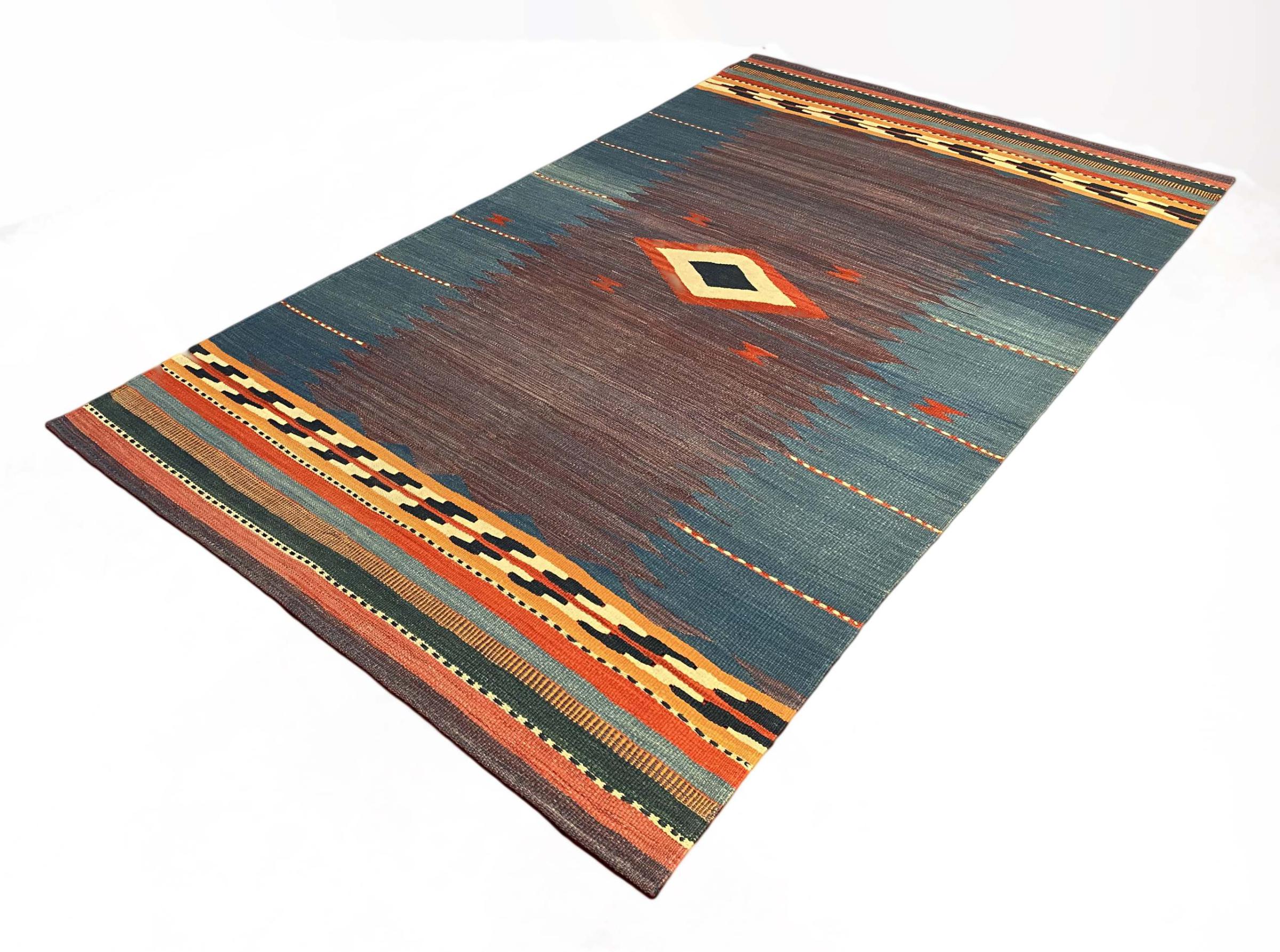 These kilim rugs show a decisive difference to hand-knotted rugs - they are woven by hand. Thus, they do not have a high pile of wool and are often flatter and rougher than knotted wool rugs. Their making is less elaborate and so they are usually much more affordable. As an advantage, kilim rugs are also much lighter and can be laid out from the front and back side. Hand-woven kilims originally come from the former Persia and are now also often made in Afghanistan. They have rather simple, straightforward patterns, which are determined by their weaving technique.