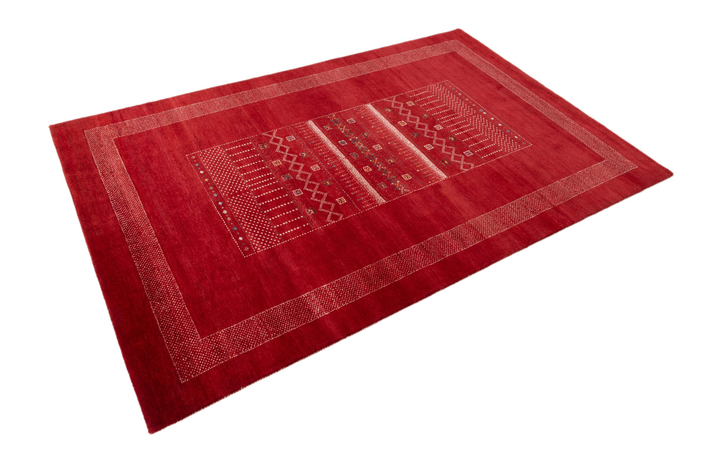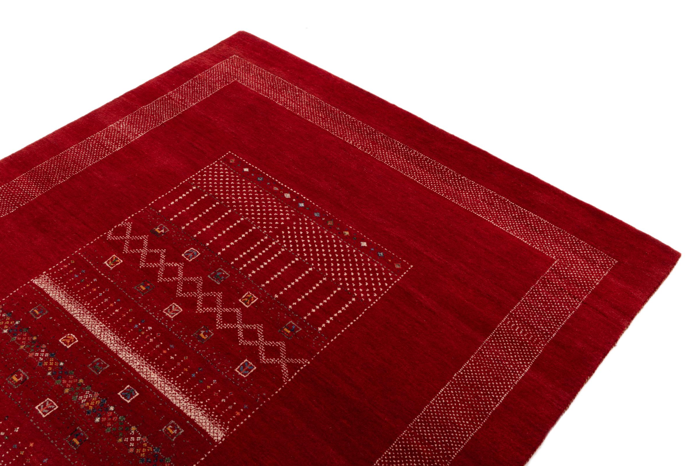 This hand knotted Indo Gabbeh Lorifbaft is crafted to a very high quality. In India it is not simply oriented at the Persian original, but rather creates his very own class. Fine sheep wool, robust knotting and durable colours are important aspects for their quality. A beautiful modern carpet can change entire rooms. This one certainly does. Only a Persian Gabbeh rug can exceed this quality.