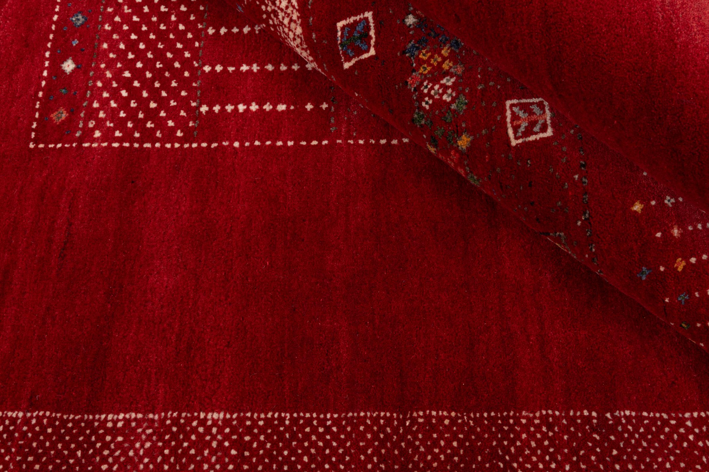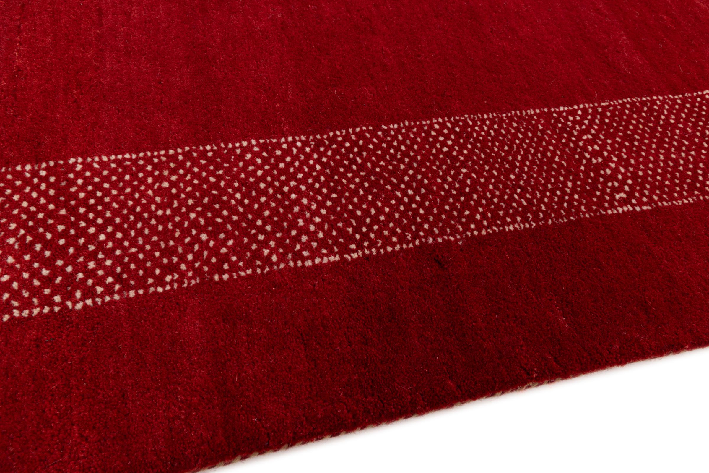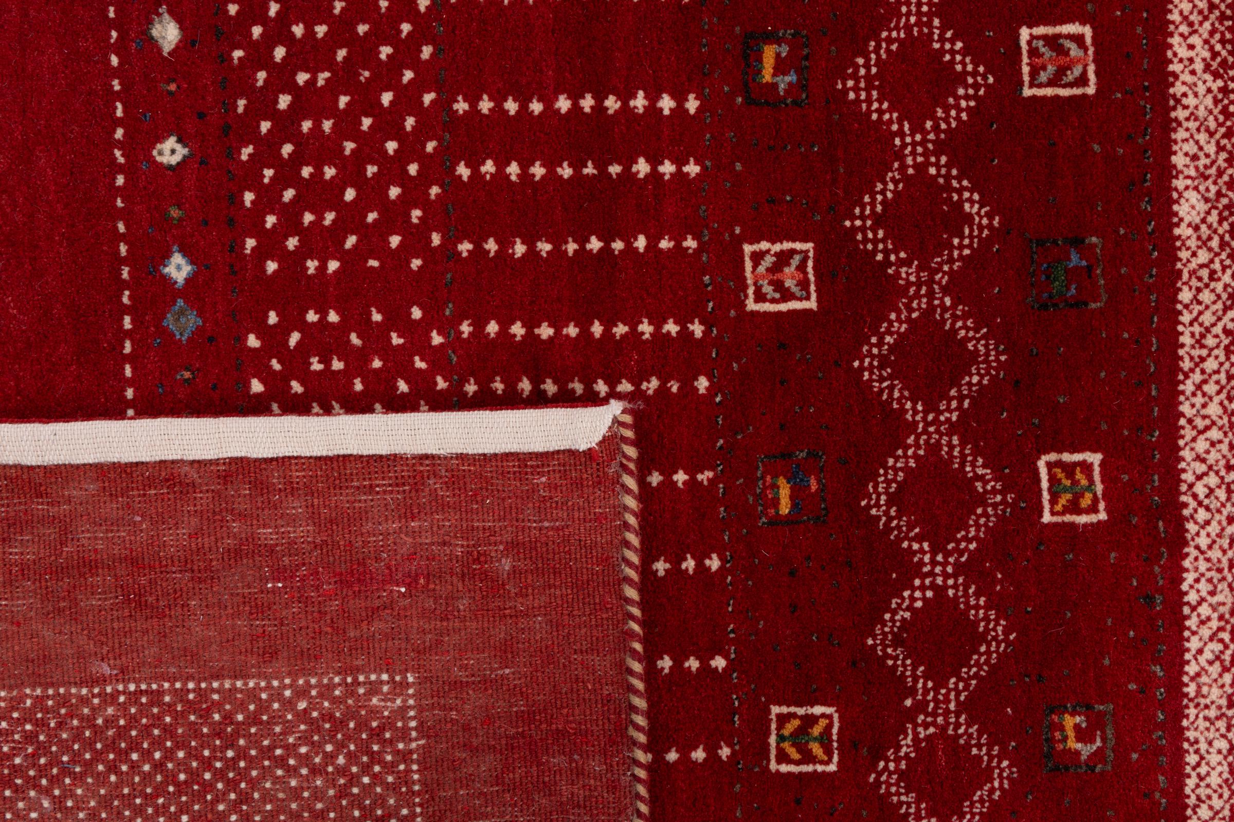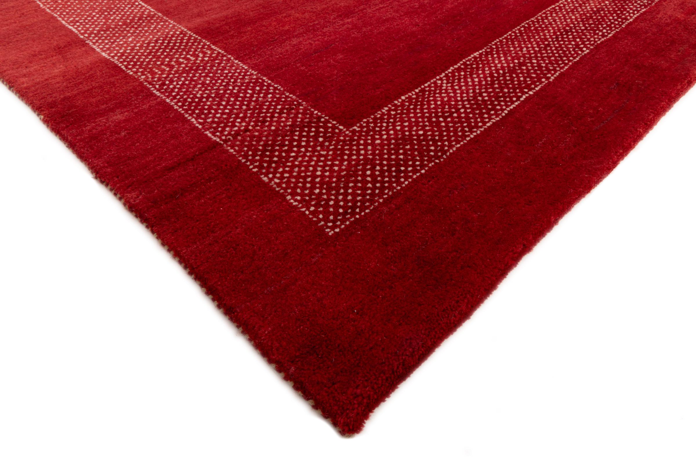 This beautiful Gabbeh rug was hand knotted in India. Indian Gabbeh rugs are made of soft sheep's wool, are comfortable on the feet and have heat insulating properties. Mostly their designs are simple and contemporary. They were inspired by nomadic tribes, who have incorporated very simple motifs from their environment into their rugs. Indian Gabbeh rugs do not fully come close to the quality of a Persian Gabbeh, but have a very favorable price-performance ratio. Therefore, they are perfectly suitable as hand-knotted beginner rugs.