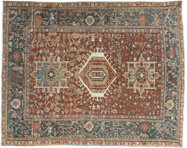 Carpet ID: 208778007462517 Size: 185x145 cm Thickness: ap. 5 mm Knot density: 160 000 - 200 000 / m² Manufacturing: Knotted by hand Pile: Handspun wool Warp: Cotton Condition / Conservation Perfect Origin: Persia Age: Antique, over 80 years Weight: ap. 8 kg In stock: Unique - Only 1 in stock