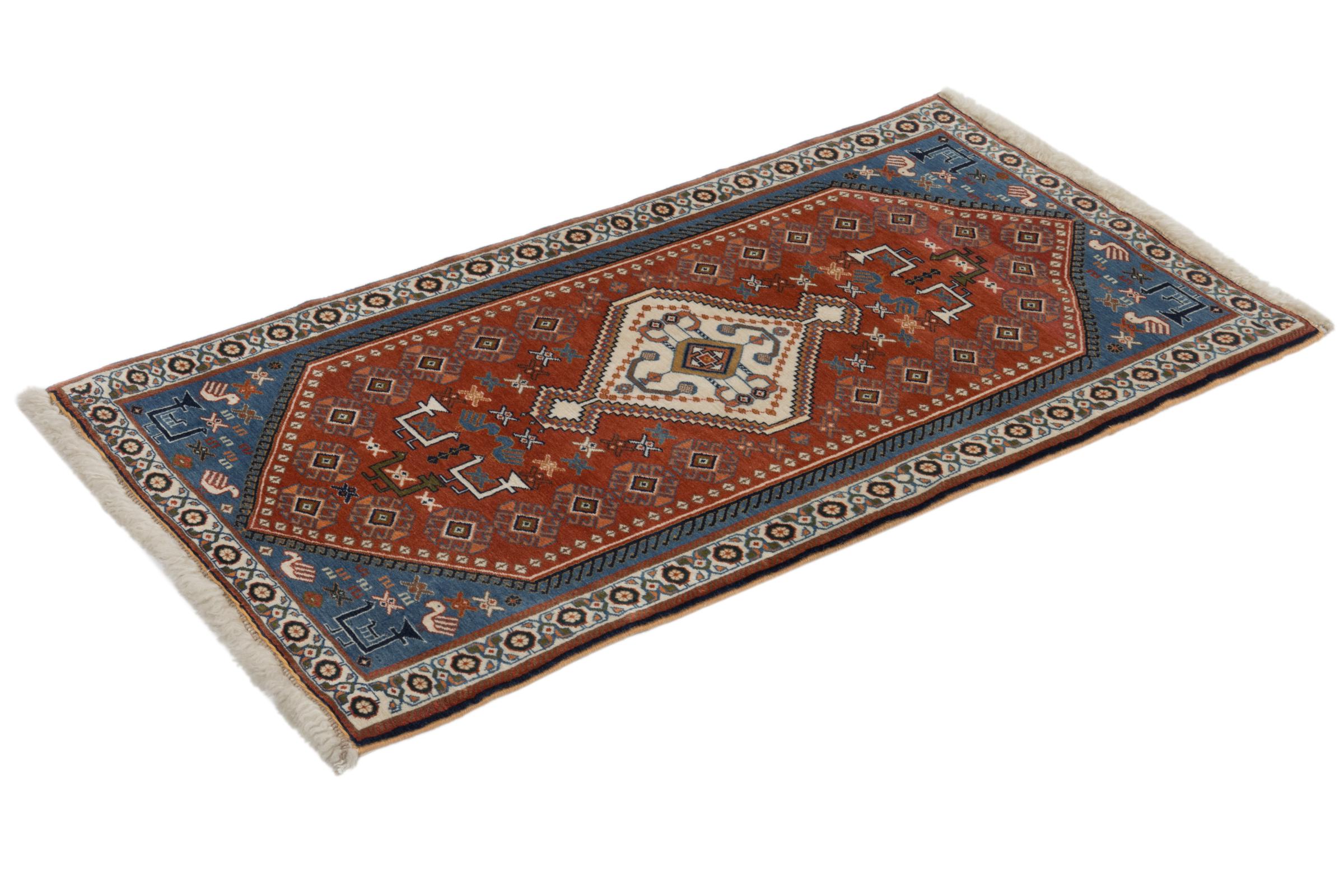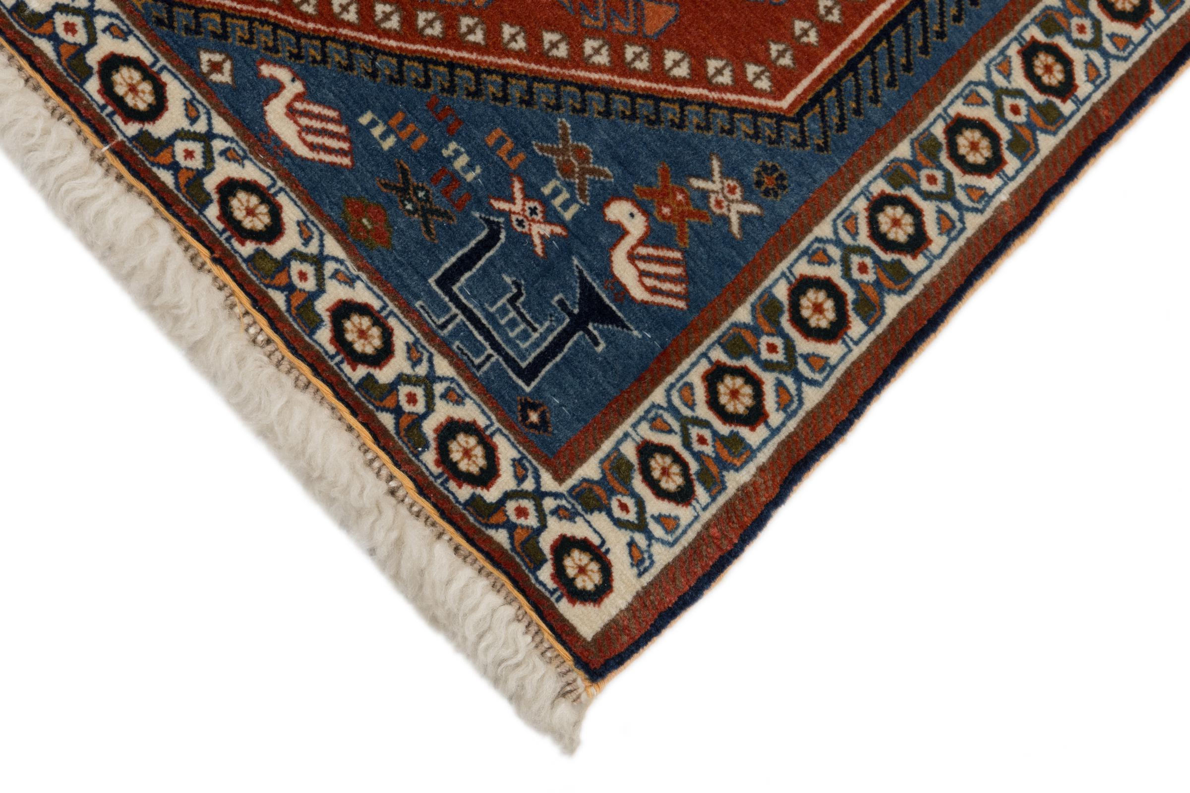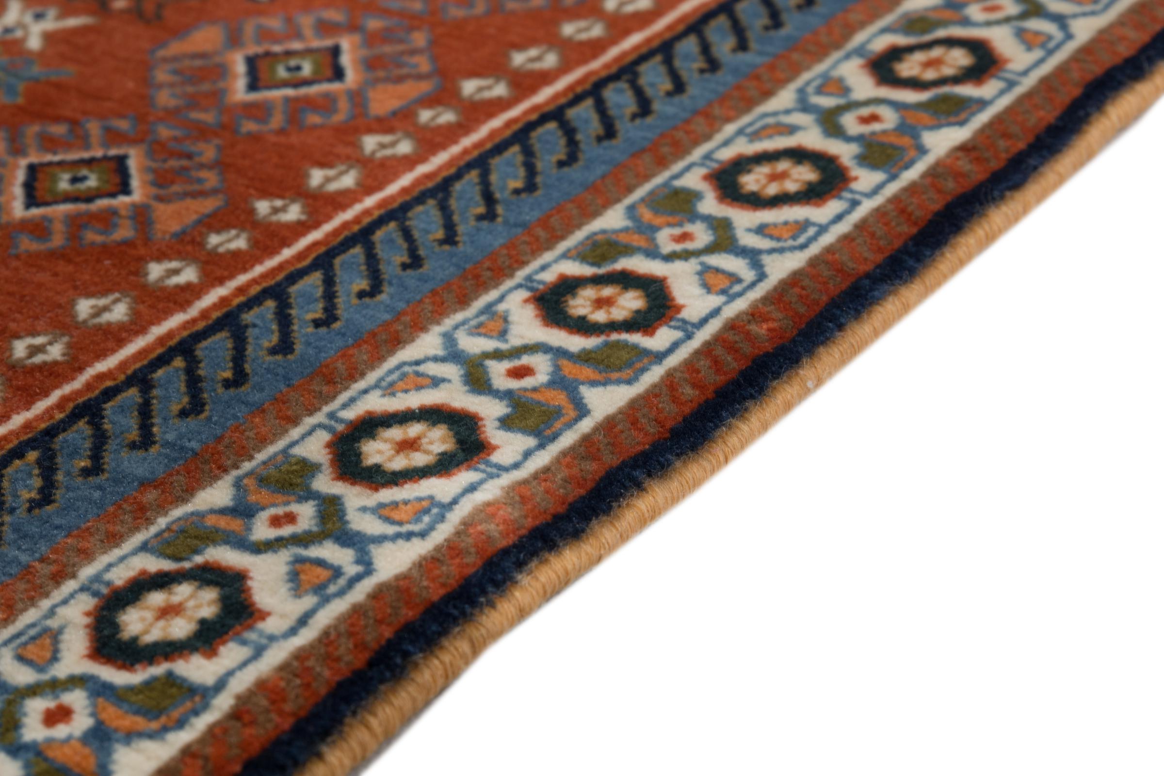 This rug belongs to village and nomadic rugs from Iran, formerly Persia. This type of rug is knotted by hand in smaller towns and villages in old tradition. Even nomads still knot Persian rugs in the open air. The rugs are knotted without a draft and completely from the mind. They are characterized by classical ornaments, which are arranged in straight and geometrical patterns. Thanks to their cultural-traditional origin, these rugs have a unique character that embodies ancient Persia.
