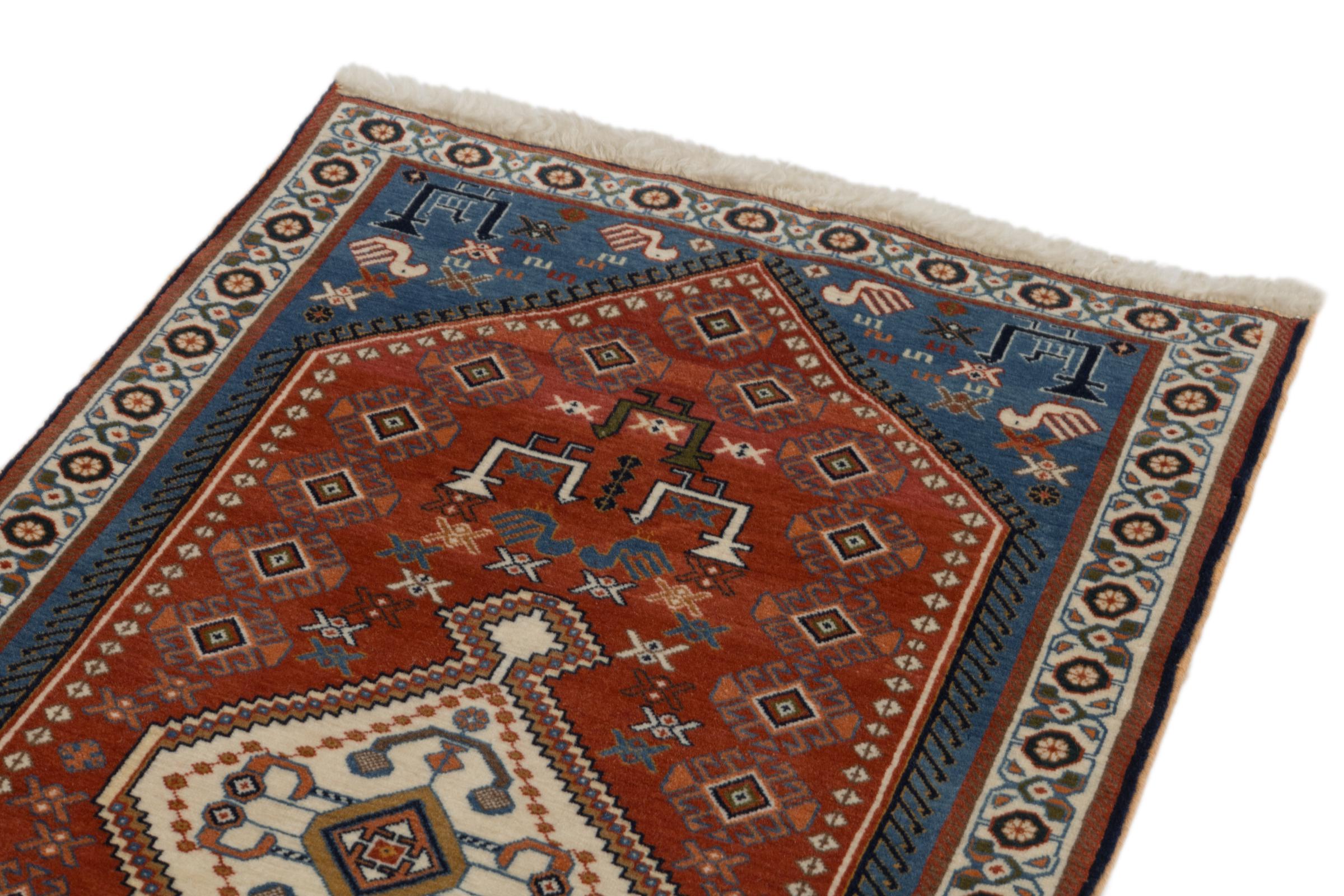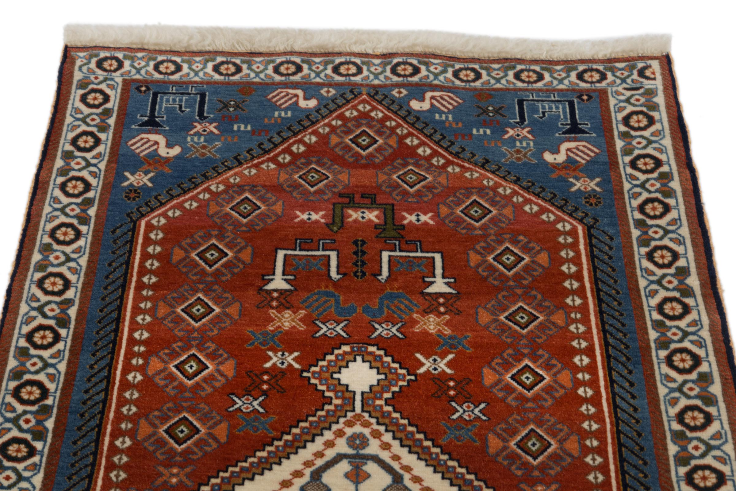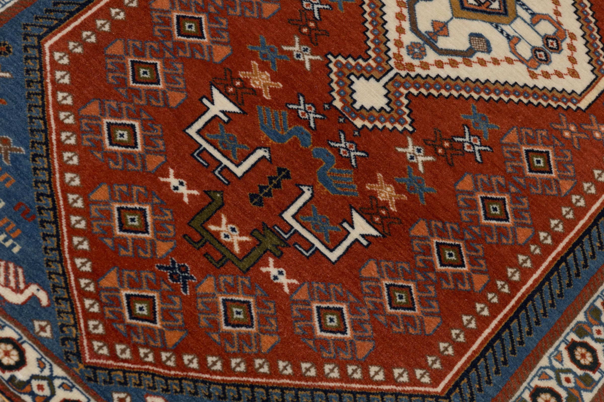 This rug belongs to village and nomadic rugs from Iran, formerly Persia. This type of rug is knotted by hand in smaller towns and villages in old tradition. Even nomads still knot Persian rugs in the open air. The rugs are knotted without a draft and completely from the mind. They are characterized by classical ornaments, which are arranged in straight and geometrical patterns. Thanks to their cultural-traditional origin, these rugs have a unique character that embodies ancient Persia.