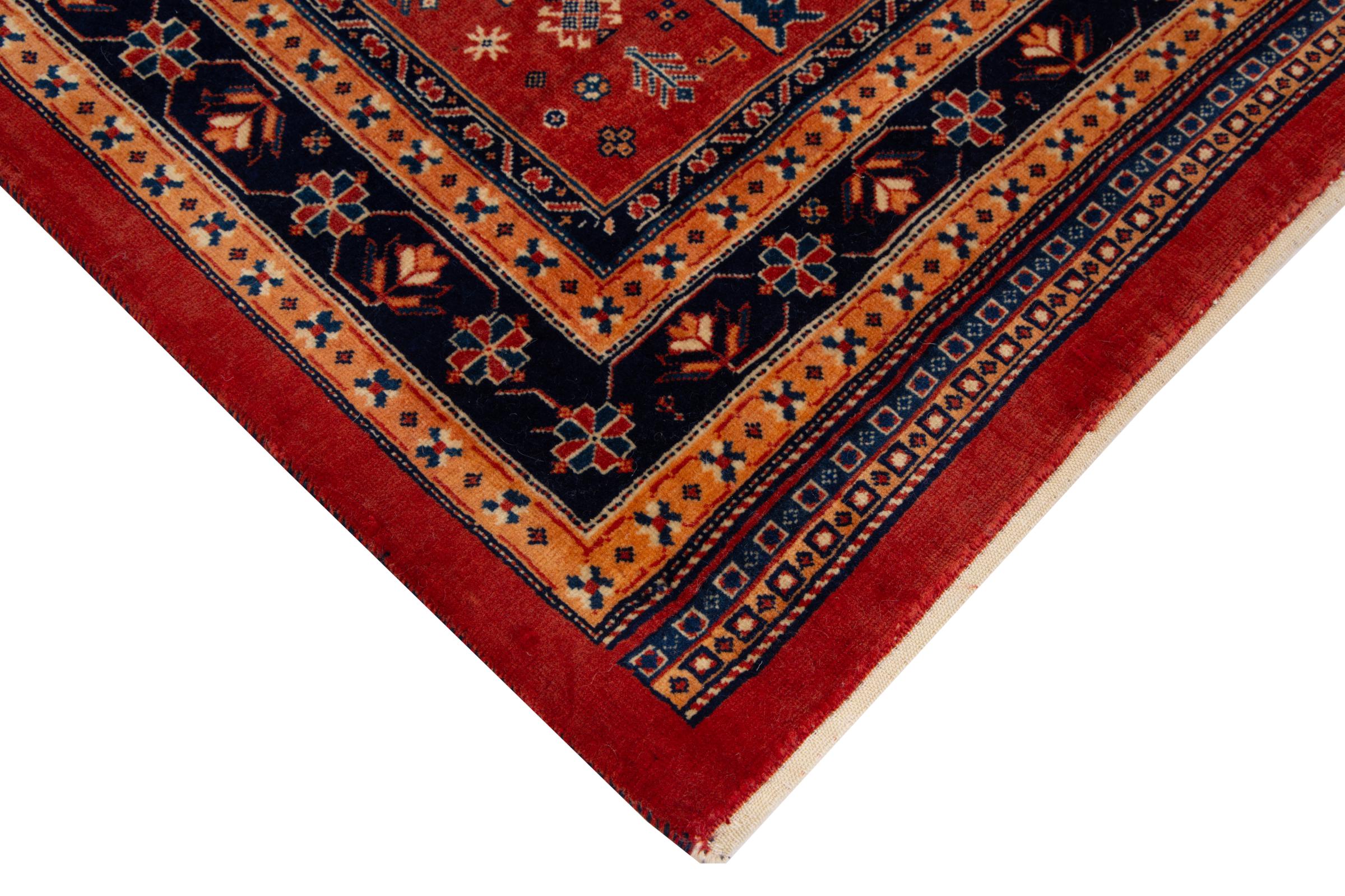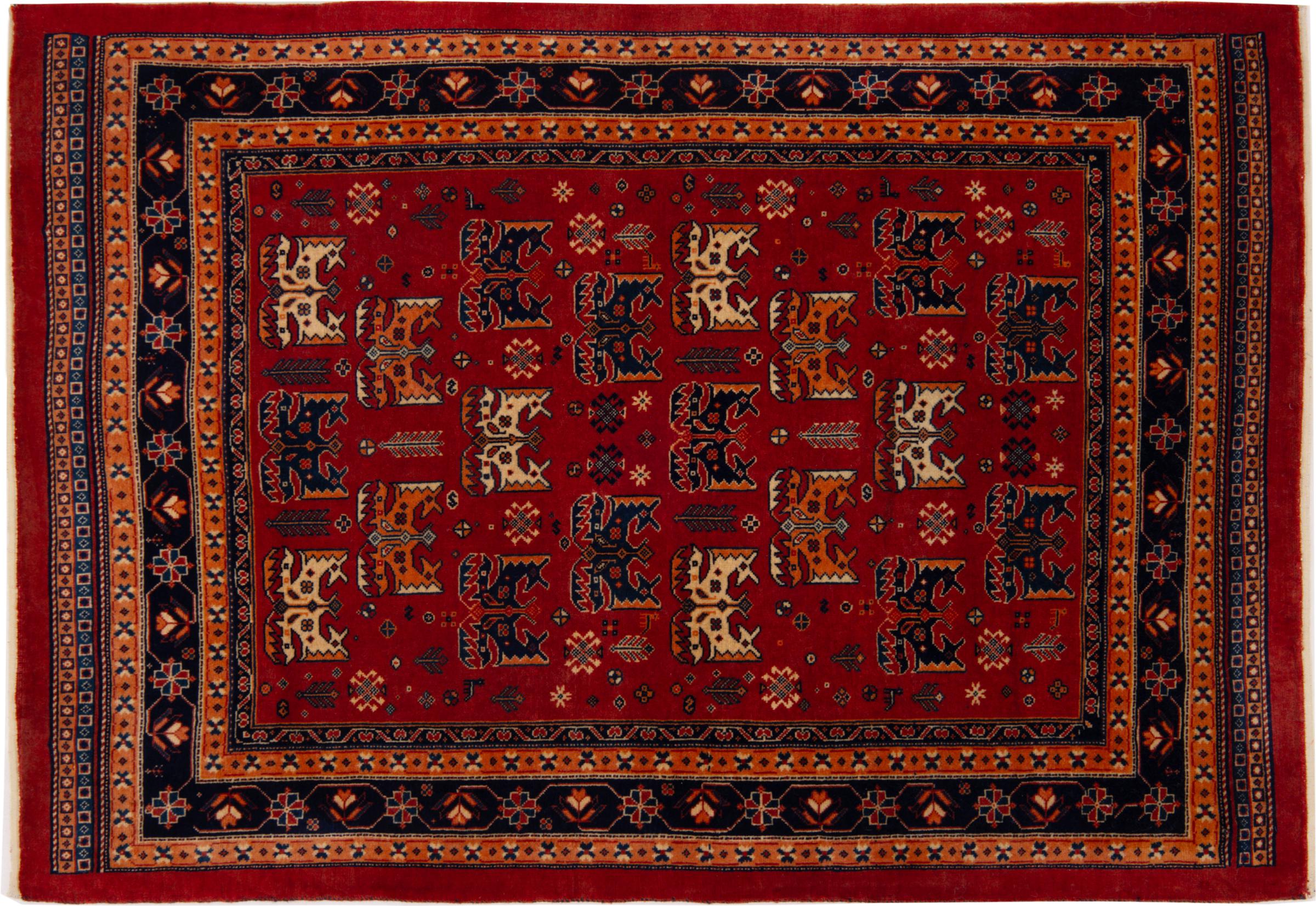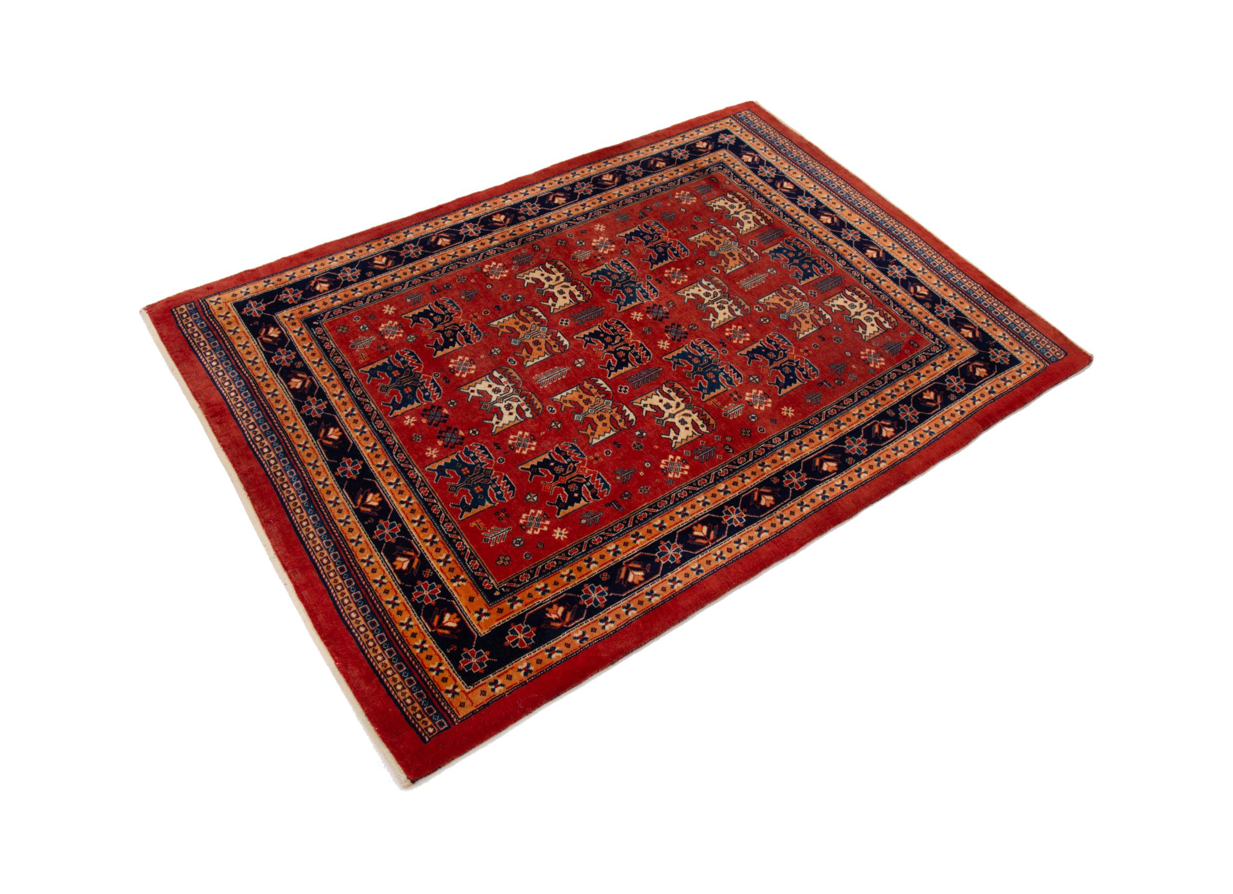 This rug belongs to village and nomadic rugs from Iran, formerly Persia. This type of rug is knotted by hand in smaller towns and villages in old tradition. Even nomads still knot Persian rugs in the open air. The rugs are knotted without a draft and completely from the mind. They are characterized by classical ornaments, which are arranged in straight and geometrical patterns. Thanks to their cultural-traditional origin, these rugs have a unique character that embodies ancient Persia.