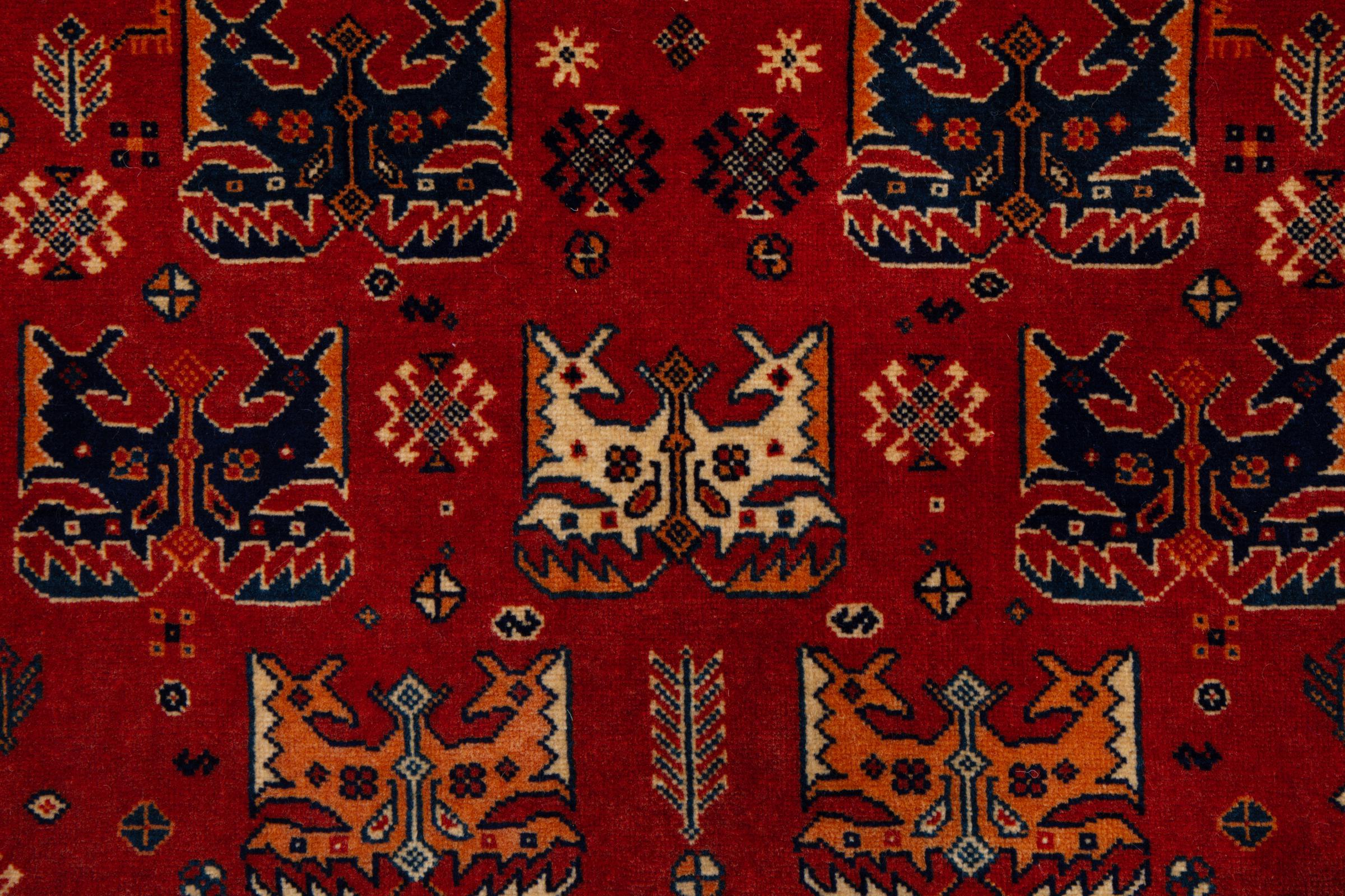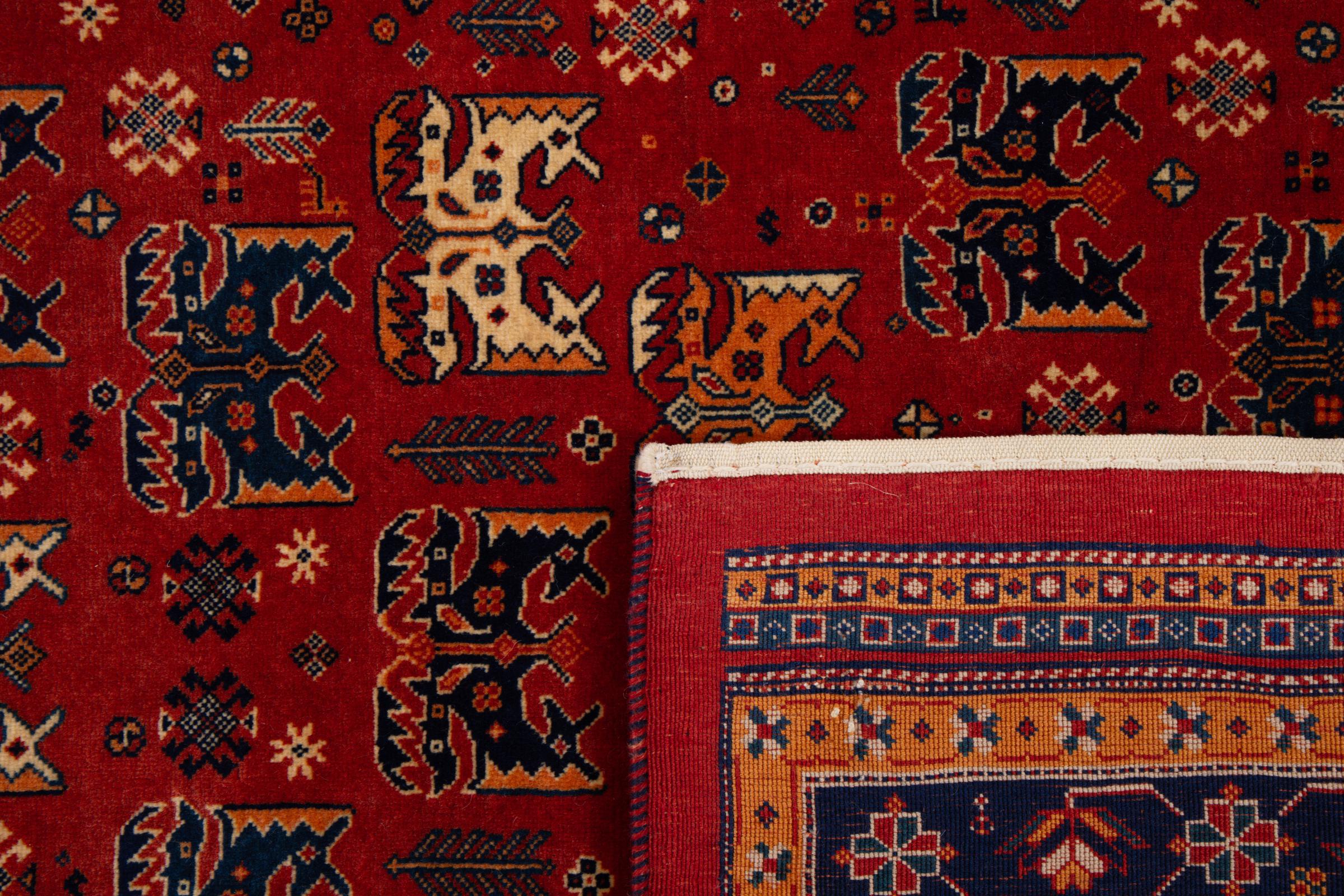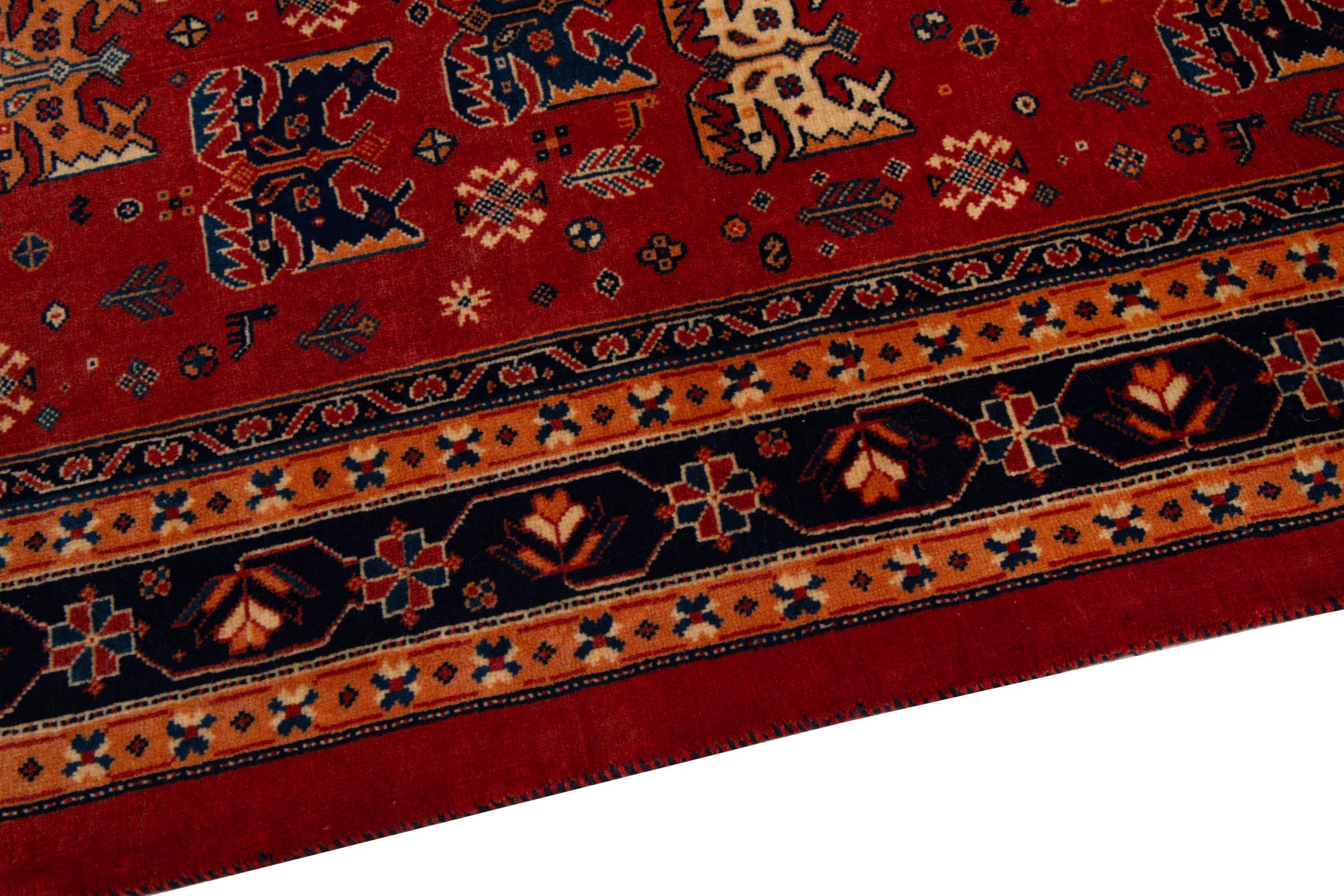 This rug belongs to village and nomadic rugs from Iran, formerly Persia. This type of rug is knotted by hand in smaller towns and villages in old tradition. Even nomads still knot Persian rugs in the open air. The rugs are knotted without a draft and completely from the mind. They are characterized by classical ornaments, which are arranged in straight and geometrical patterns. Thanks to their cultural-traditional origin, these rugs have a unique character that embodies ancient Persia.