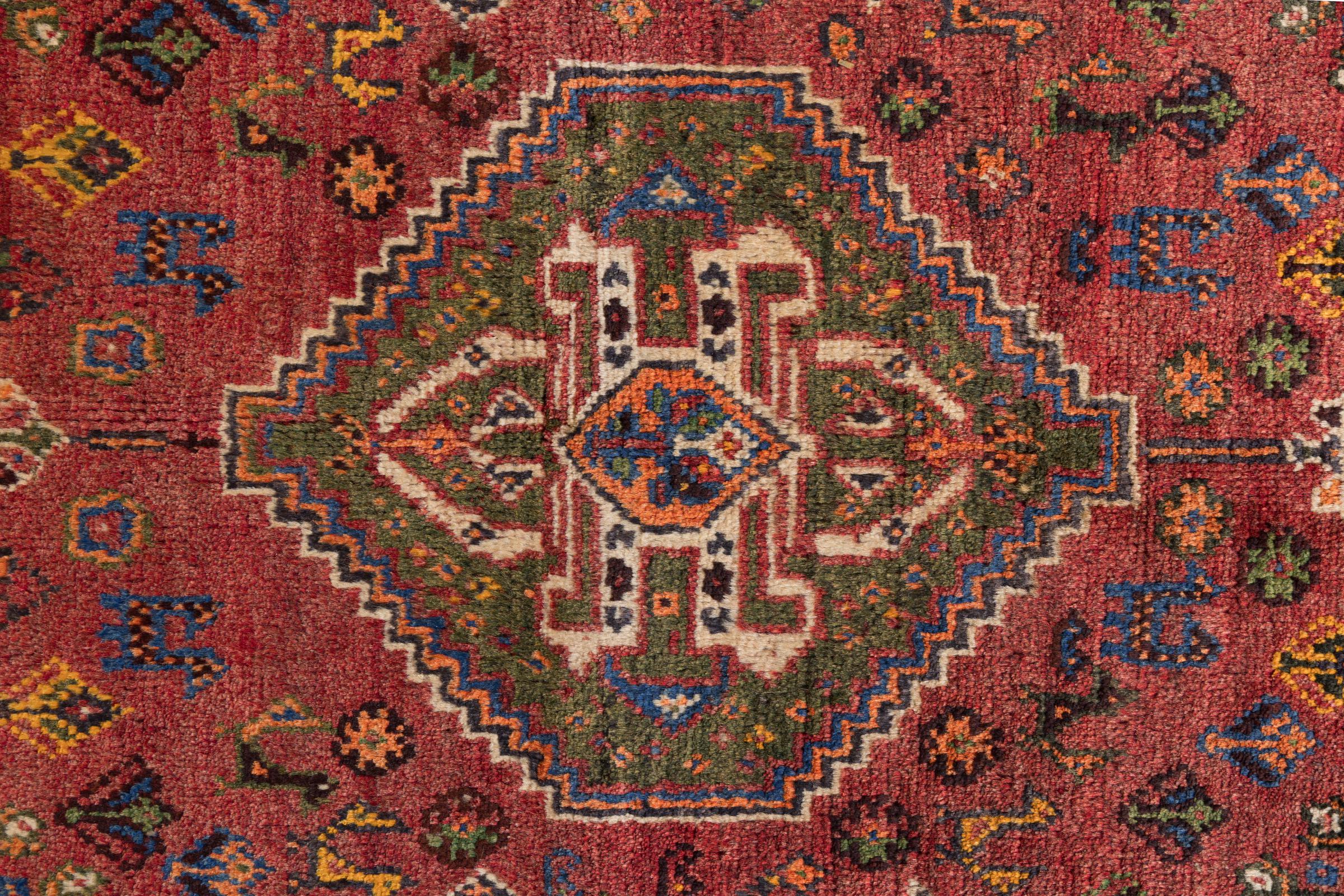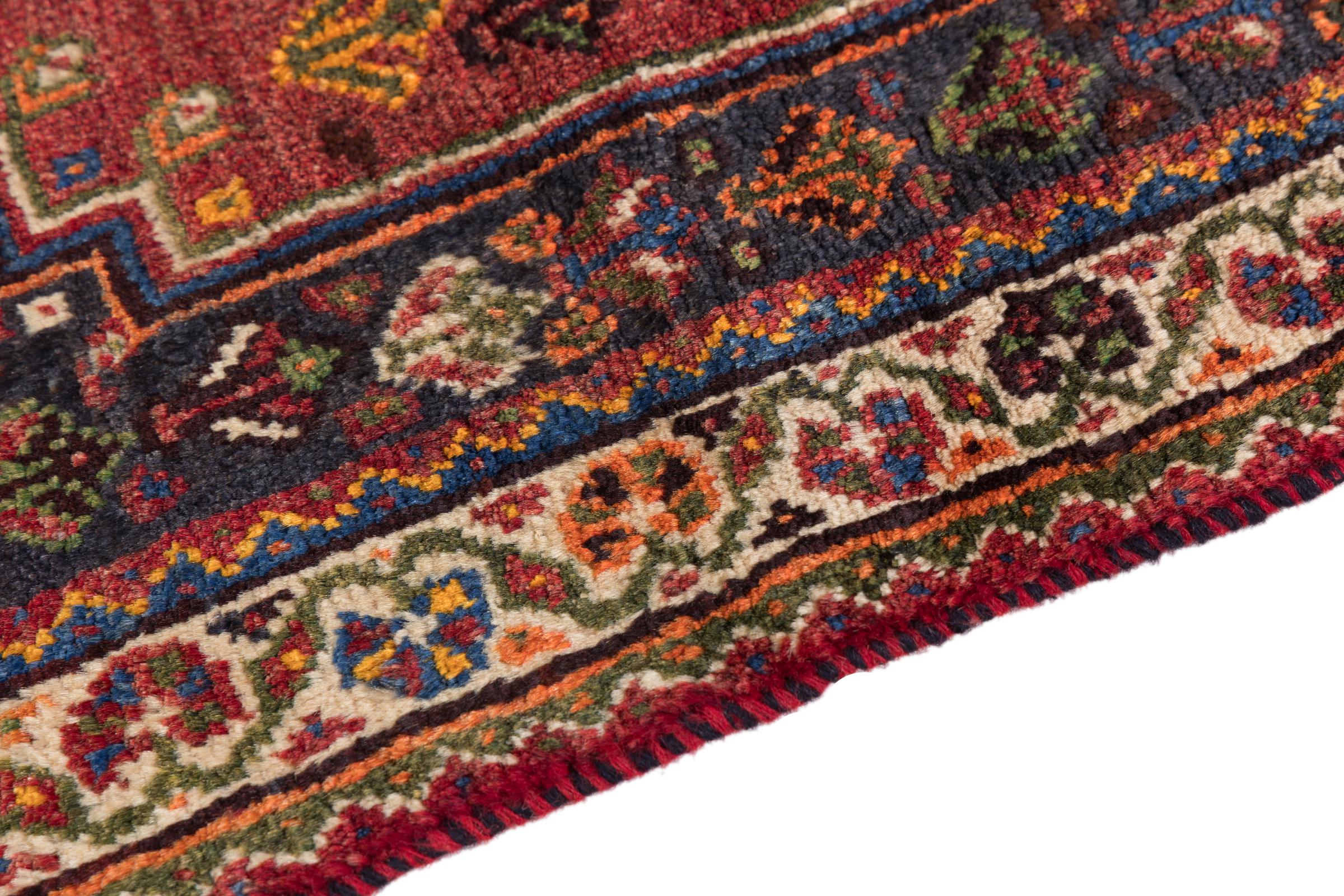 This rug belongs to village and nomadic rugs from Iran, formerly Persia. This type of rug is knotted by hand in smaller towns and villages in old tradition. Even nomads still knot Persian rugs in the open air. The rugs are knotted without a draft and completely from the mind. They are characterized by classical ornaments, which are arranged in straight and geometrical patterns. Thanks to their cultural-traditional origin, these rugs have a unique character that embodies ancient Persia.