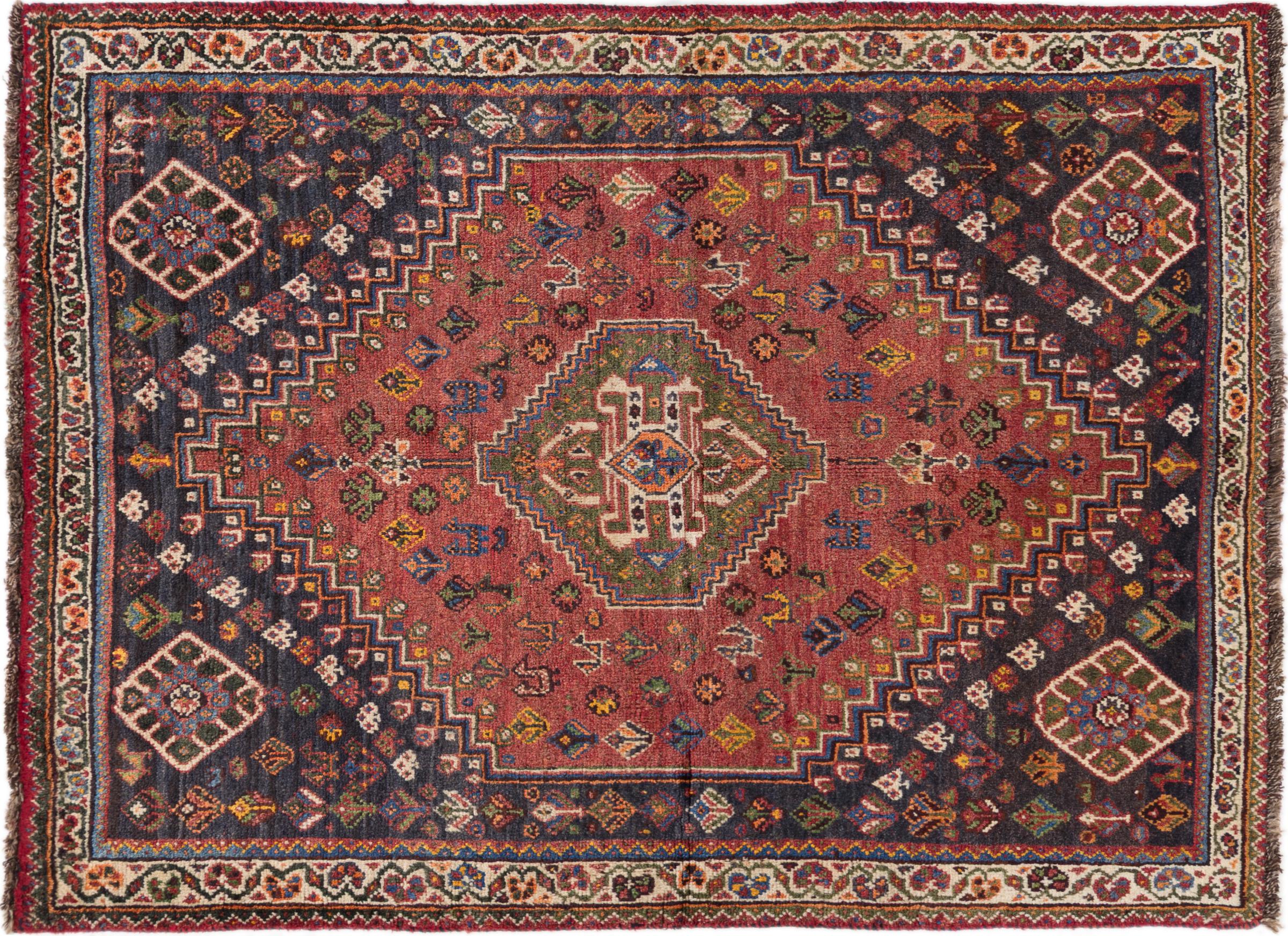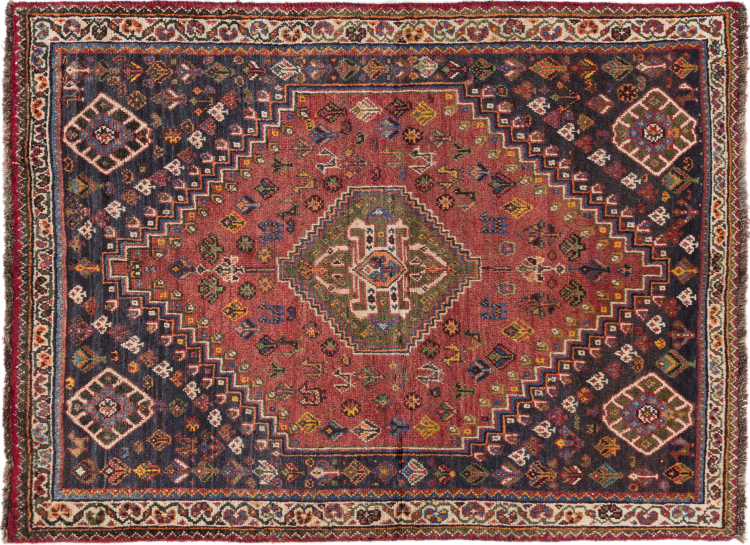 Carpet ID: 296383004050 Size: 153x112 cm Thickness: ap. 12 mm Knot density: 72 000 - 90 000 / m² Manufacturing: Knotted by hand Pile: Handspun wool Warp: Cotton Origin: Persia Age: New Weight: ap. 6 kg Also know as Qashqai, Gaschgai, Gashghai, Kashgai In stock: Unique - Only 1 in stock