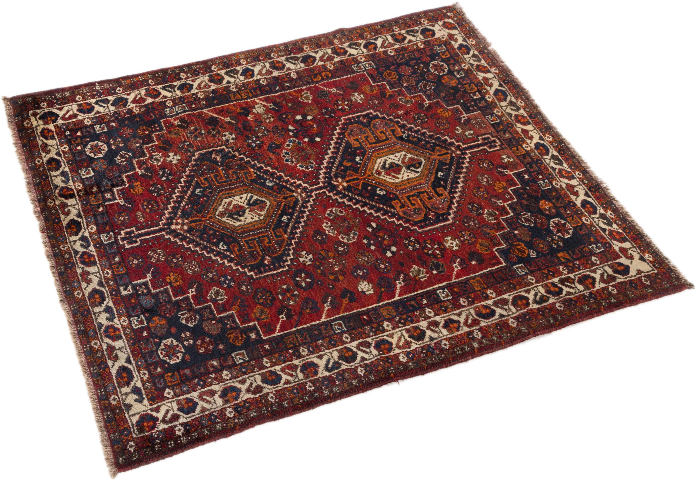 Carpet ID: 298349009054 Size: 160x120 cm Thickness: ap. 12 mm Knot density: 72 000 - 90 000 / m² Manufacturing: Knotted by hand Pile: Handspun wool Warp: Sheep wool Origin: Persia Age: New Weight: ap. 7 kg Also know as Qashqai, Gaschgai, Gashghai, Kashgai In stock: Unique - Only 1 in stock