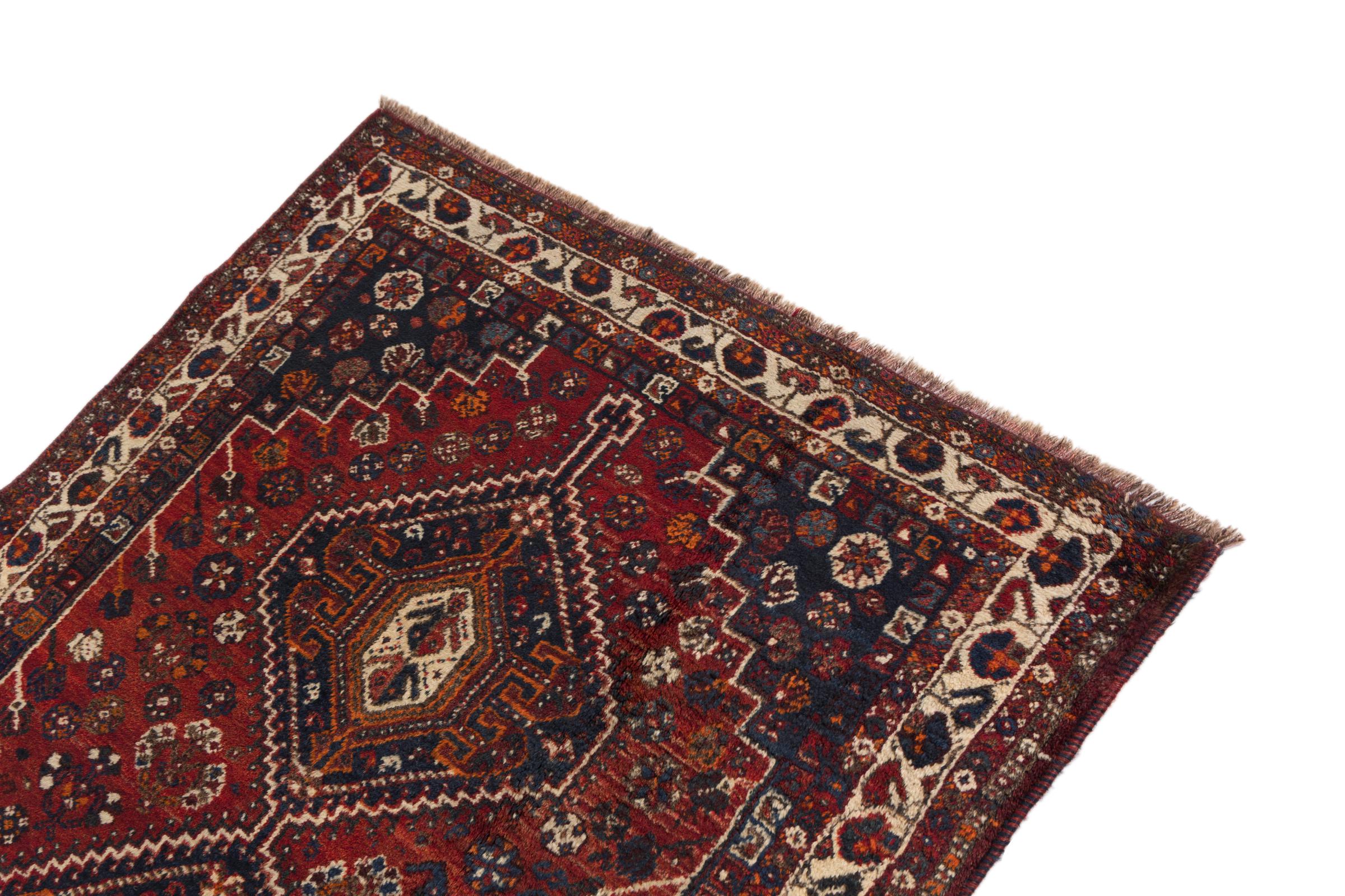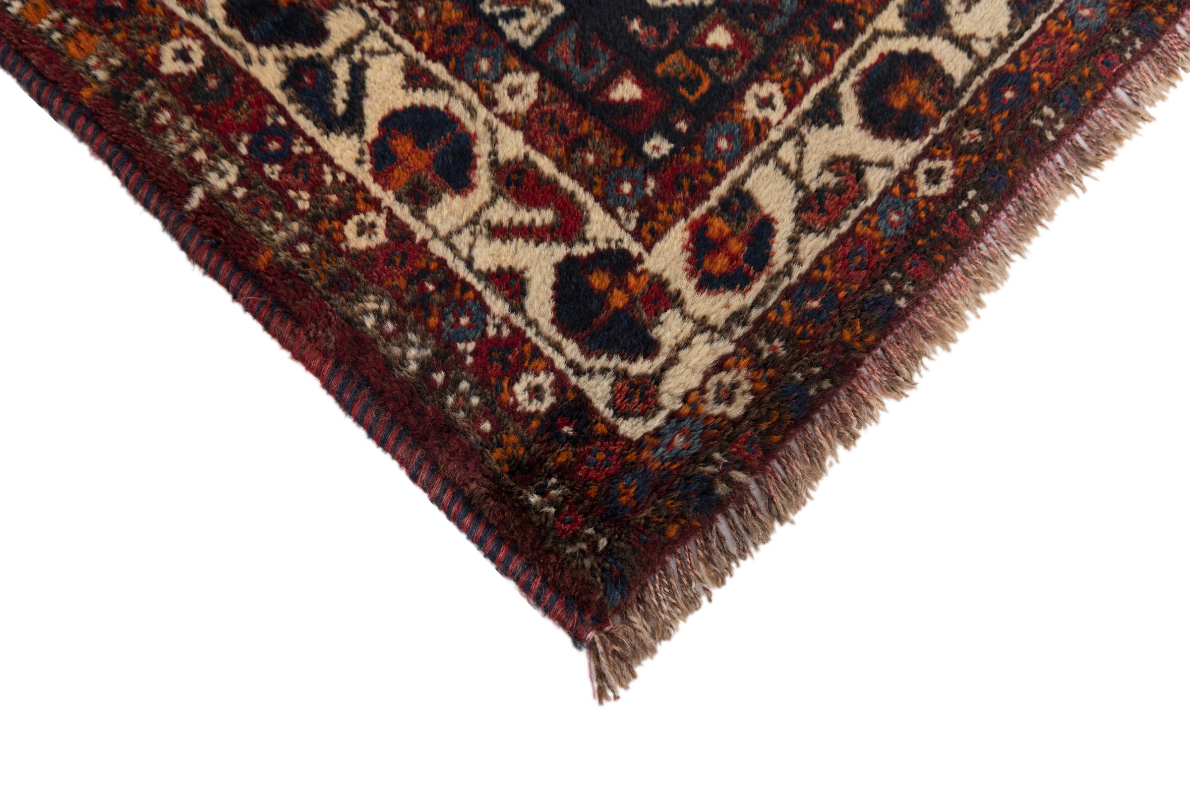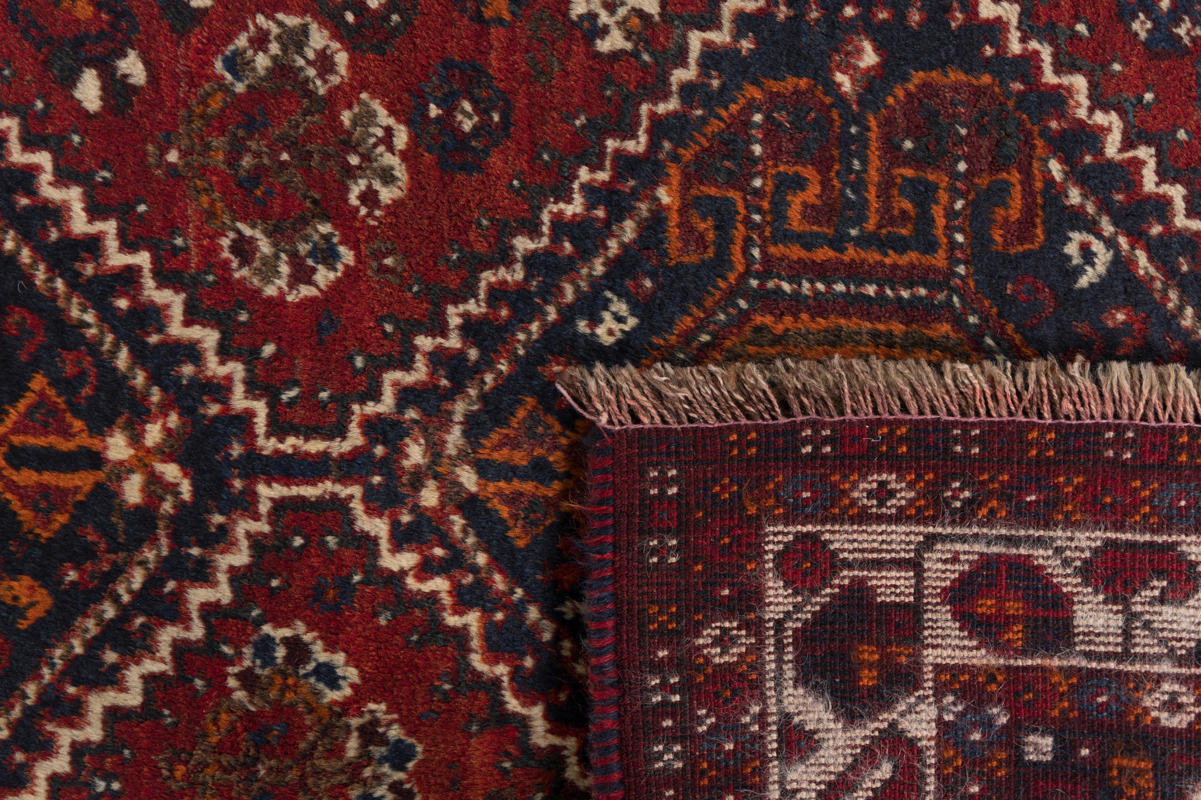 This rug belongs to village and nomadic rugs from Iran, formerly Persia. This type of rug is knotted by hand in smaller towns and villages in old tradition. Even nomads still knot Persian rugs in the open air. The rugs are knotted without a draft and completely from the mind. They are characterized by classical ornaments, which are arranged in straight and geometrical patterns. Thanks to their cultural-traditional origin, these rugs have a unique character that embodies ancient Persia.
