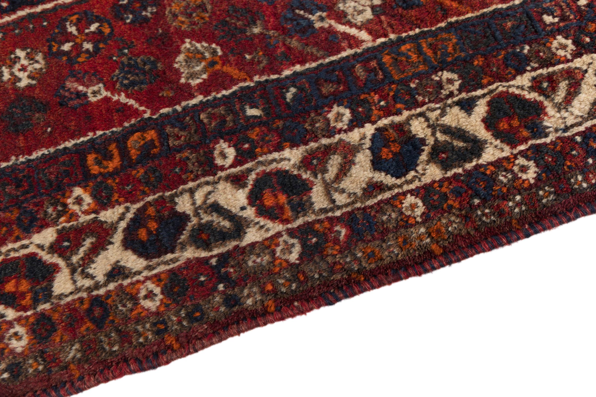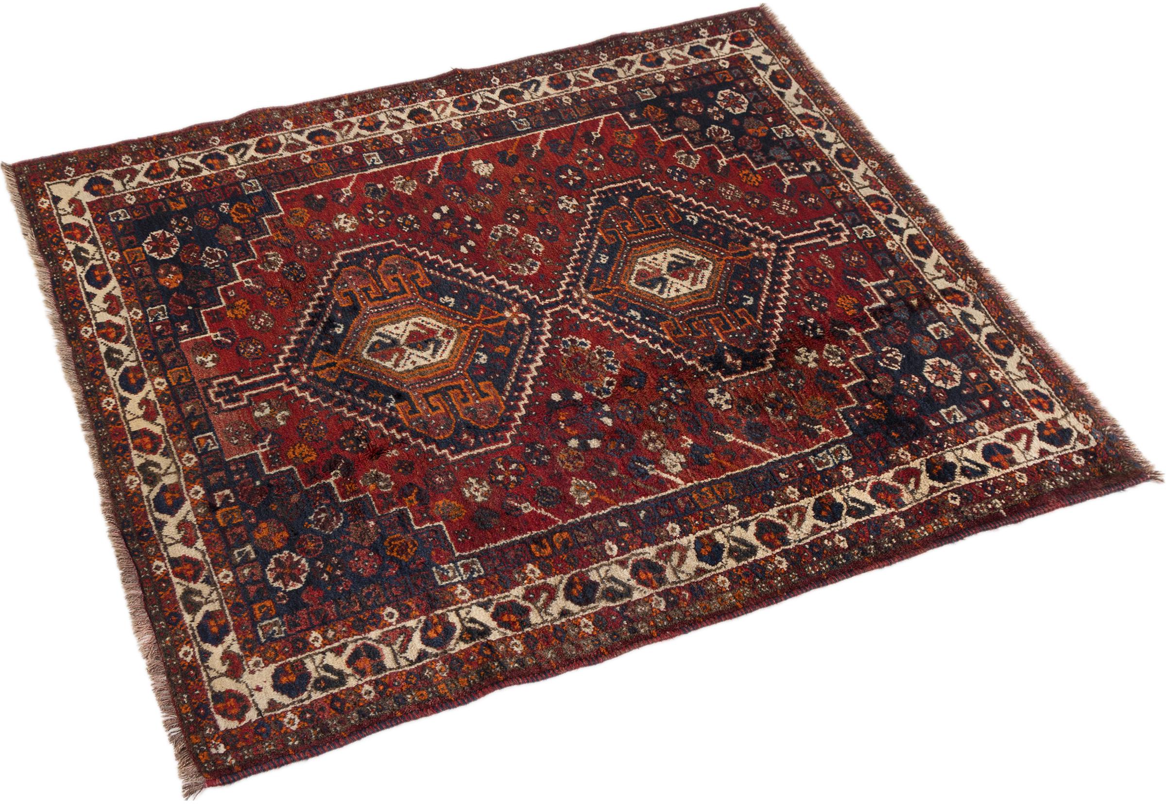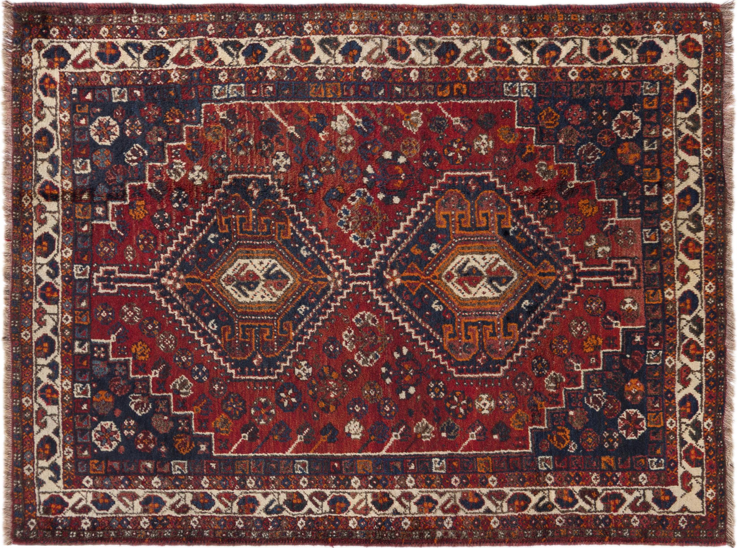 This rug belongs to village and nomadic rugs from Iran, formerly Persia. This type of rug is knotted by hand in smaller towns and villages in old tradition. Even nomads still knot Persian rugs in the open air. The rugs are knotted without a draft and completely from the mind. They are characterized by classical ornaments, which are arranged in straight and geometrical patterns. Thanks to their cultural-traditional origin, these rugs have a unique character that embodies ancient Persia.