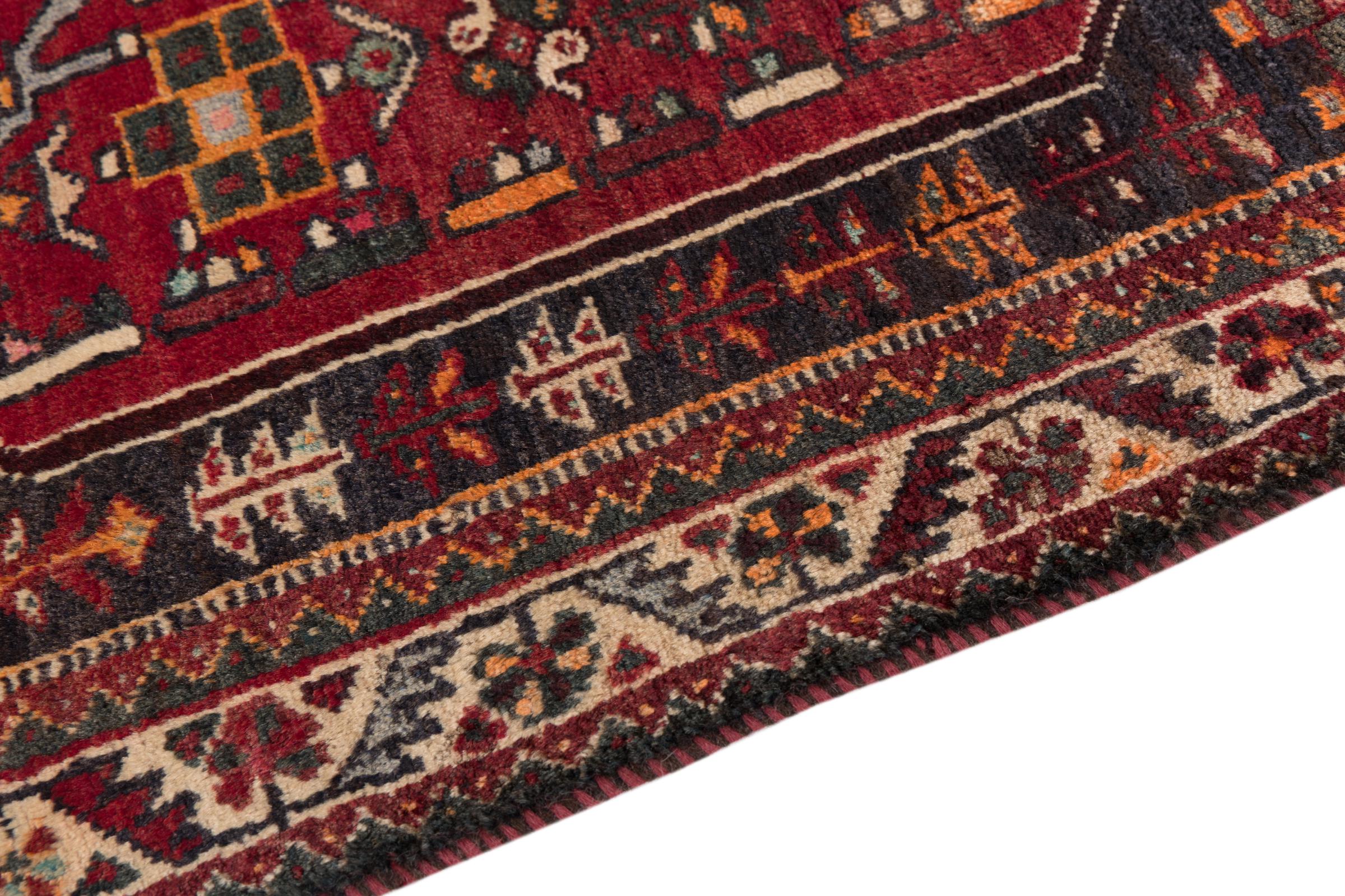 This rug belongs to village and nomadic rugs from Iran, formerly Persia. This type of rug is knotted by hand in smaller towns and villages in old tradition. Even nomads still knot Persian rugs in the open air. The rugs are knotted without a draft and completely from the mind. They are characterized by classical ornaments, which are arranged in straight and geometrical patterns. Thanks to their cultural-traditional origin, these rugs have a unique character that embodies ancient Persia.
