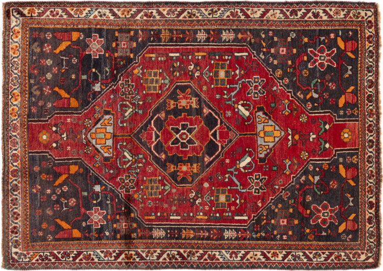 Carpet ID: 29575100743 Size: 161x114 cm Thickness: ap. 12 mm Knot density: 128 000 - 160 000 / m² Manufacturing: Knotted by hand Pile: Handspun wool Warp: Sheep wool Origin: Persia Age: New Weight: ap. 6 kg Also know as Qashqai, Gaschgai, Gashghai, Kashgai In stock: Unique - Only 1 in stock