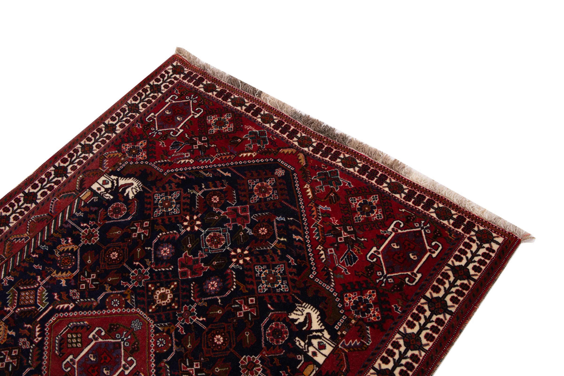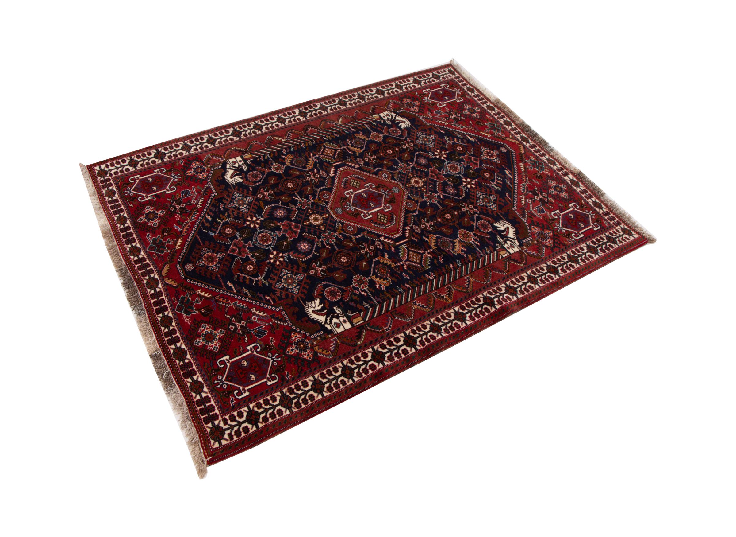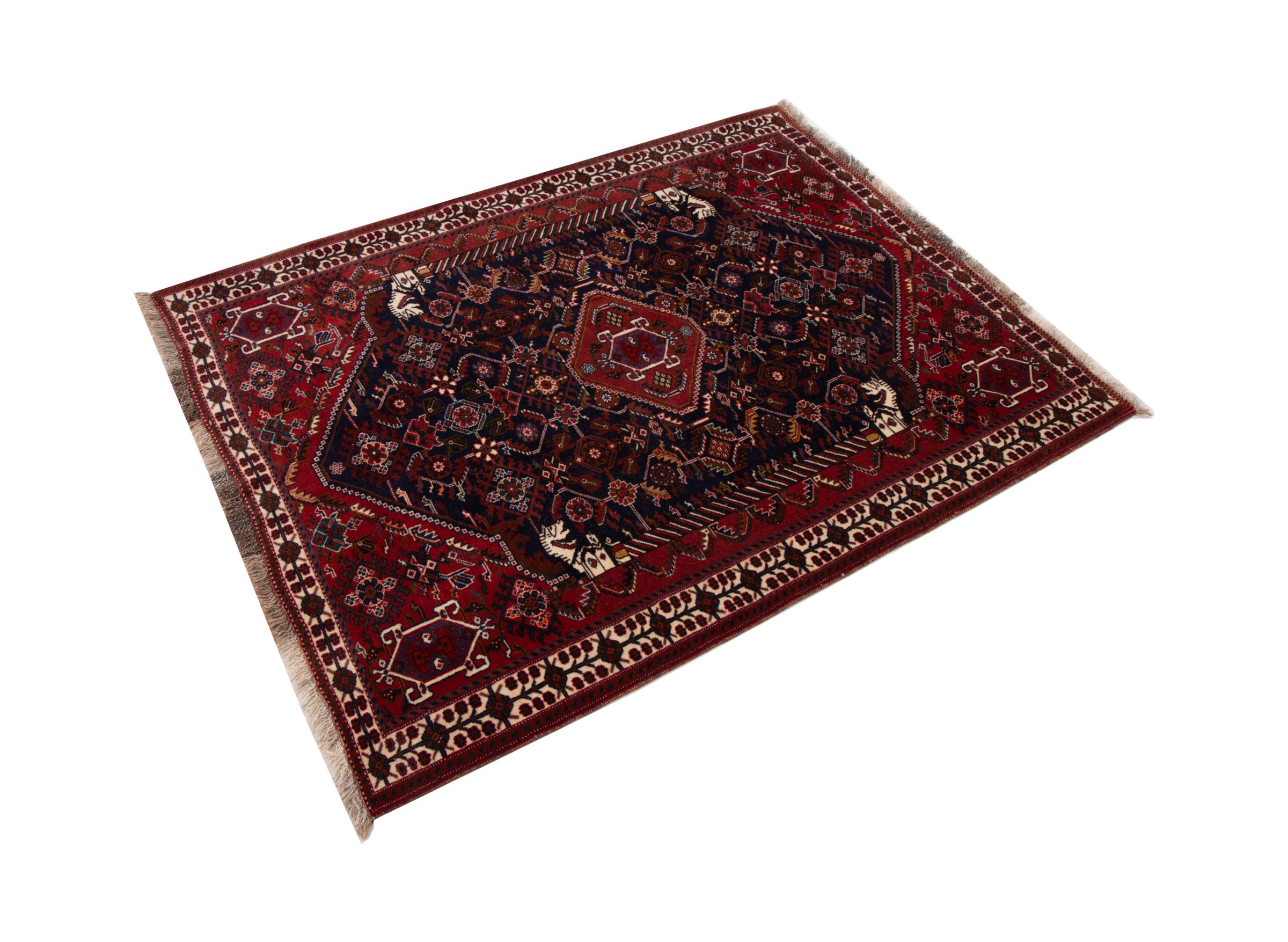 This rug belongs to village and nomadic rugs from Iran, formerly Persia. This type of rug is knotted by hand in smaller towns and villages in old tradition. Even nomads still knot Persian rugs in the open air. The rugs are knotted without a draft and completely from the mind. They are characterized by classical ornaments, which are arranged in straight and geometrical patterns. Thanks to their cultural-traditional origin, these rugs have a unique character that embodies ancient Persia.
