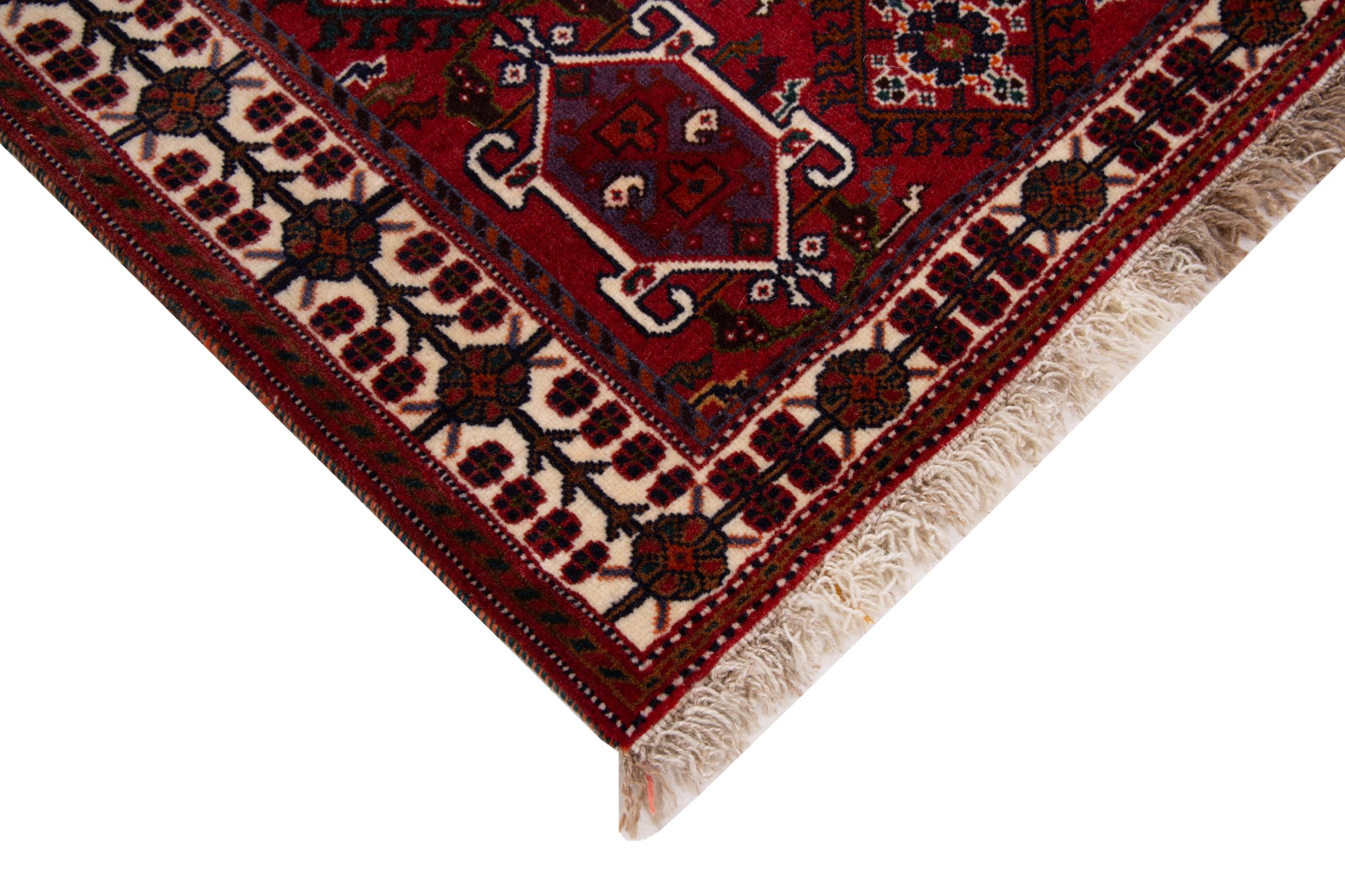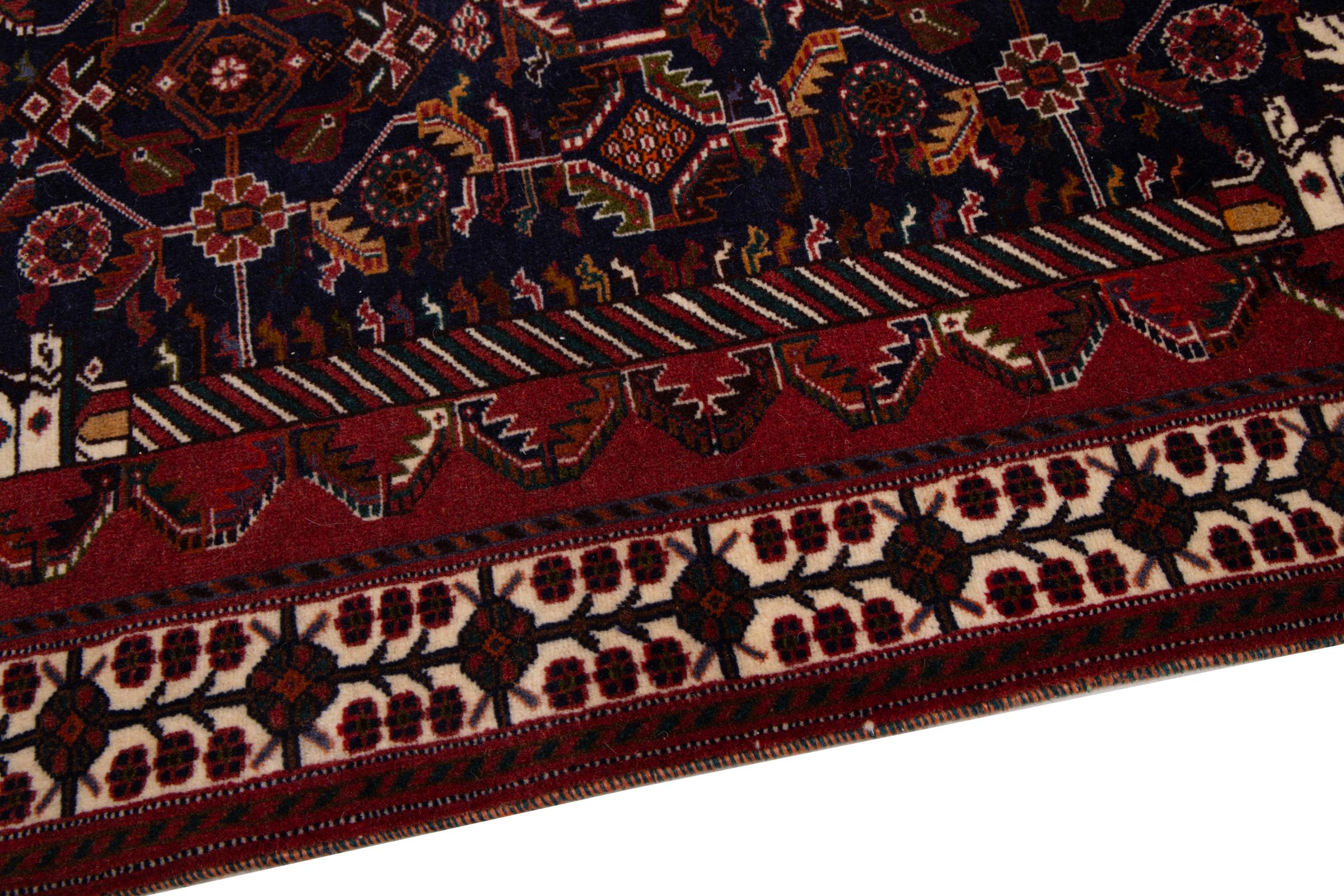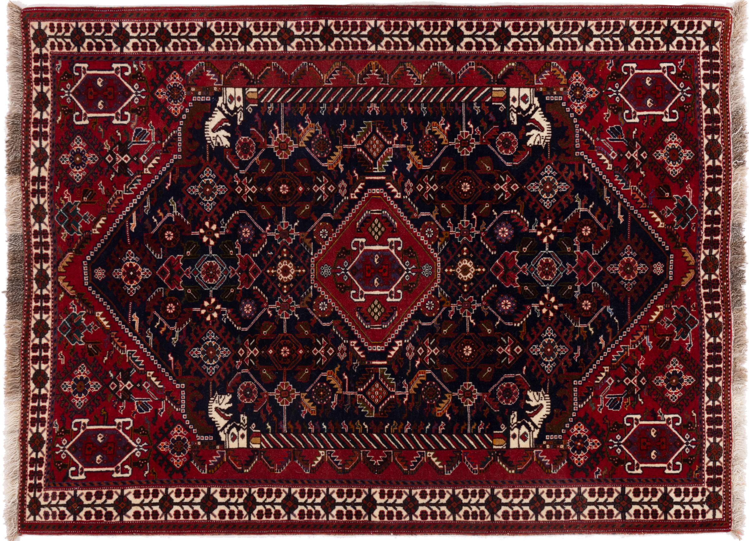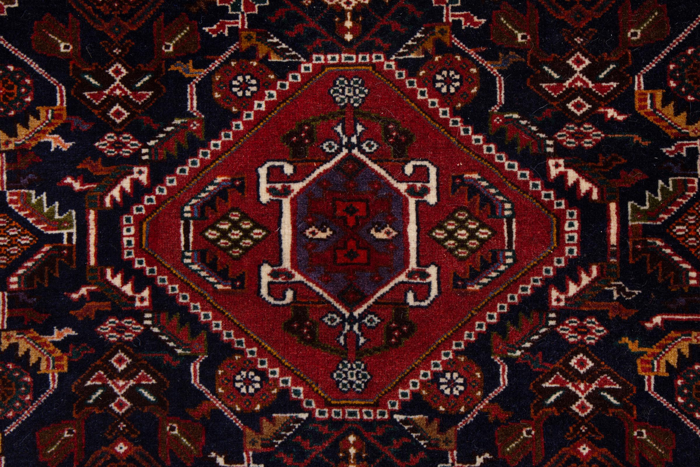 This rug belongs to village and nomadic rugs from Iran, formerly Persia. This type of rug is knotted by hand in smaller towns and villages in old tradition. Even nomads still knot Persian rugs in the open air. The rugs are knotted without a draft and completely from the mind. They are characterized by classical ornaments, which are arranged in straight and geometrical patterns. Thanks to their cultural-traditional origin, these rugs have a unique character that embodies ancient Persia.