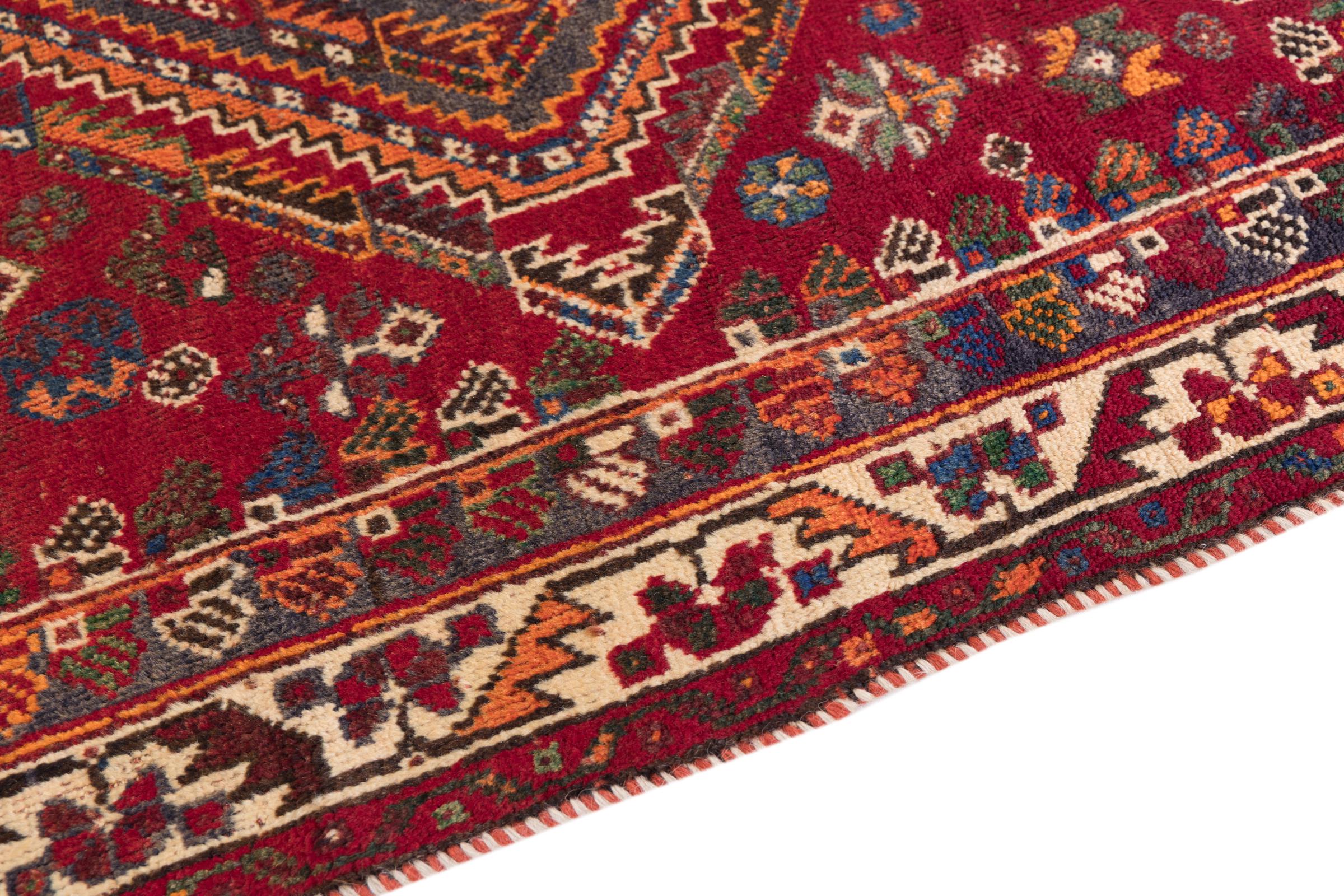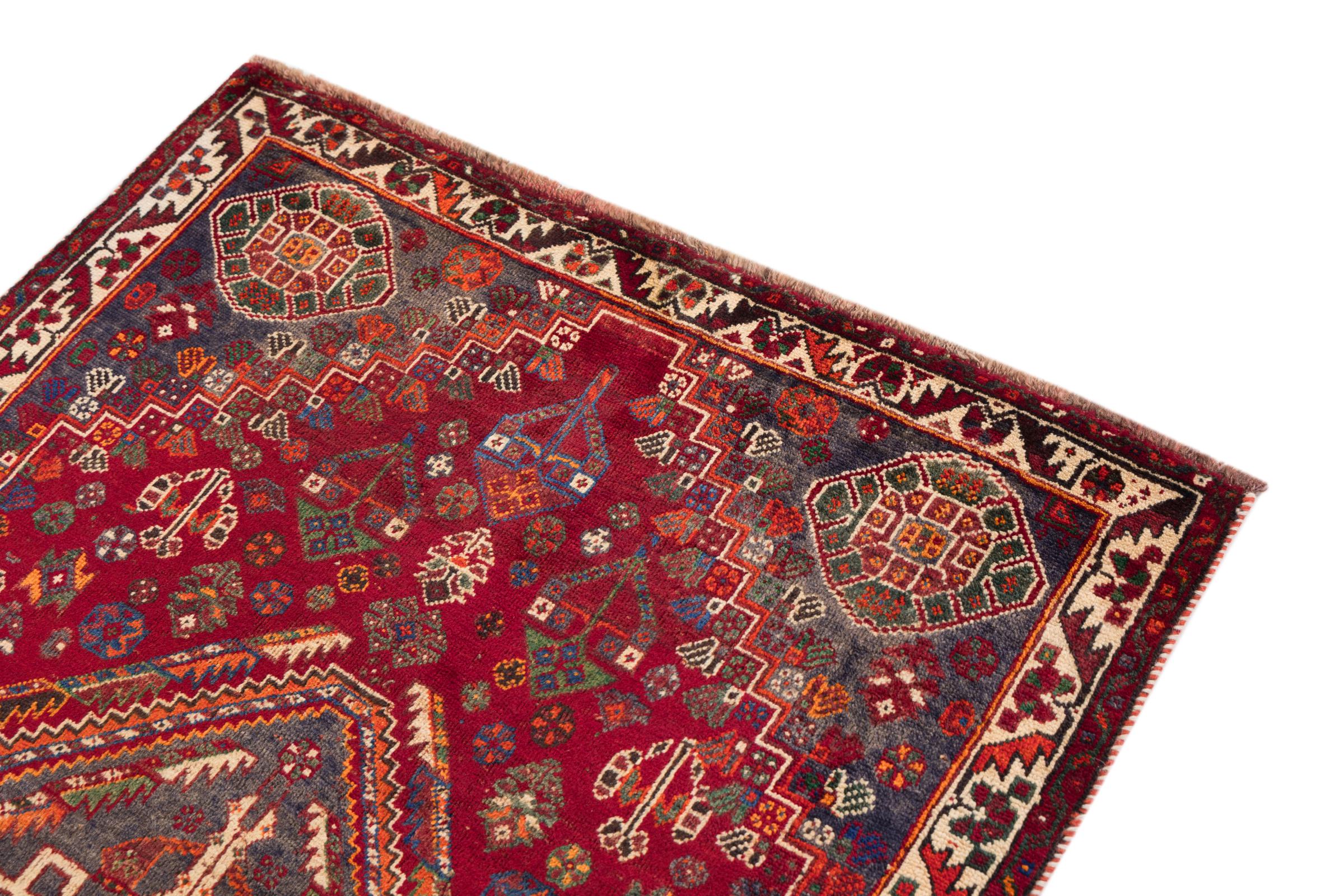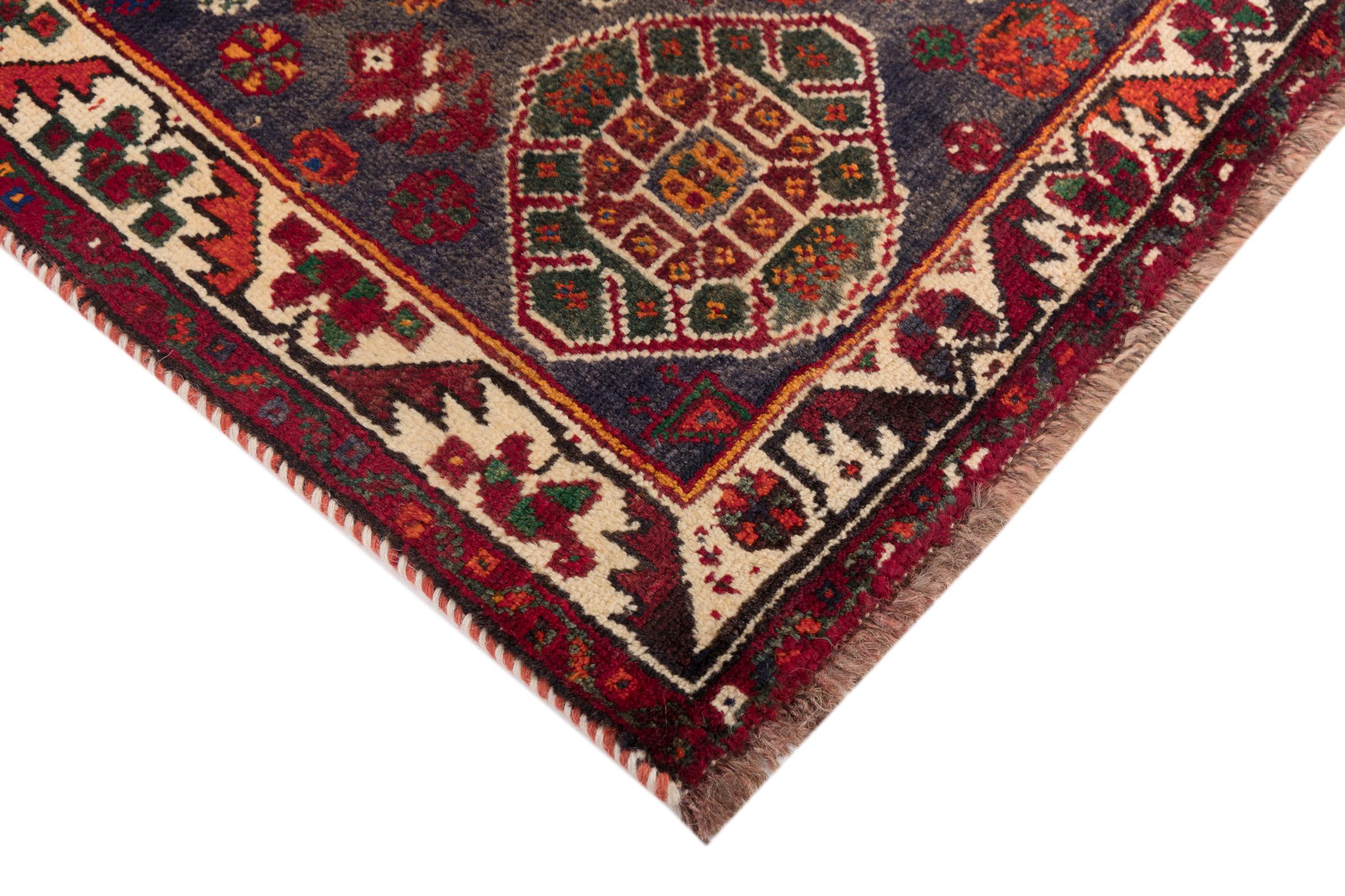 This rug belongs to village and nomadic rugs from Iran, formerly Persia. This type of rug is knotted by hand in smaller towns and villages in old tradition. Even nomads still knot Persian rugs in the open air. The rugs are knotted without a draft and completely from the mind. They are characterized by classical ornaments, which are arranged in straight and geometrical patterns. Thanks to their cultural-traditional origin, these rugs have a unique character that embodies ancient Persia.