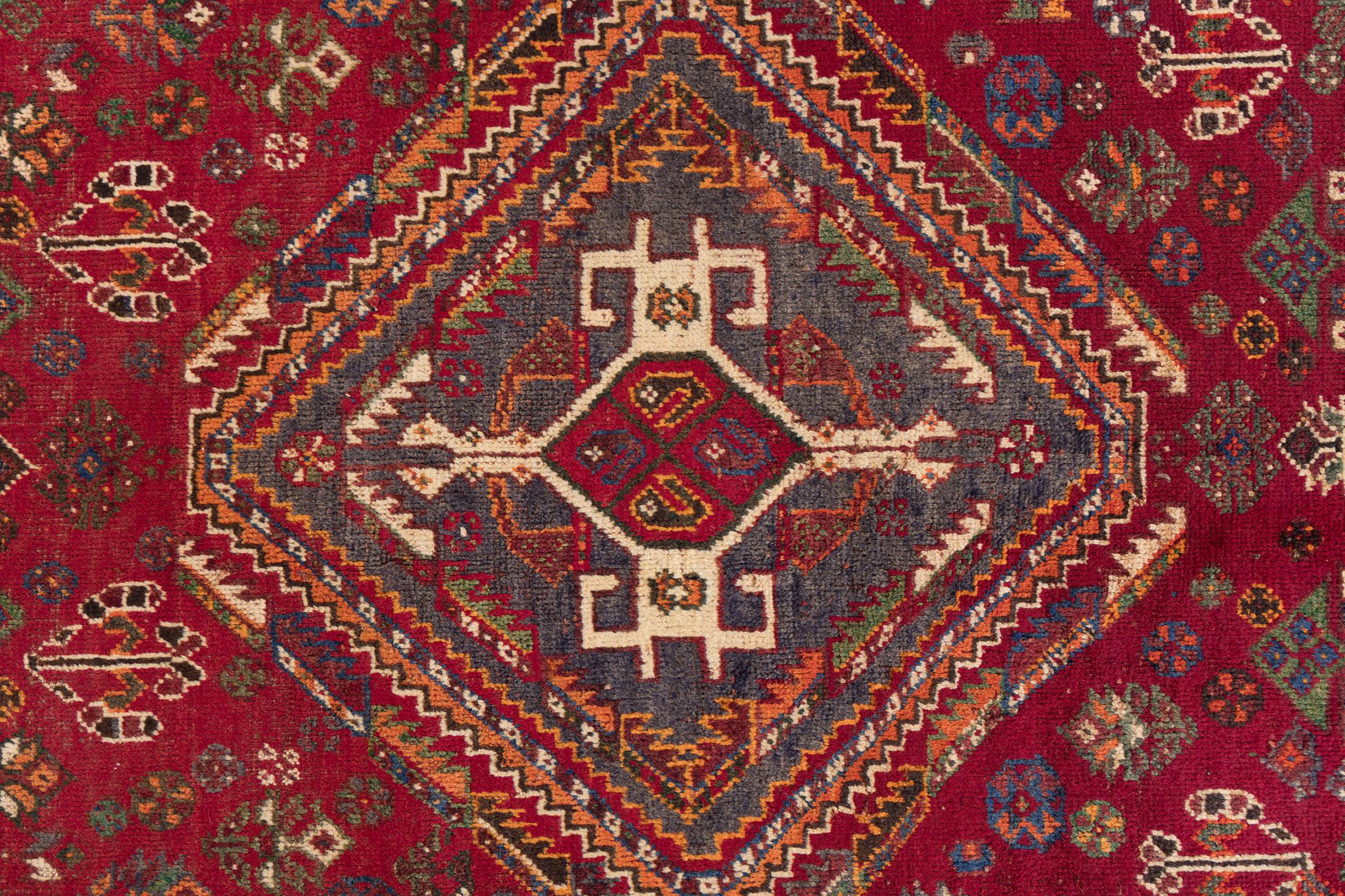 This ghashghai is a real highlight. Its colours and patterns reflect the life of the Ghashghai nomads of Iran. These nomadic tribes live mainly in the neighbourhood of the city of Shiraz. Bring a piece of ancient Persian culture into your own four walls.