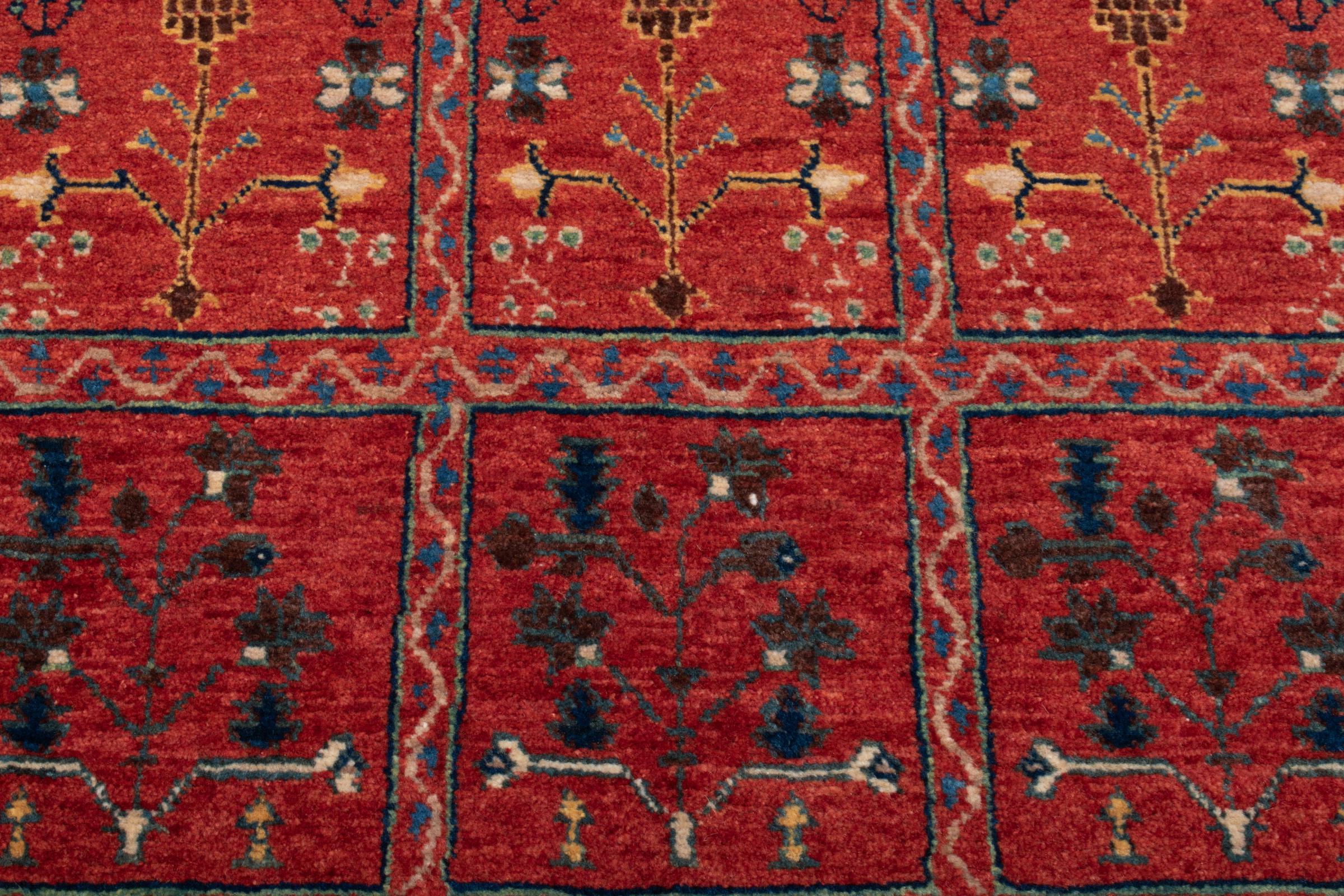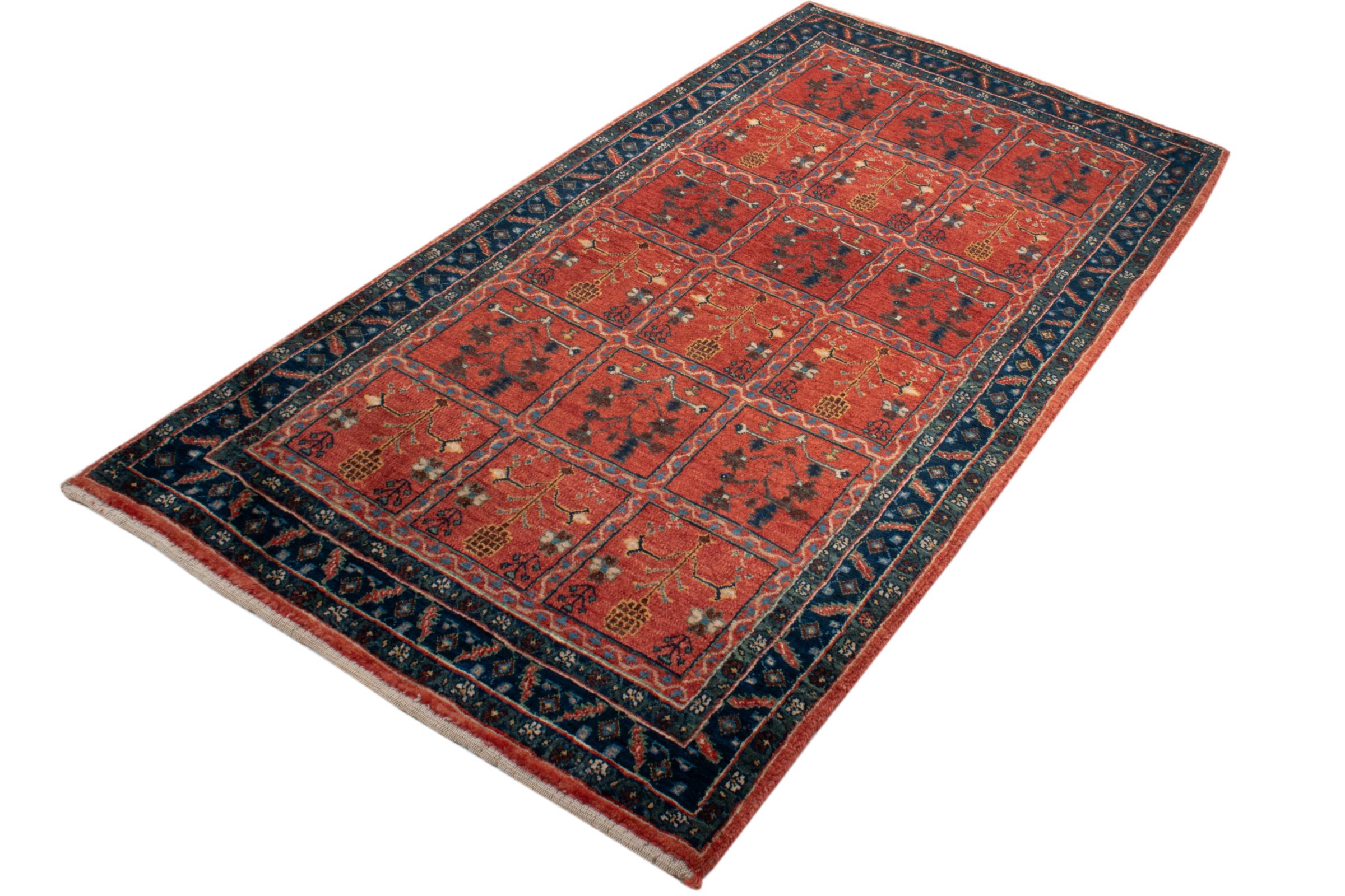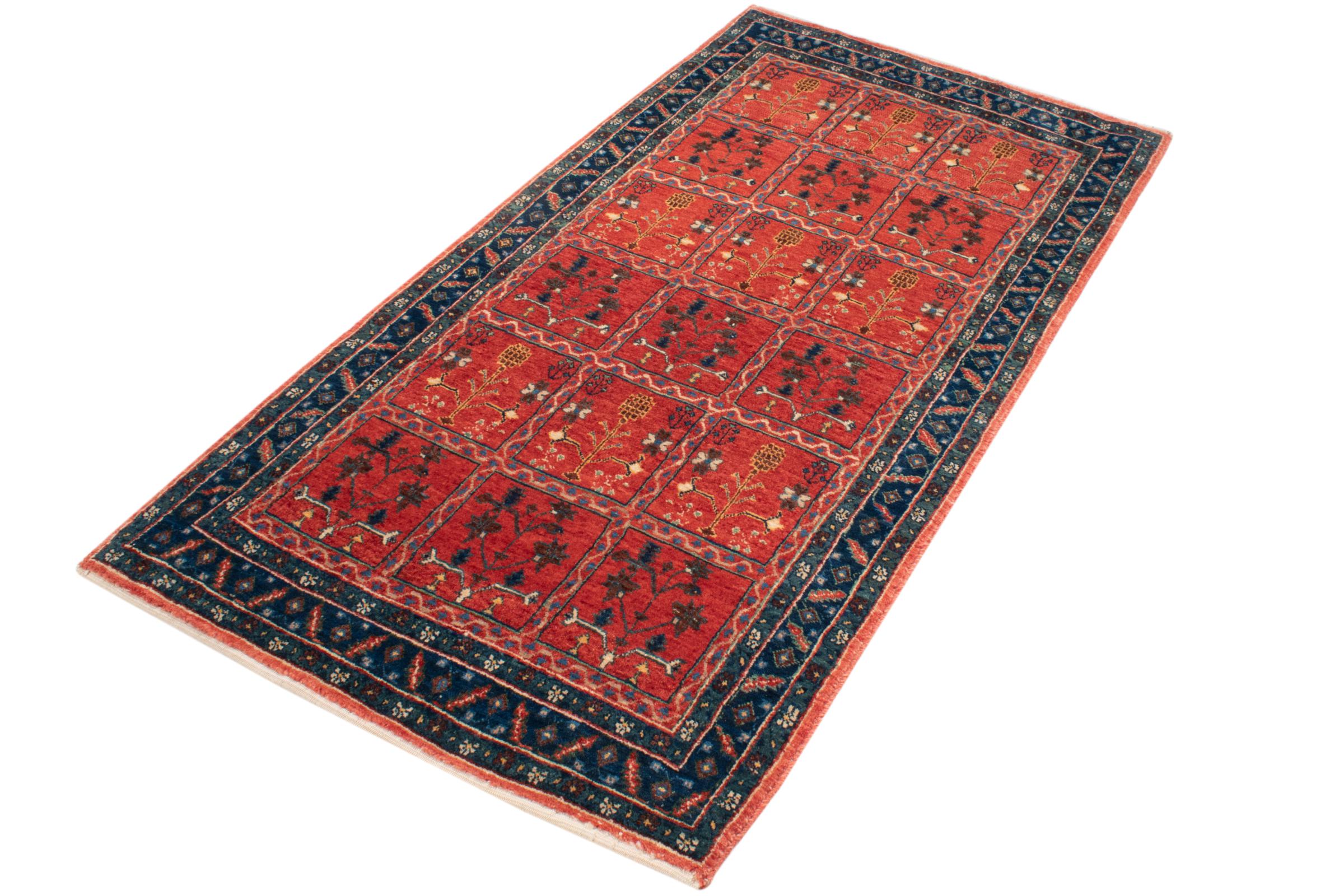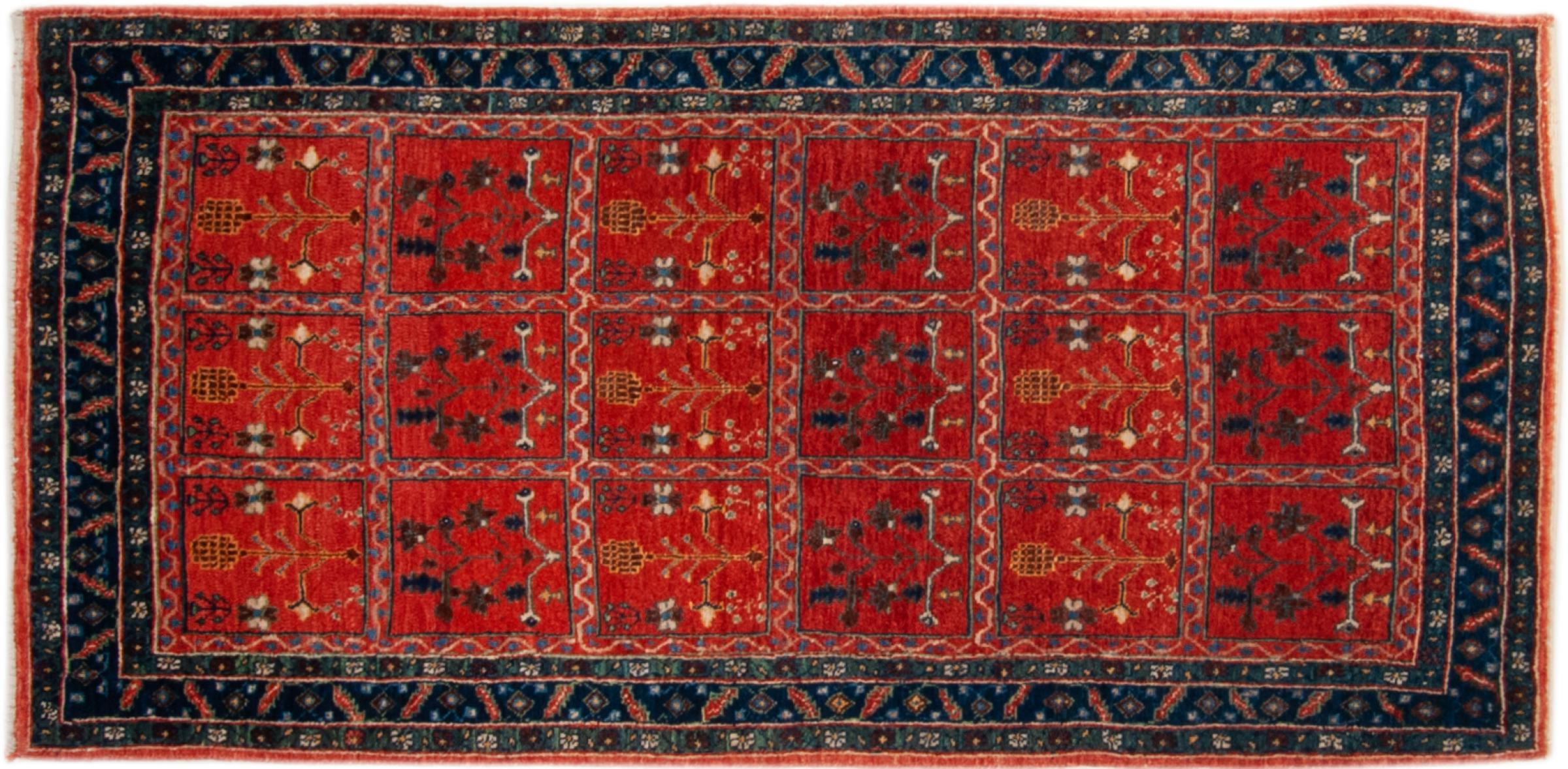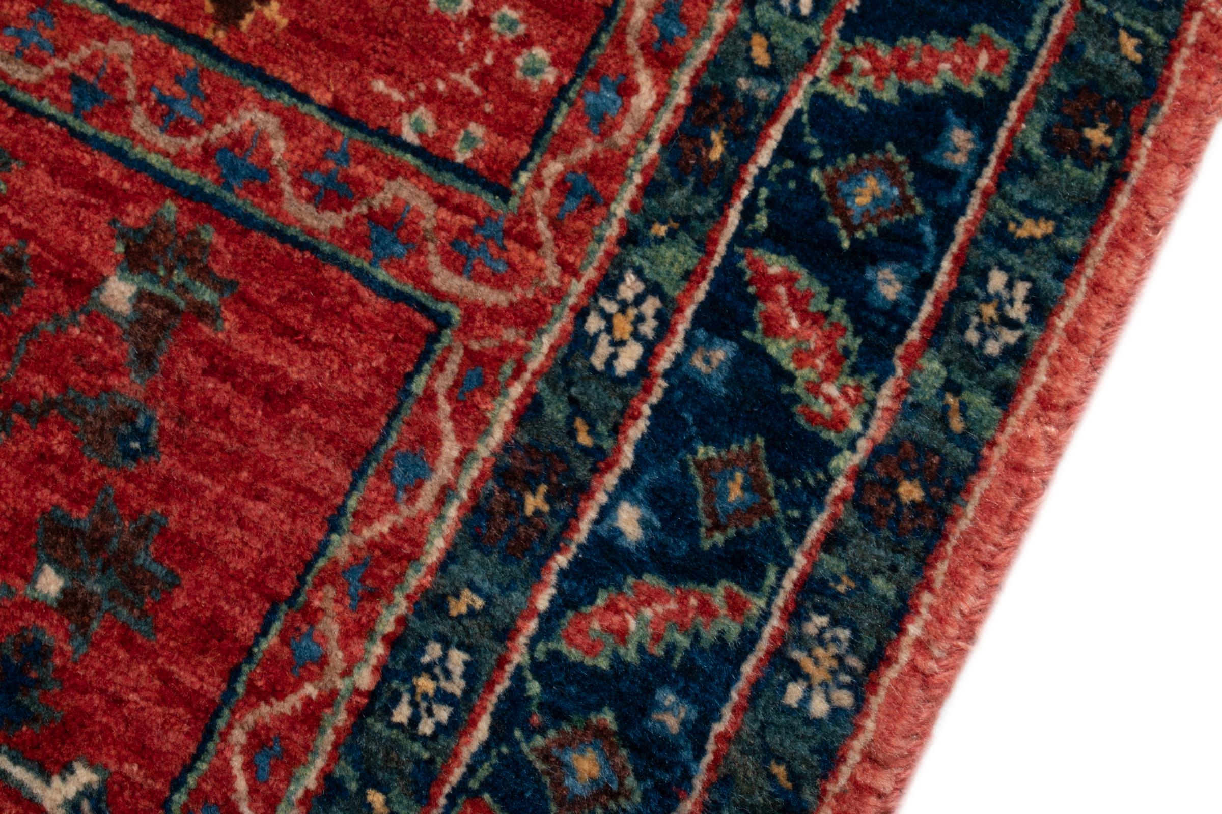 This rug belongs to village and nomadic rugs from Iran, formerly Persia. This type of rug is knotted by hand in smaller towns and villages in old tradition. Even nomads still knot Persian rugs in the open air. The rugs are knotted without a draft and completely from the mind. They are characterized by classical ornaments, which are arranged in straight and geometrical patterns. Thanks to their cultural-traditional origin, these rugs have a unique character that embodies ancient Persia.