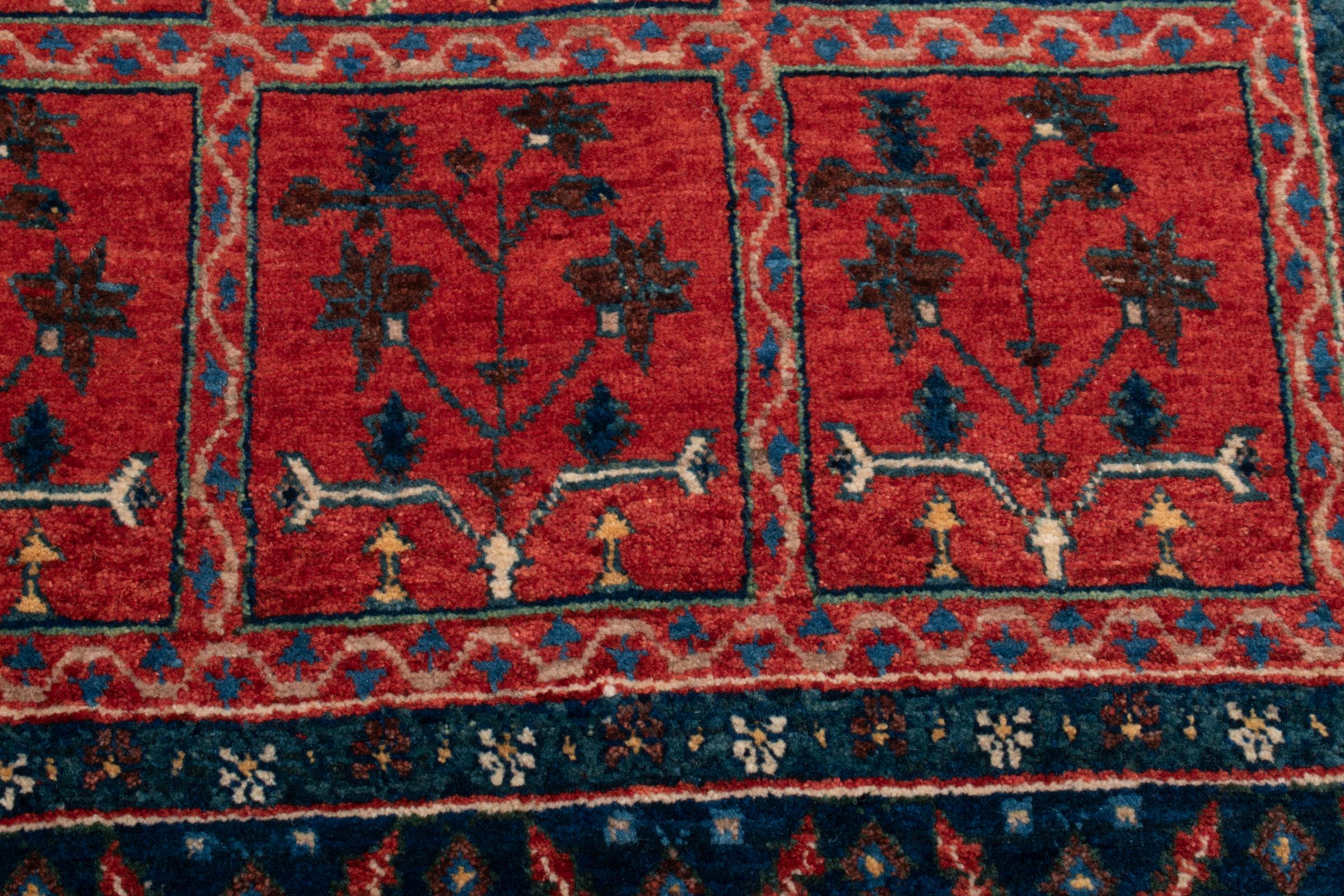 This rug is made of hand spun sheep wool of the highest quality. Especially in Iran (former Persia), Afghanistan and Pakistan wool is still spun by hand before the actual knotting of the rug begins. Wool has proven itself as a natural and extremely hard-wearing material over centuries. Among other things, it has dirt-repellent and heat-insulating properties. At the same time, wool is incomparably soft and has a natural shine.