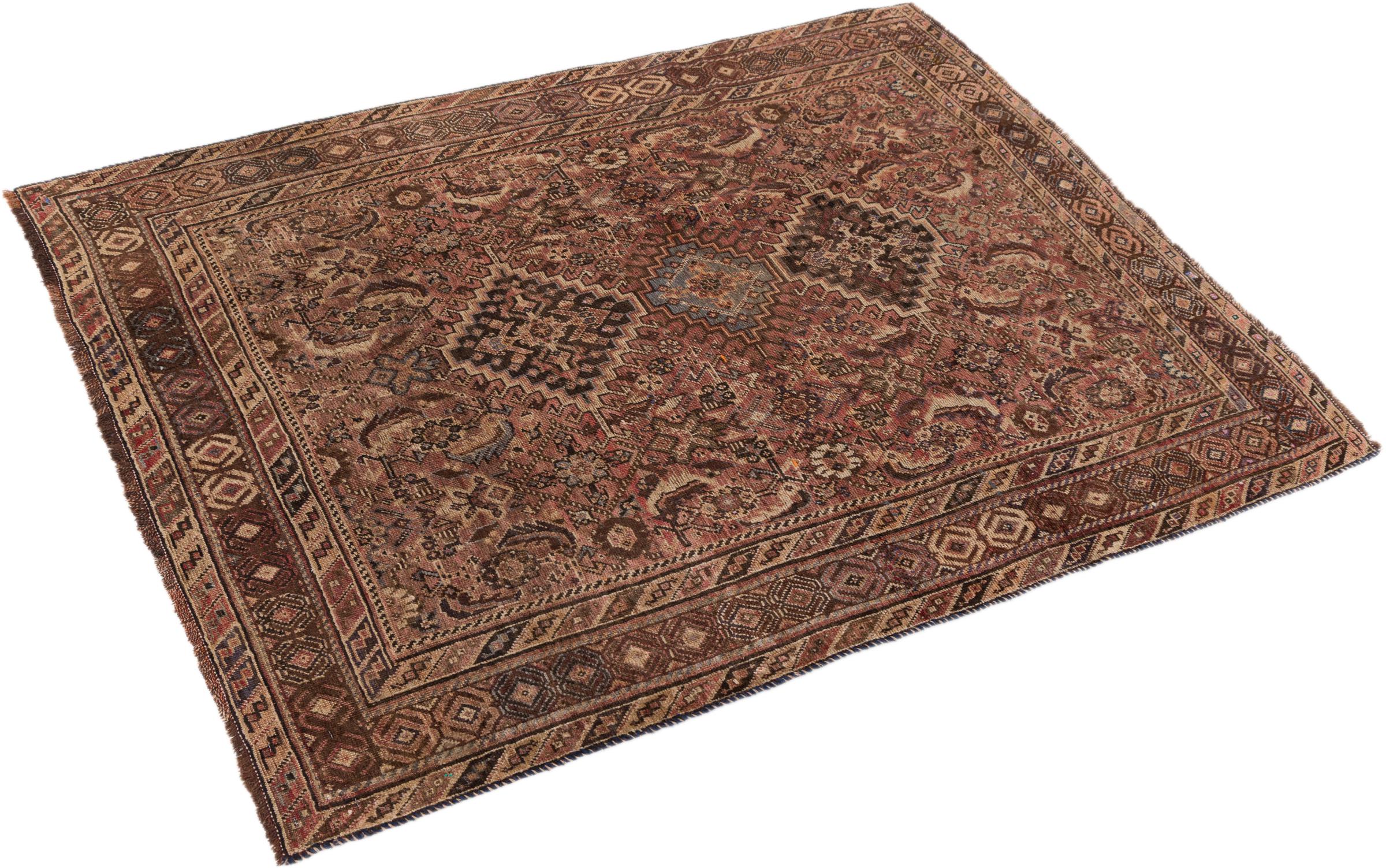 Carpet ID: 296187005850 Size: 180x120 cm Thickness: ap. 12 mm Knot density: 128 000 - 160 000 / m² Manufacturing: Knotted by hand Pile: Handspun wool Warp: Sheep wool Origin: Persia Age: Old/Semi antique, over 50 years Weight: ap. 8 kg Also know as Qashqai, Gaschgai, Gashghai, Kashgai In stock: Unique - Only 1 in stock