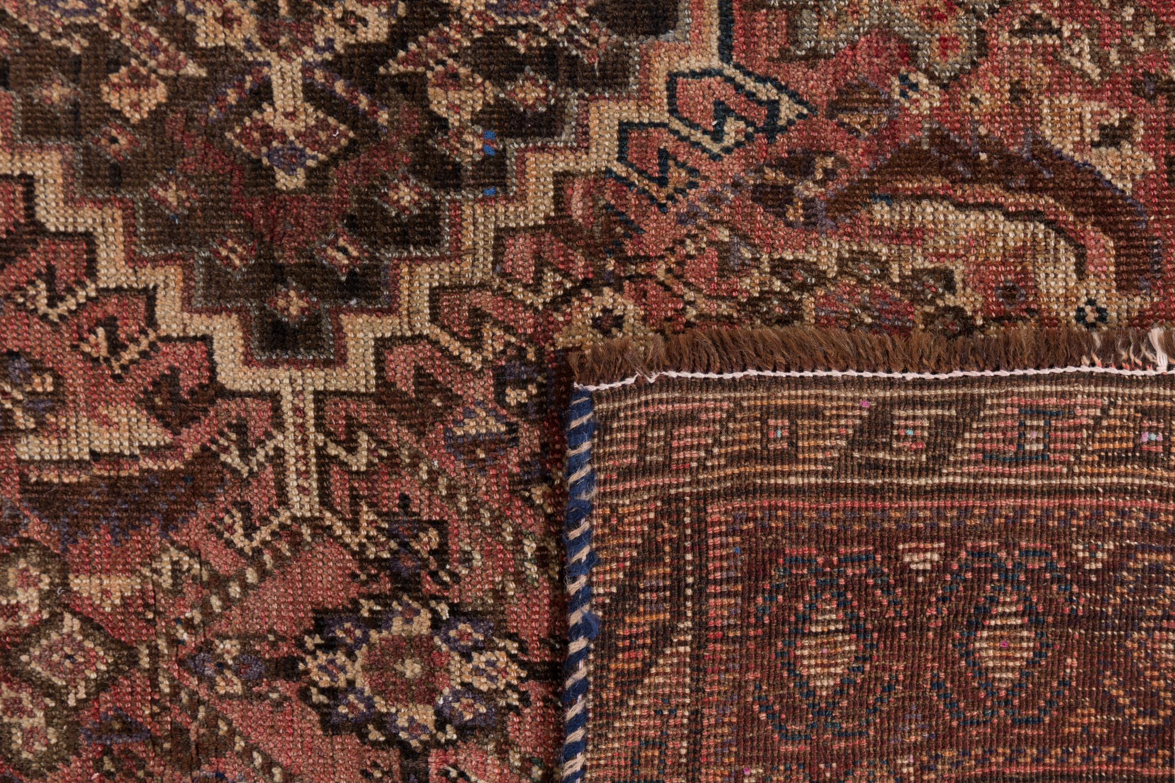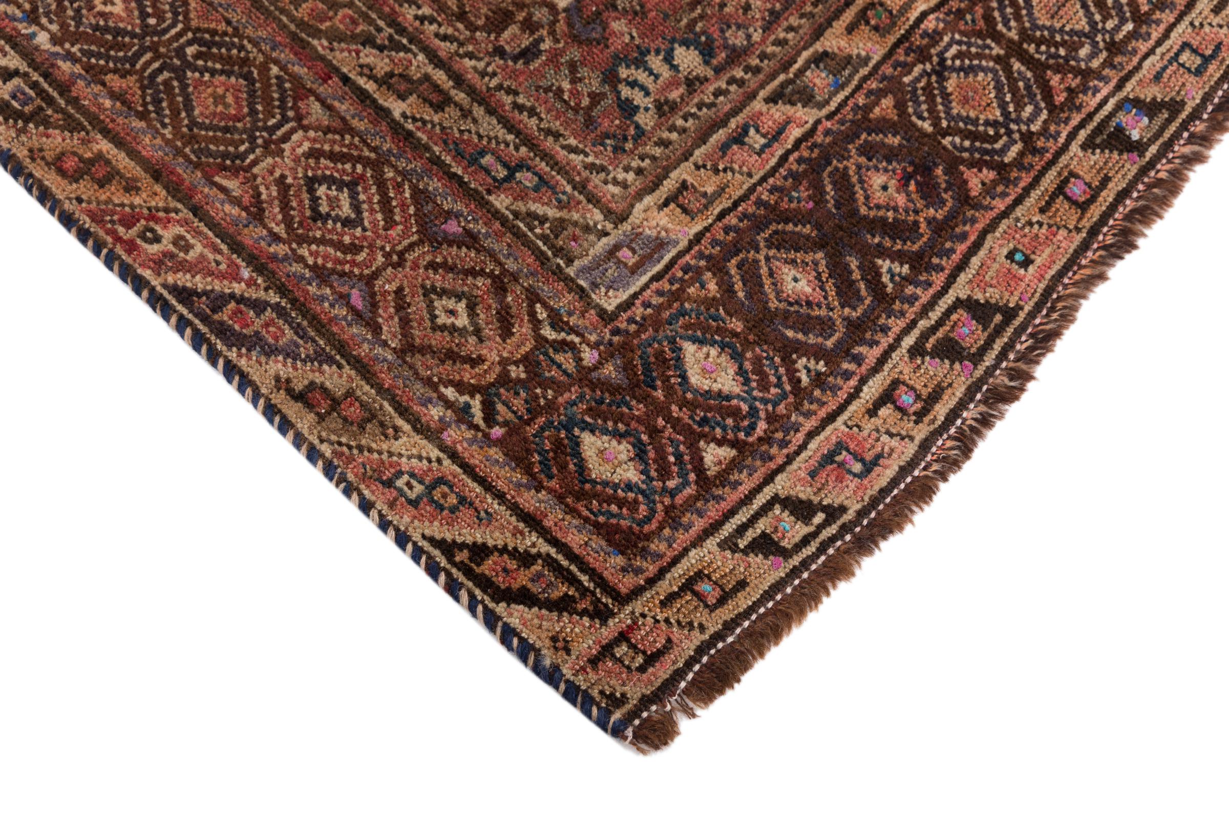 This rug belongs to village and nomadic rugs from Iran, formerly Persia. This type of rug is knotted by hand in smaller towns and villages in old tradition. Even nomads still knot Persian rugs in the open air. The rugs are knotted without a draft and completely from the mind. They are characterized by classical ornaments, which are arranged in straight and geometrical patterns. Thanks to their cultural-traditional origin, these rugs have a unique character that embodies ancient Persia.