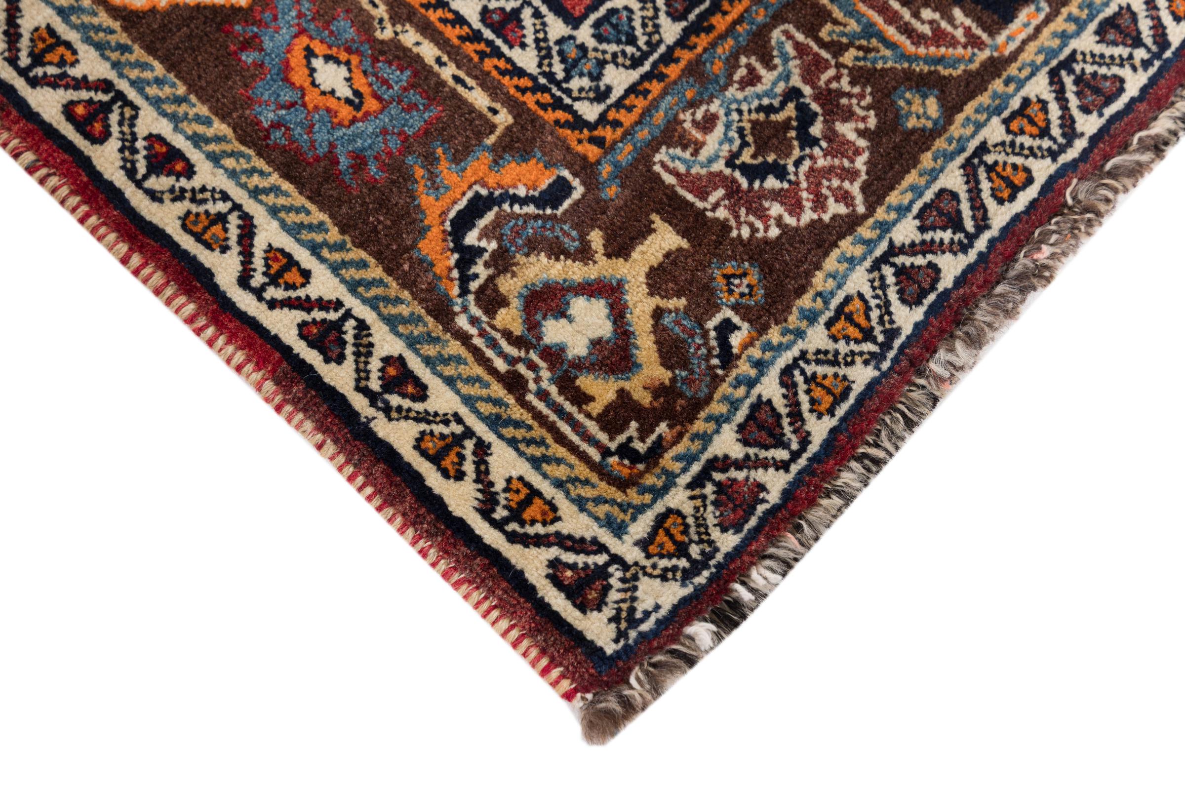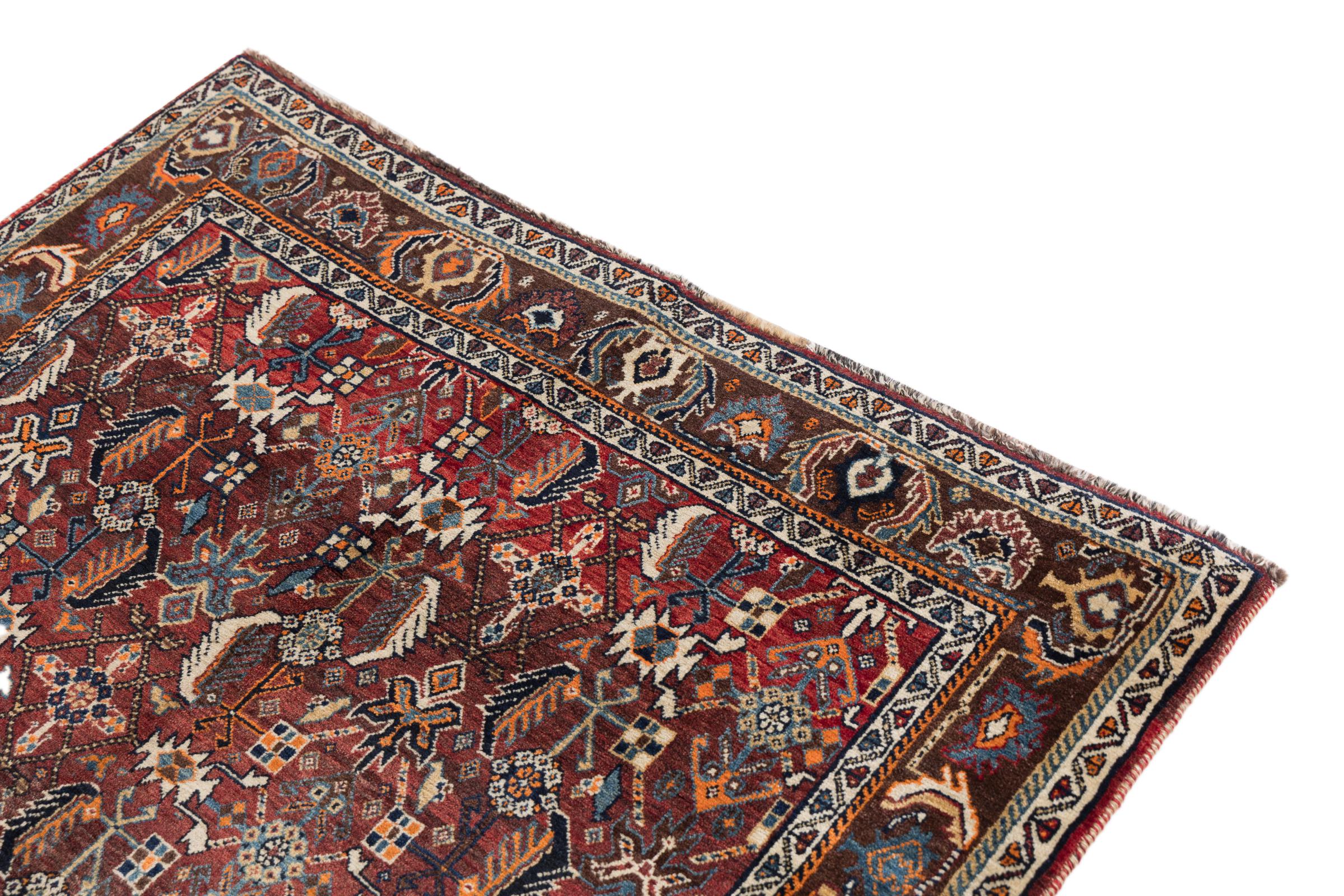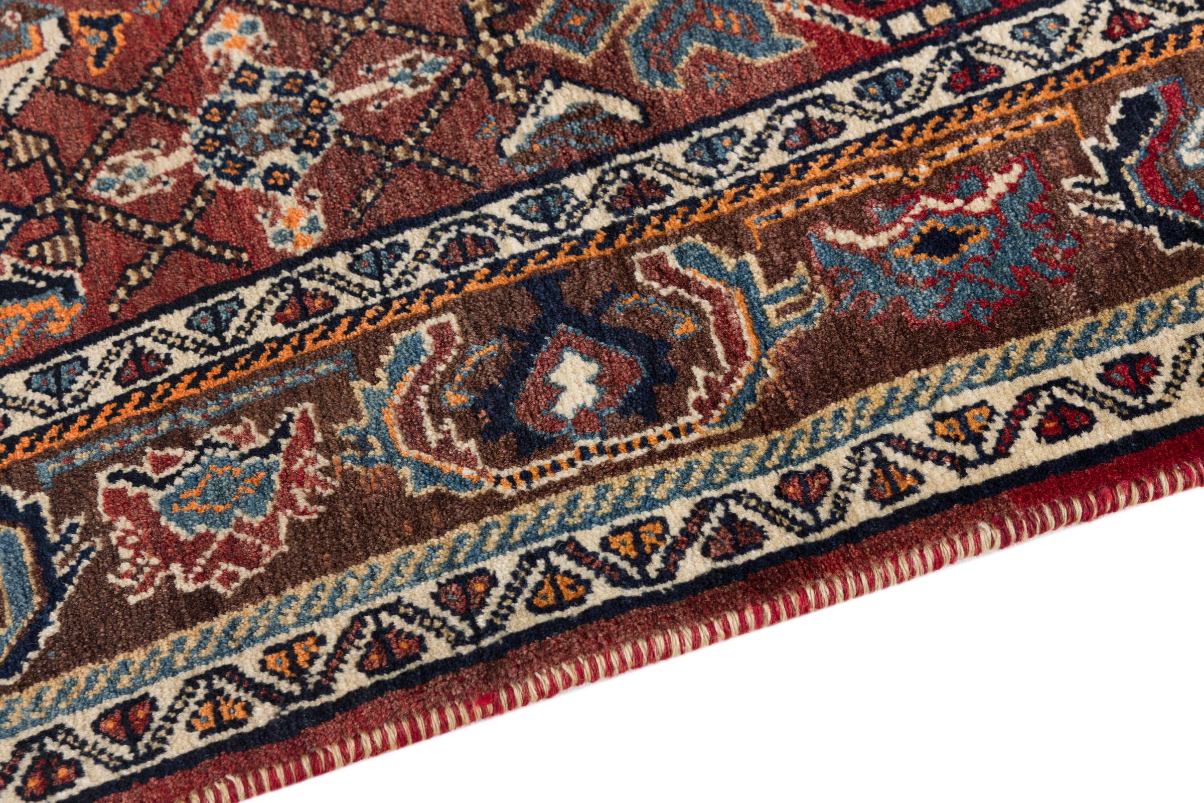 This rug belongs to village and nomadic rugs from Iran, formerly Persia. This type of rug is knotted by hand in smaller towns and villages in old tradition. Even nomads still knot Persian rugs in the open air. The rugs are knotted without a draft and completely from the mind. They are characterized by classical ornaments, which are arranged in straight and geometrical patterns. Thanks to their cultural-traditional origin, these rugs have a unique character that embodies ancient Persia.