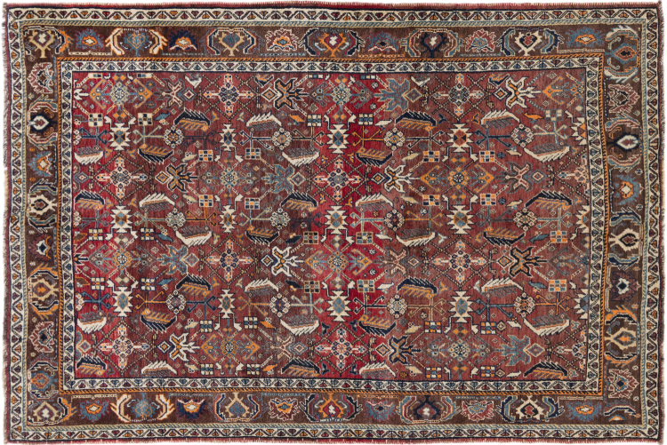 Carpet ID: 29608300757 Size: 193x127 cm Thickness: ap. 12 mm Knot density: 128 000 - 160 000 / m² Manufacturing: Knotted by hand Pile: Handspun wool Warp: Sheep wool Origin: Persia Age: Old/Semi antique, over 50 years Weight: ap. 9 kg Also know as Qashqai, Gaschgai, Gashghai, Kashgai In stock: Unique - Only 1 in stock