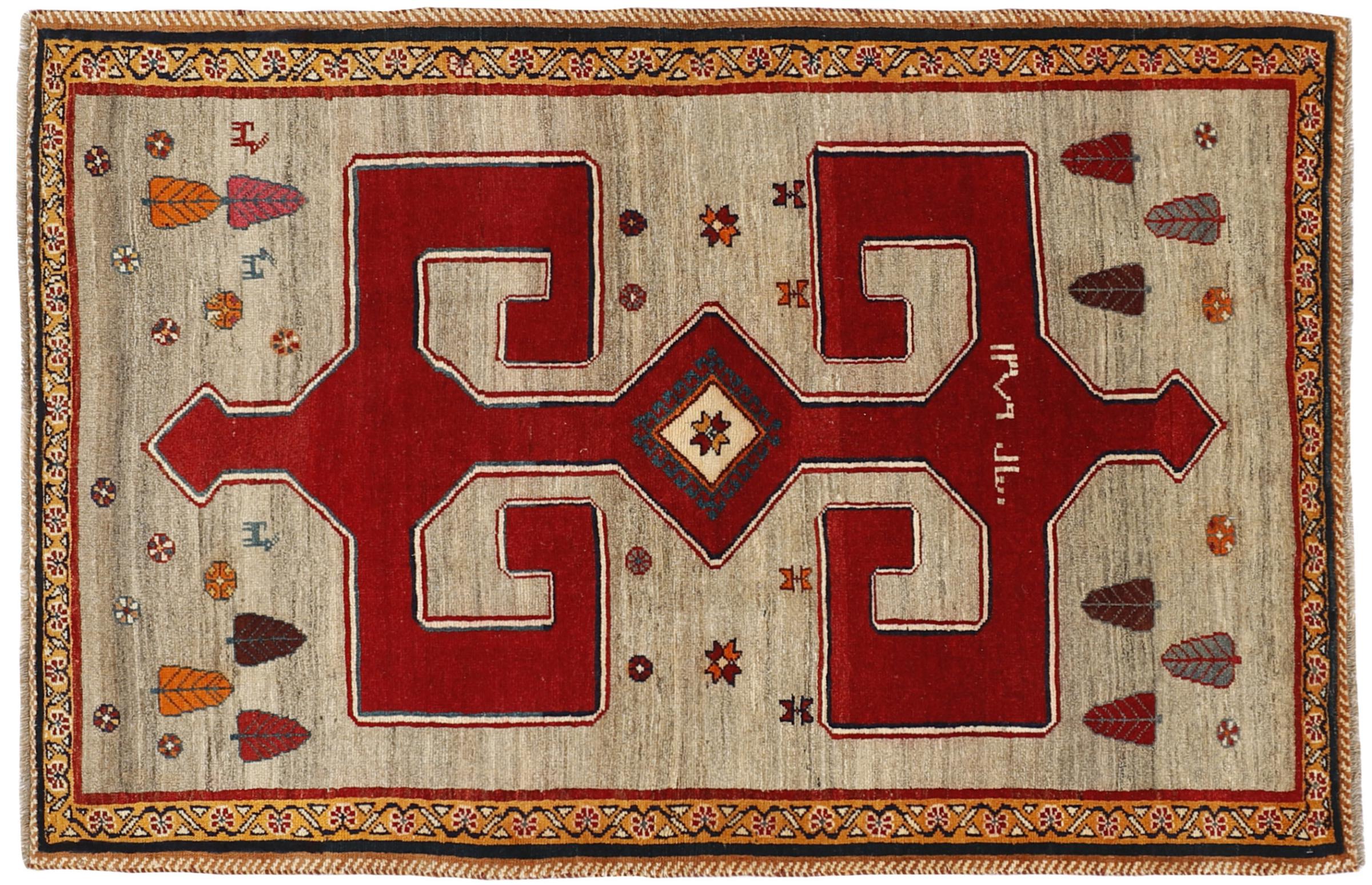 This rug belongs to village and nomadic rugs from Iran, formerly Persia. This type of rug is knotted by hand in smaller towns and villages in old tradition. Even nomads still knot Persian rugs in the open air. The rugs are knotted without a draft and completely from the mind. They are characterized by classical ornaments, which are arranged in straight and geometrical patterns. Thanks to their cultural-traditional origin, these rugs have a unique character that embodies ancient Persia.
