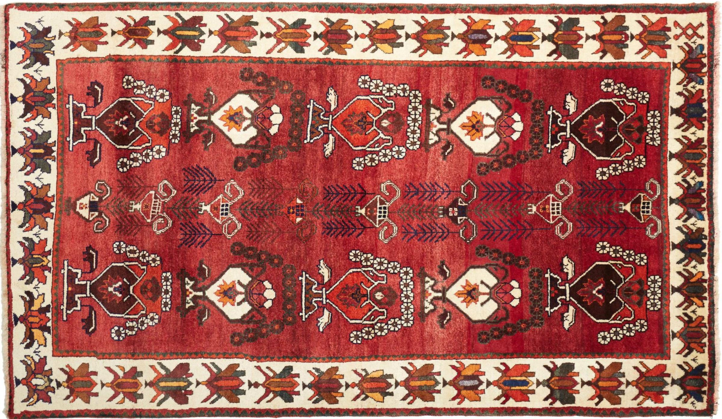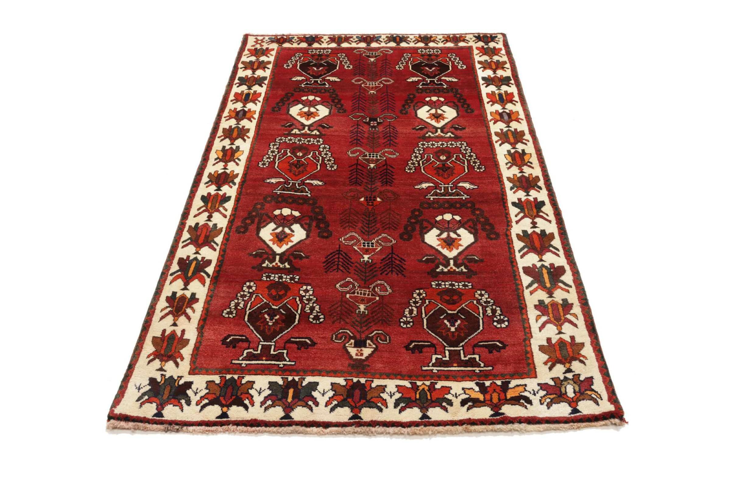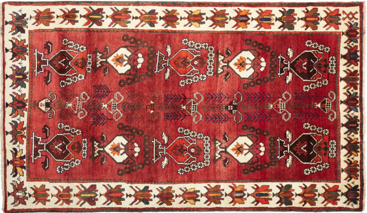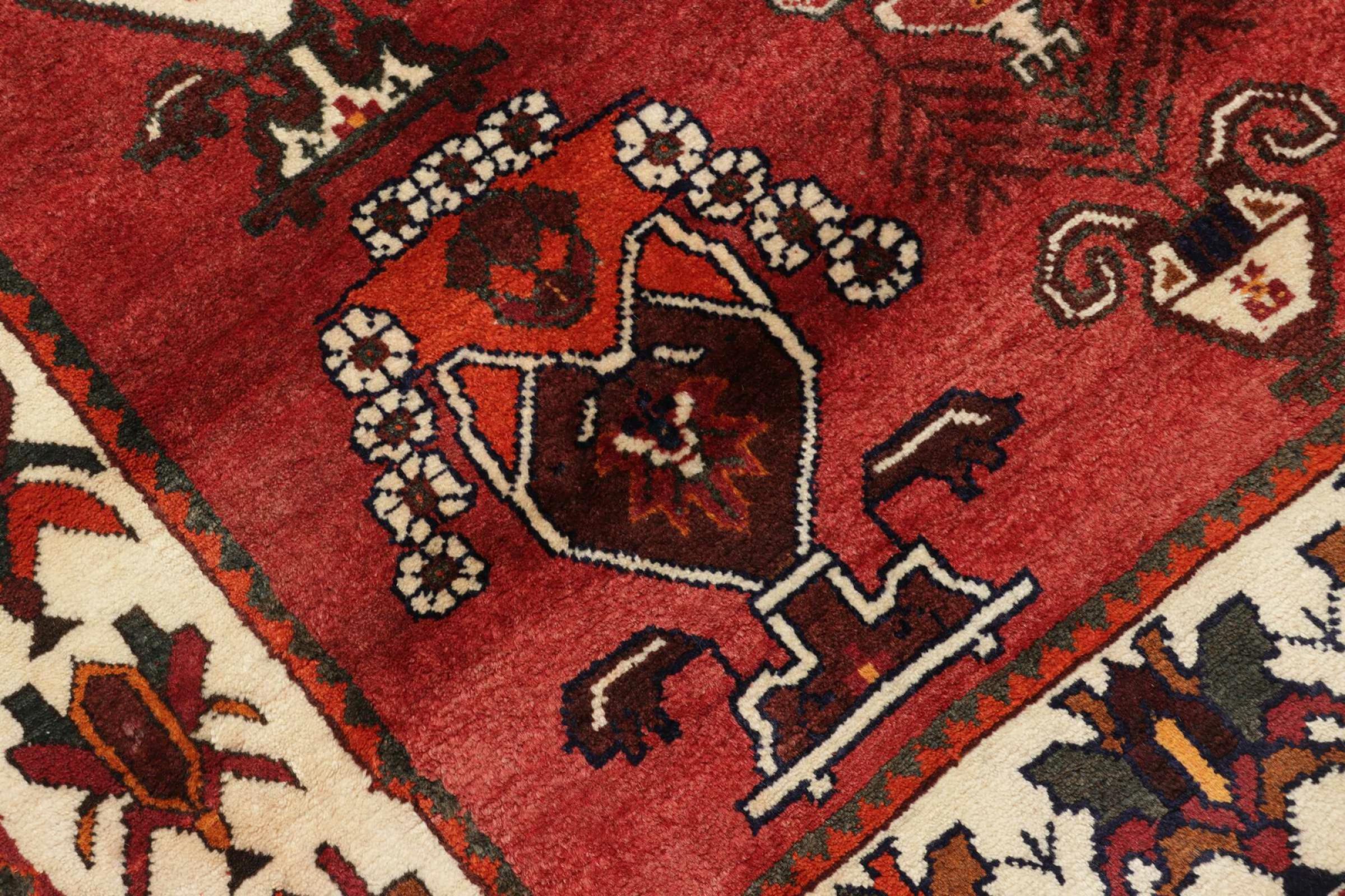 This rug belongs to village and nomadic rugs from Iran, formerly Persia. This type of rug is knotted by hand in smaller towns and villages in old tradition. Even nomads still knot Persian rugs in the open air. The rugs are knotted without a draft and completely from the mind. They are characterized by classical ornaments, which are arranged in straight and geometrical patterns. Thanks to their cultural-traditional origin, these rugs have a unique character that embodies ancient Persia.