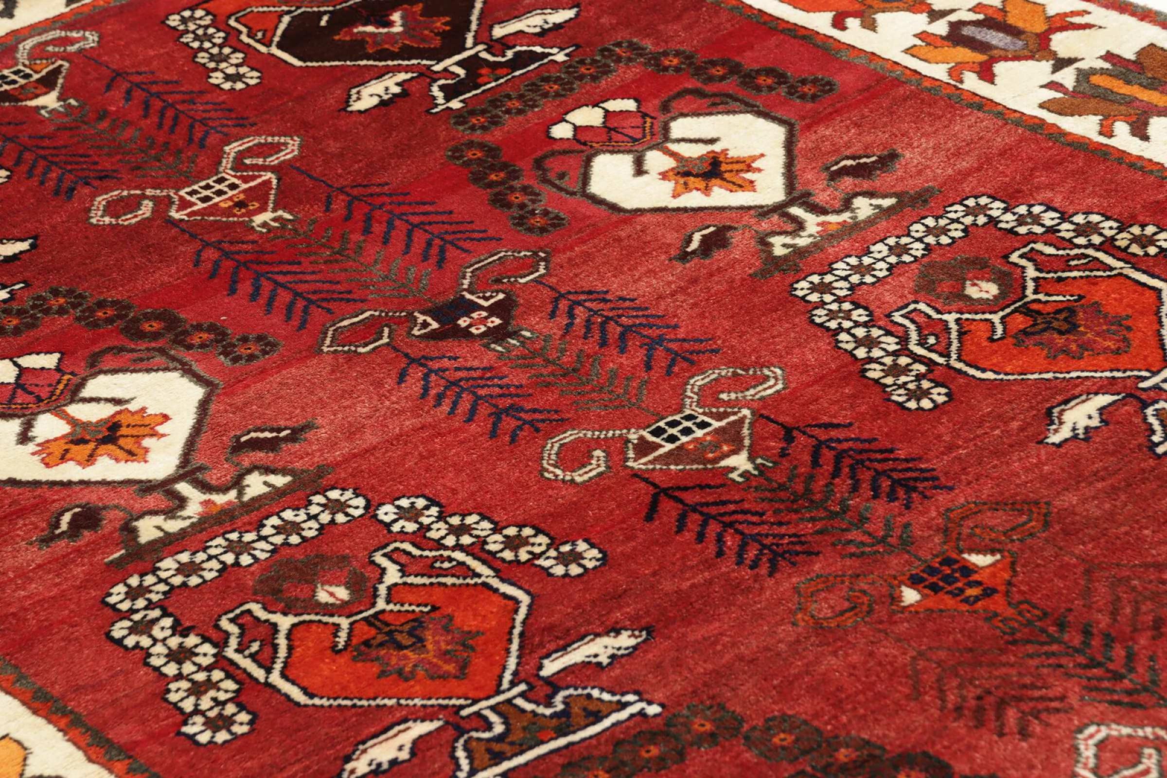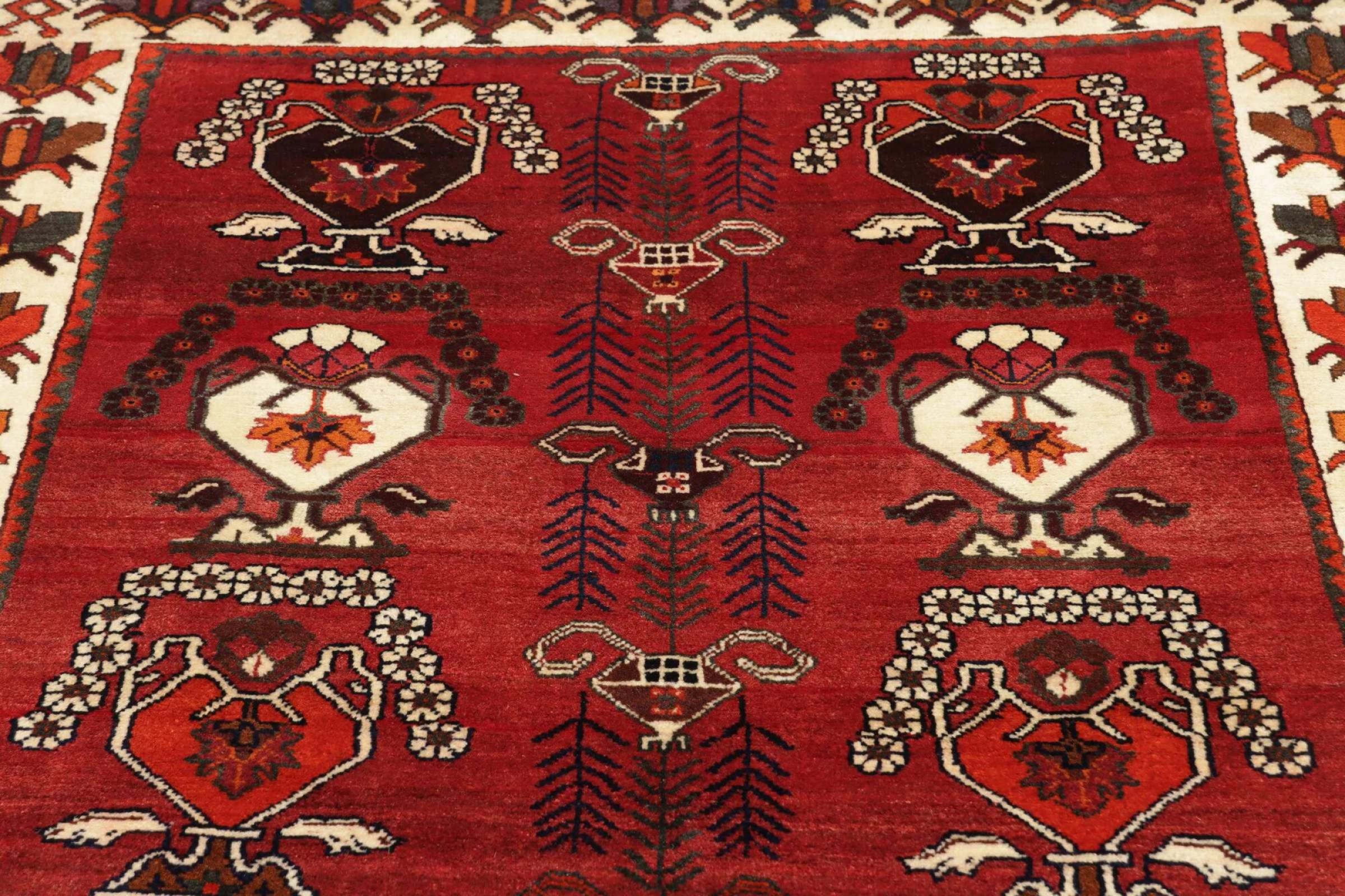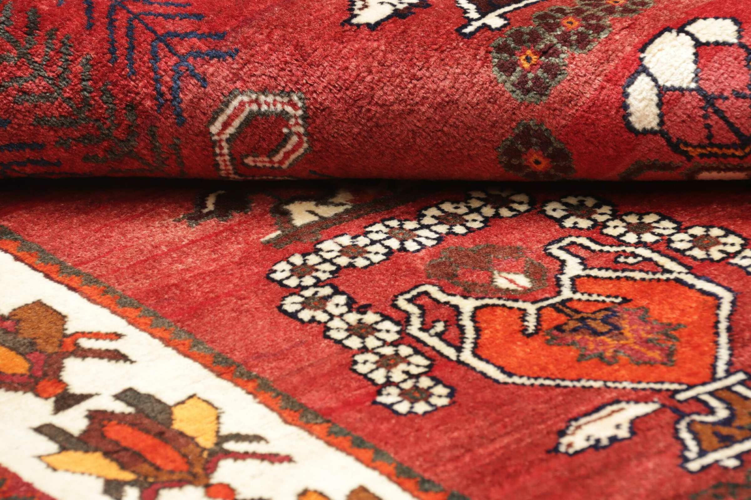 This rug belongs to village and nomadic rugs from Iran, formerly Persia. This type of rug is knotted by hand in smaller towns and villages in old tradition. Even nomads still knot Persian rugs in the open air. The rugs are knotted without a draft and completely from the mind. They are characterized by classical ornaments, which are arranged in straight and geometrical patterns. Thanks to their cultural-traditional origin, these rugs have a unique character that embodies ancient Persia.