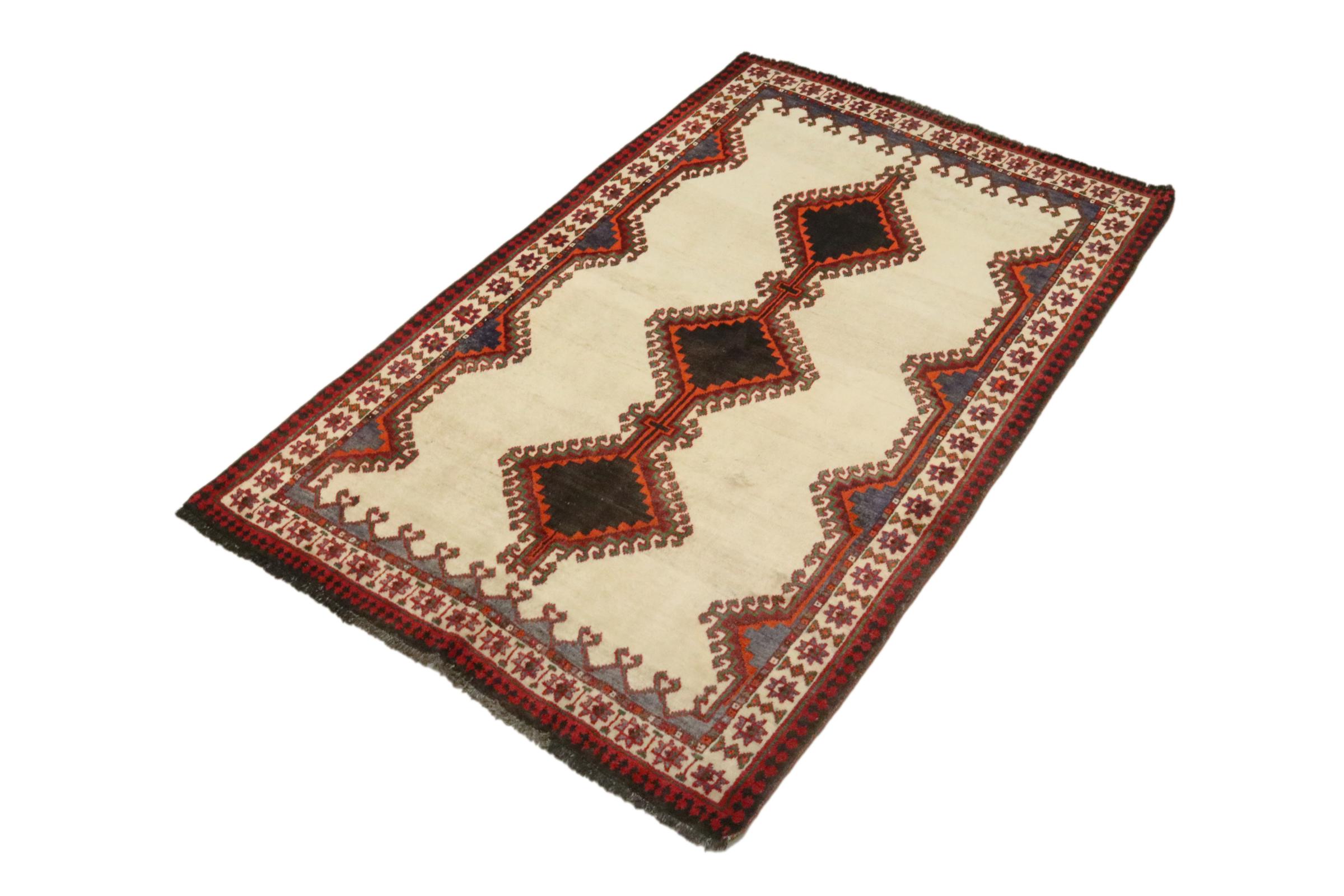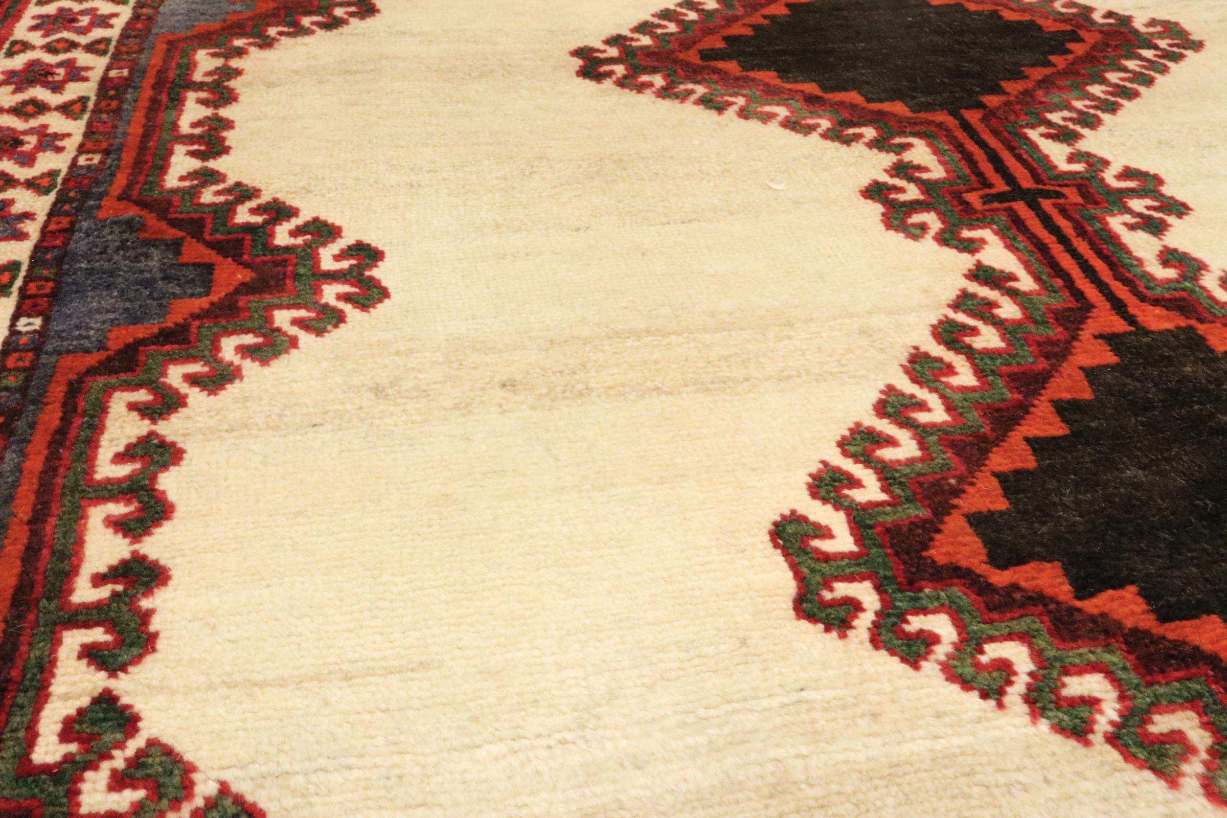 This rug belongs to village and nomadic rugs from Iran, formerly Persia. This type of rug is knotted by hand in smaller towns and villages in old tradition. Even nomads still knot Persian rugs in the open air. The rugs are knotted without a draft and completely from the mind. They are characterized by classical ornaments, which are arranged in straight and geometrical patterns. Thanks to their cultural-traditional origin, these rugs have a unique character that embodies ancient Persia.