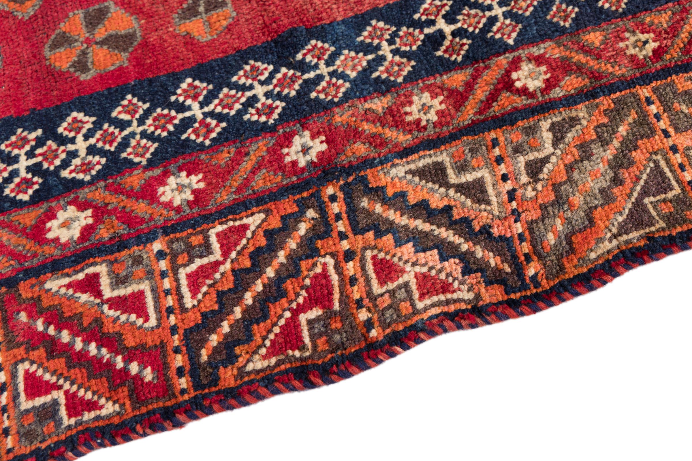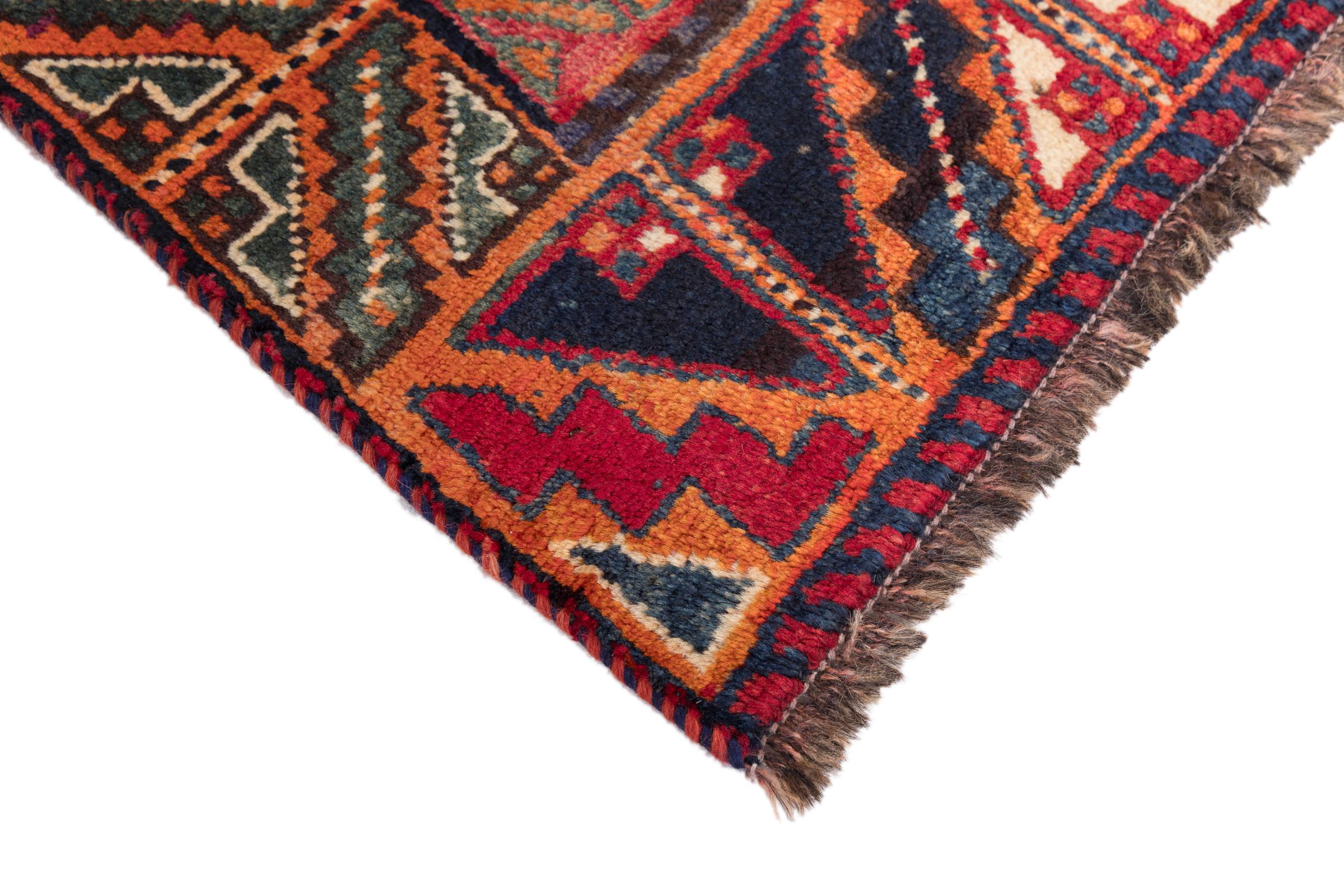 This rug belongs to village and nomadic rugs from Iran, formerly Persia. This type of rug is knotted by hand in smaller towns and villages in old tradition. Even nomads still knot Persian rugs in the open air. The rugs are knotted without a draft and completely from the mind. They are characterized by classical ornaments, which are arranged in straight and geometrical patterns. Thanks to their cultural-traditional origin, these rugs have a unique character that embodies ancient Persia.
