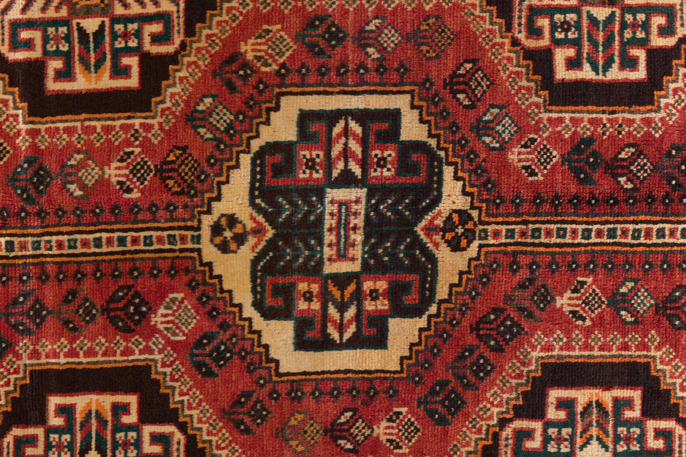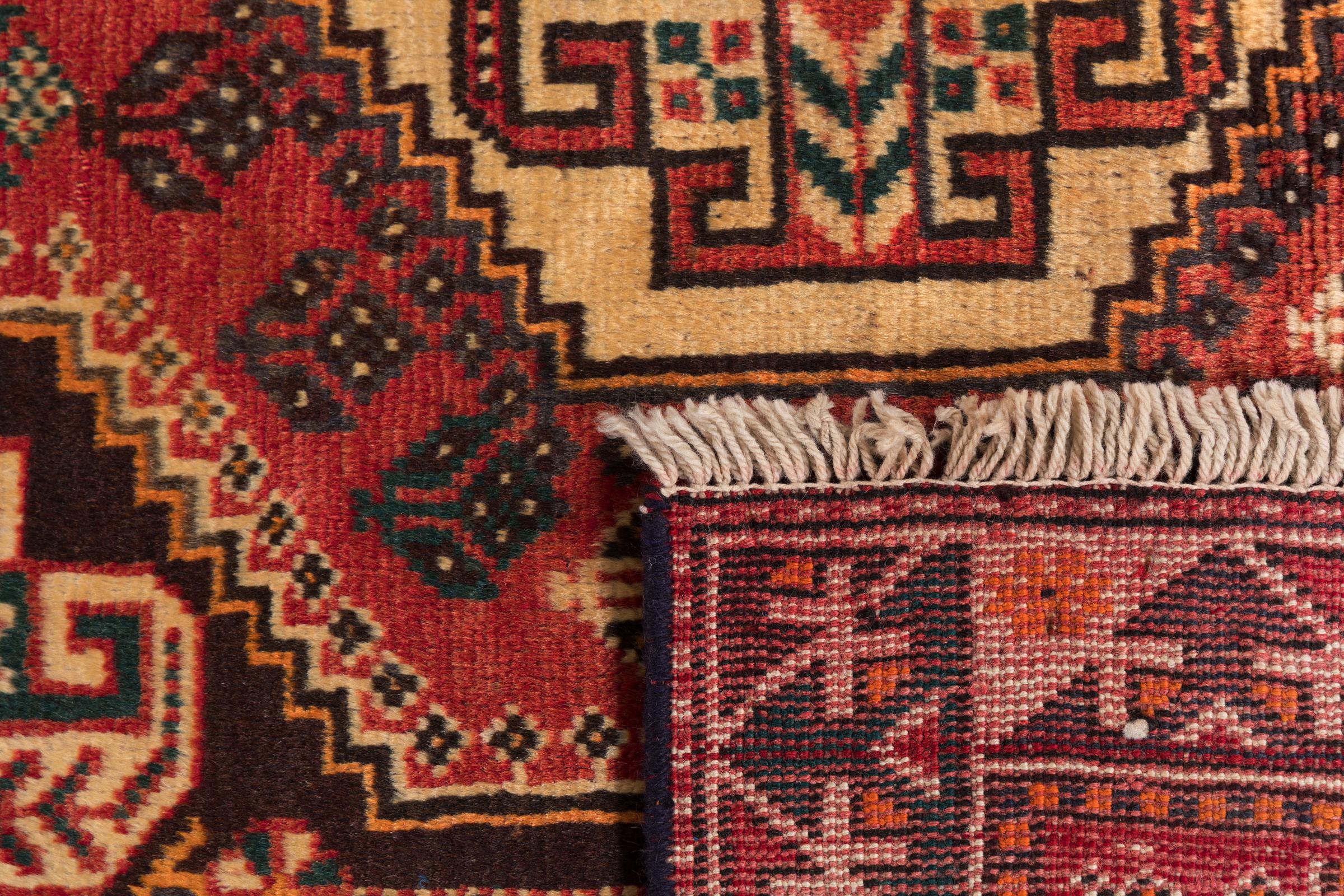 This rug belongs to village and nomadic rugs from Iran, formerly Persia. This type of rug is knotted by hand in smaller towns and villages in old tradition. Even nomads still knot Persian rugs in the open air. The rugs are knotted without a draft and completely from the mind. They are characterized by classical ornaments, which are arranged in straight and geometrical patterns. Thanks to their cultural-traditional origin, these rugs have a unique character that embodies ancient Persia.