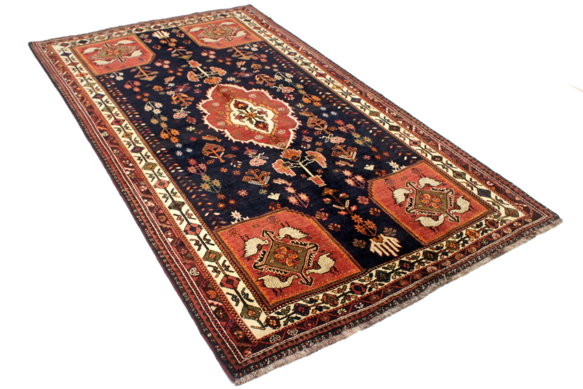 Carpet ID: 111059008686972 Size: 276x158 cm Thickness: ap. 12 mm Knot density: 160 000 - 200 000 / m² Manufacturing: Knotted by hand Pile: Handspun wool Warp: Cotton Origin: Persia Age: New Weight: ap. 15 kg Also know as Qashqai, Gaschgai, Gashghai, Kashgai In stock: Unique - Only 1 in stock