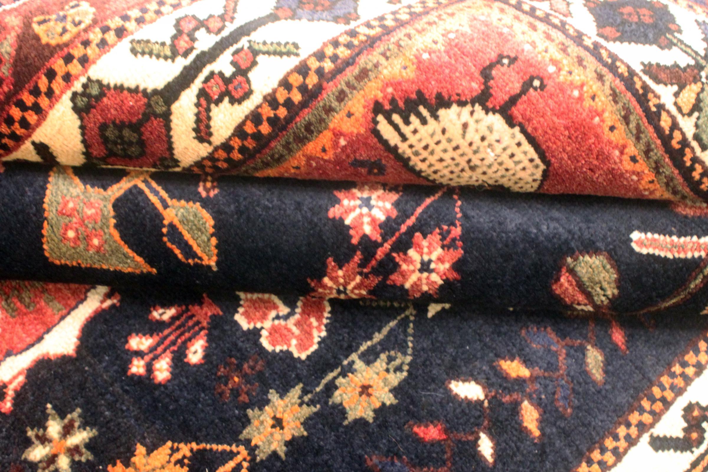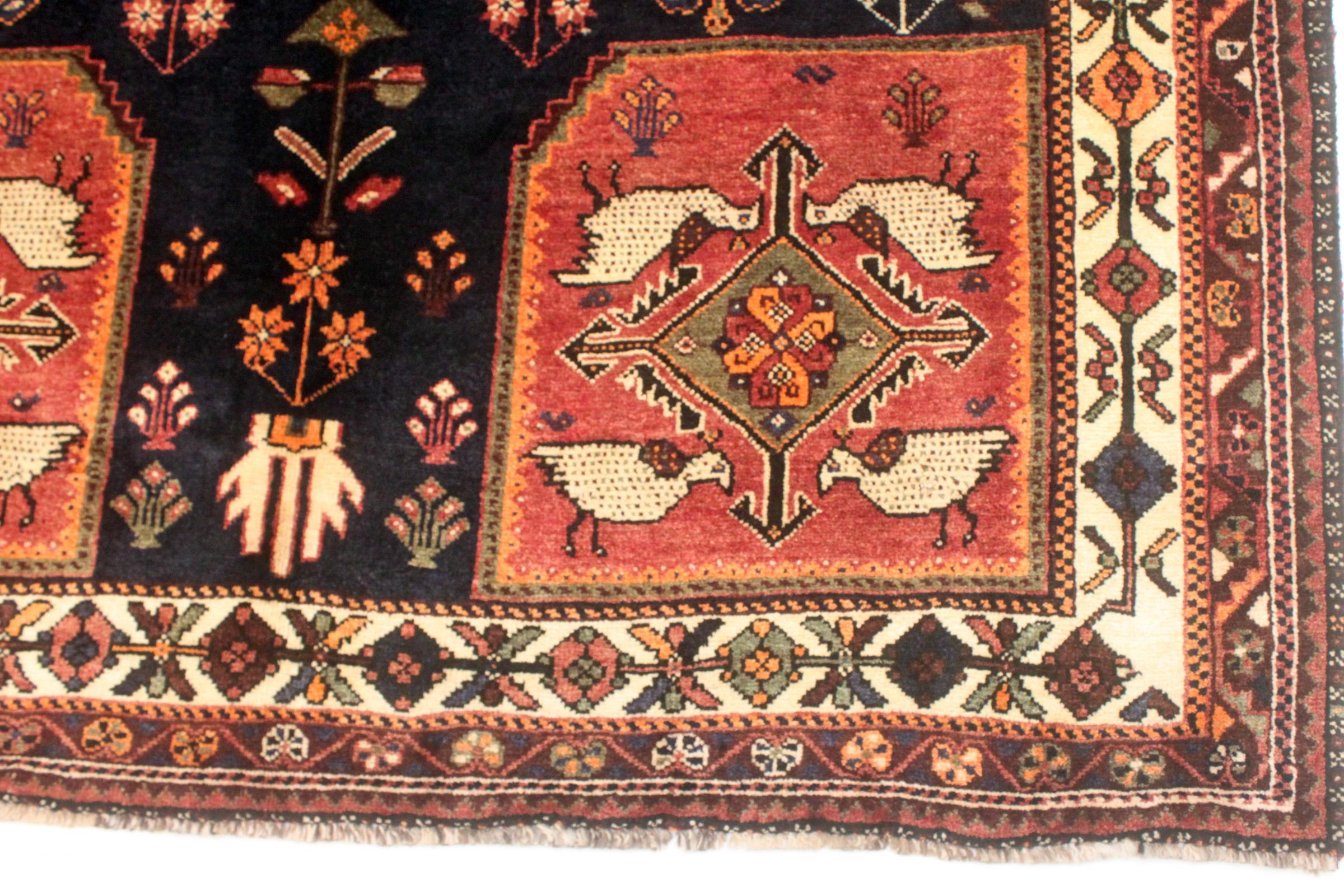 This rug belongs to village and nomadic rugs from Iran, formerly Persia. This type of rug is knotted by hand in smaller towns and villages in old tradition. Even nomads still knot Persian rugs in the open air. The rugs are knotted without a draft and completely from the mind. They are characterized by classical ornaments, which are arranged in straight and geometrical patterns. Thanks to their cultural-traditional origin, these rugs have a unique character that embodies ancient Persia.