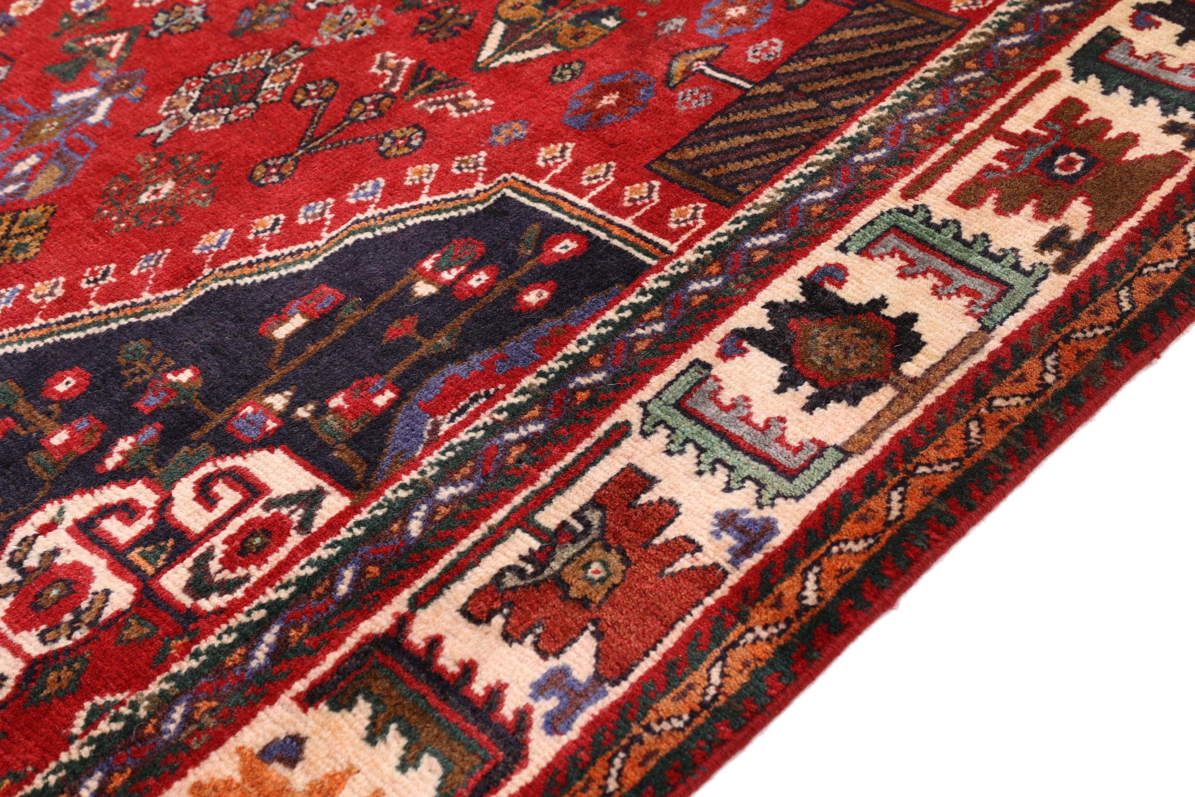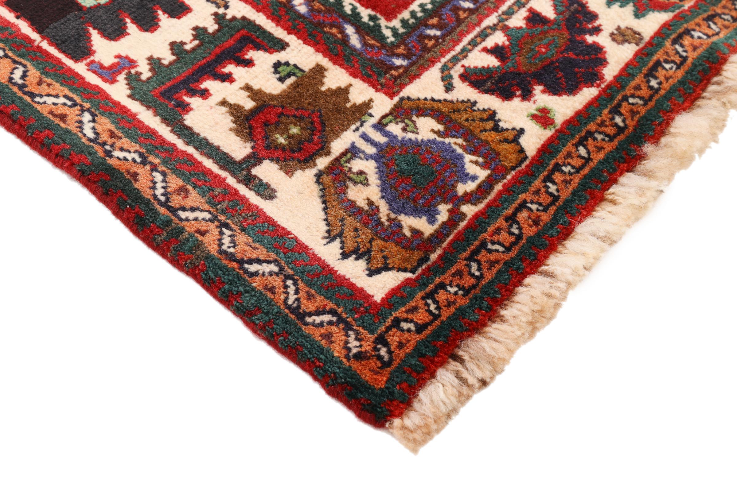 This rug belongs to village and nomadic rugs from Iran, formerly Persia. This type of rug is knotted by hand in smaller towns and villages in old tradition. Even nomads still knot Persian rugs in the open air. The rugs are knotted without a draft and completely from the mind. They are characterized by classical ornaments, which are arranged in straight and geometrical patterns. Thanks to their cultural-traditional origin, these rugs have a unique character that embodies ancient Persia.