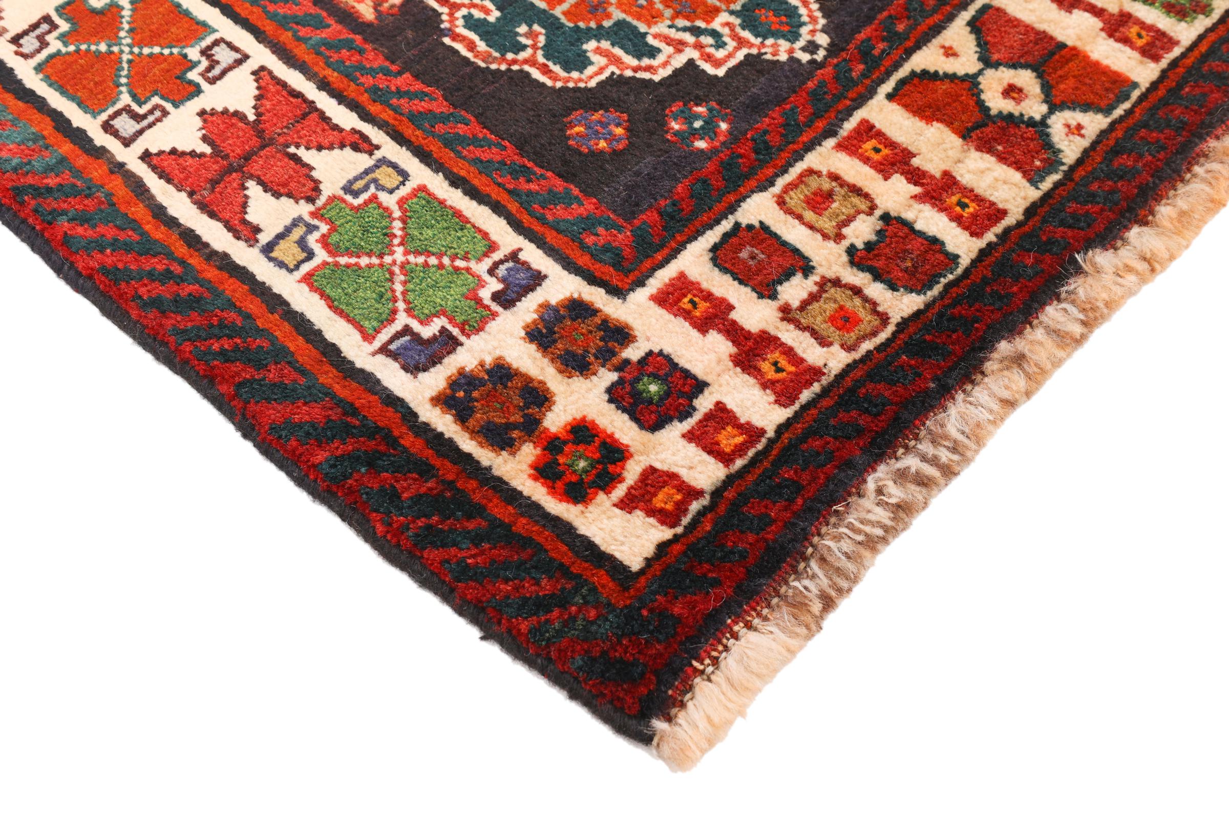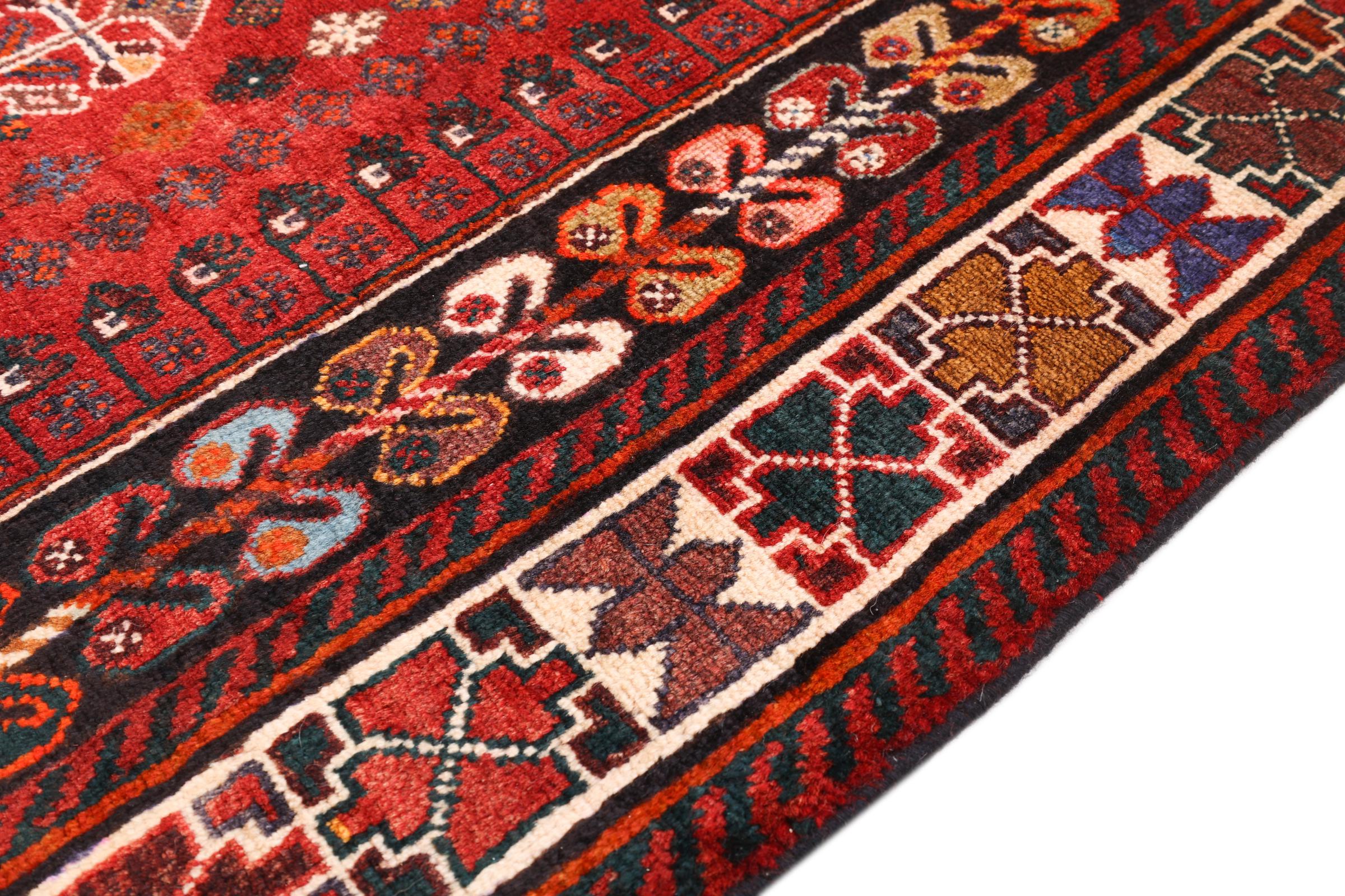 This rug belongs to village and nomadic rugs from Iran, formerly Persia. This type of rug is knotted by hand in smaller towns and villages in old tradition. Even nomads still knot Persian rugs in the open air. The rugs are knotted without a draft and completely from the mind. They are characterized by classical ornaments, which are arranged in straight and geometrical patterns. Thanks to their cultural-traditional origin, these rugs have a unique character that embodies ancient Persia.