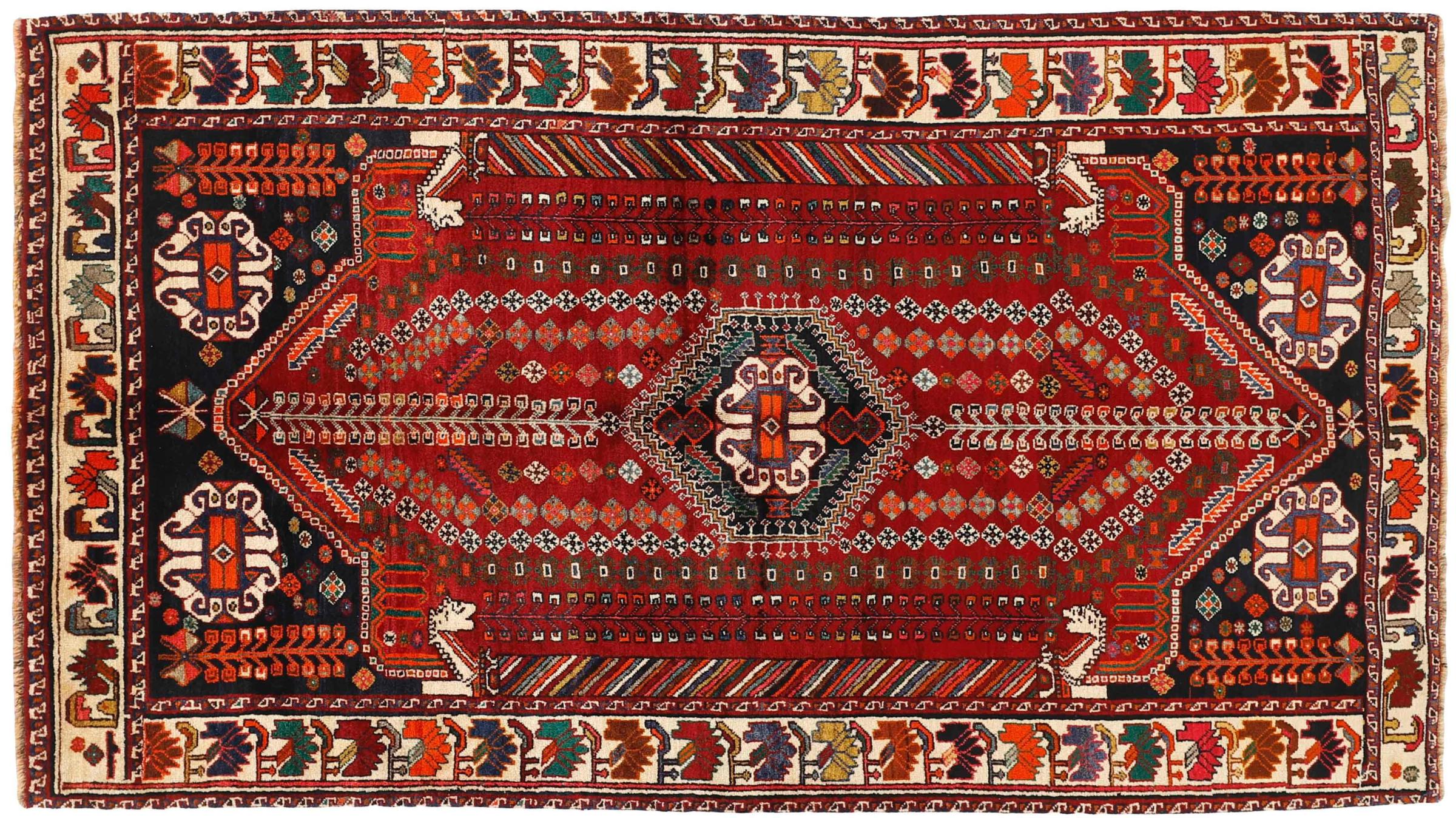 Carpet ID: 206649004895811 Size: 279x154 cm Thickness: ap. 12 mm Knot density: 160 000 - 200 000 / m² Manufacturing: Knotted by hand Pile: Handspun wool Warp: Sheep wool Origin: Persia Age: New Weight: ap. 15 kg Also know as Qashqai, Gaschgai, Gashghai, Kashgai In stock: Unique - Only 1 in stock