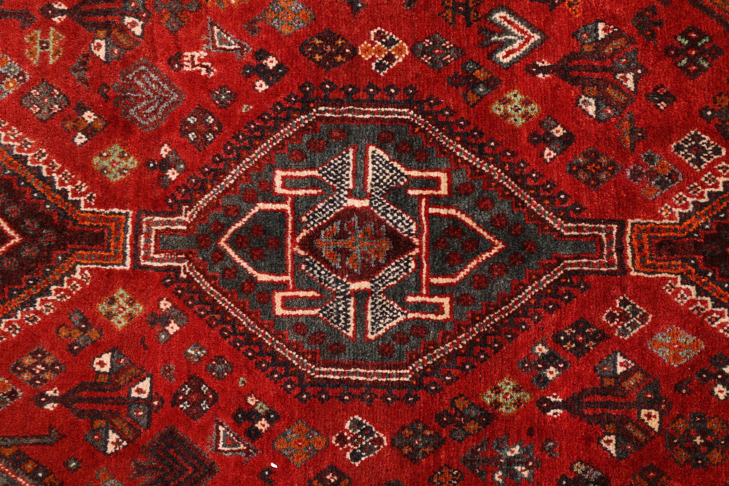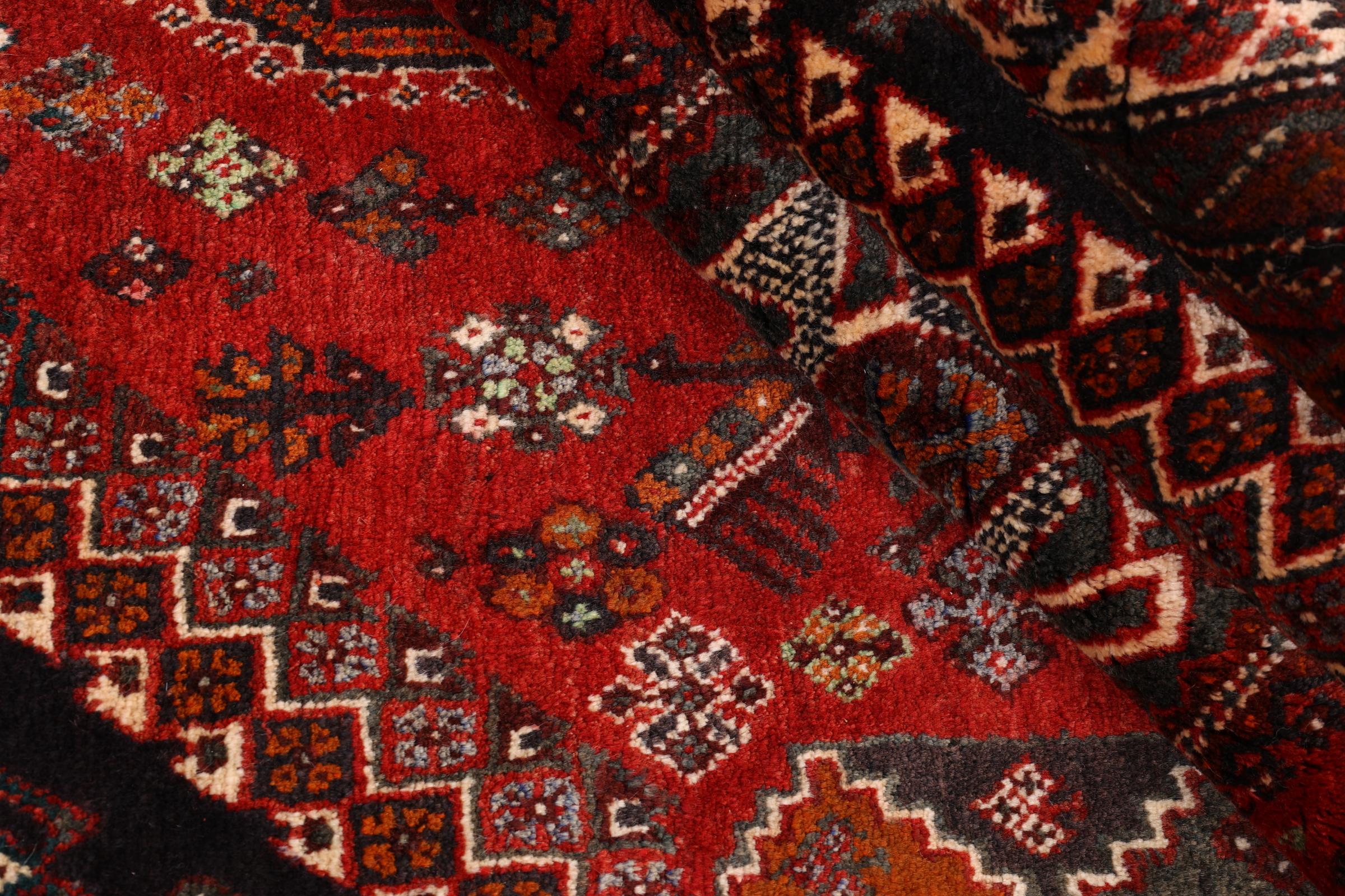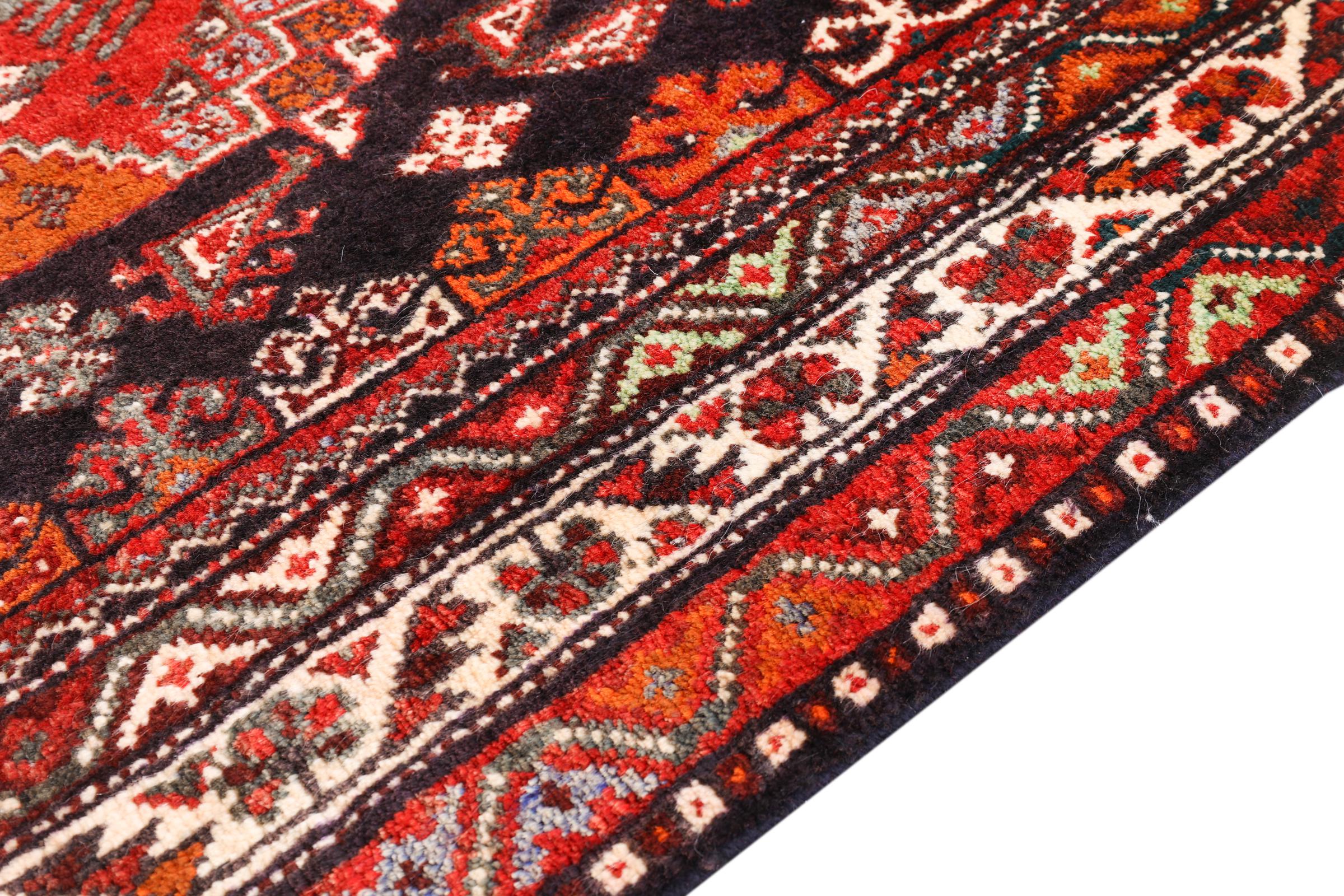 This rug belongs to village and nomadic rugs from Iran, formerly Persia. This type of rug is knotted by hand in smaller towns and villages in old tradition. Even nomads still knot Persian rugs in the open air. The rugs are knotted without a draft and completely from the mind. They are characterized by classical ornaments, which are arranged in straight and geometrical patterns. Thanks to their cultural-traditional origin, these rugs have a unique character that embodies ancient Persia.