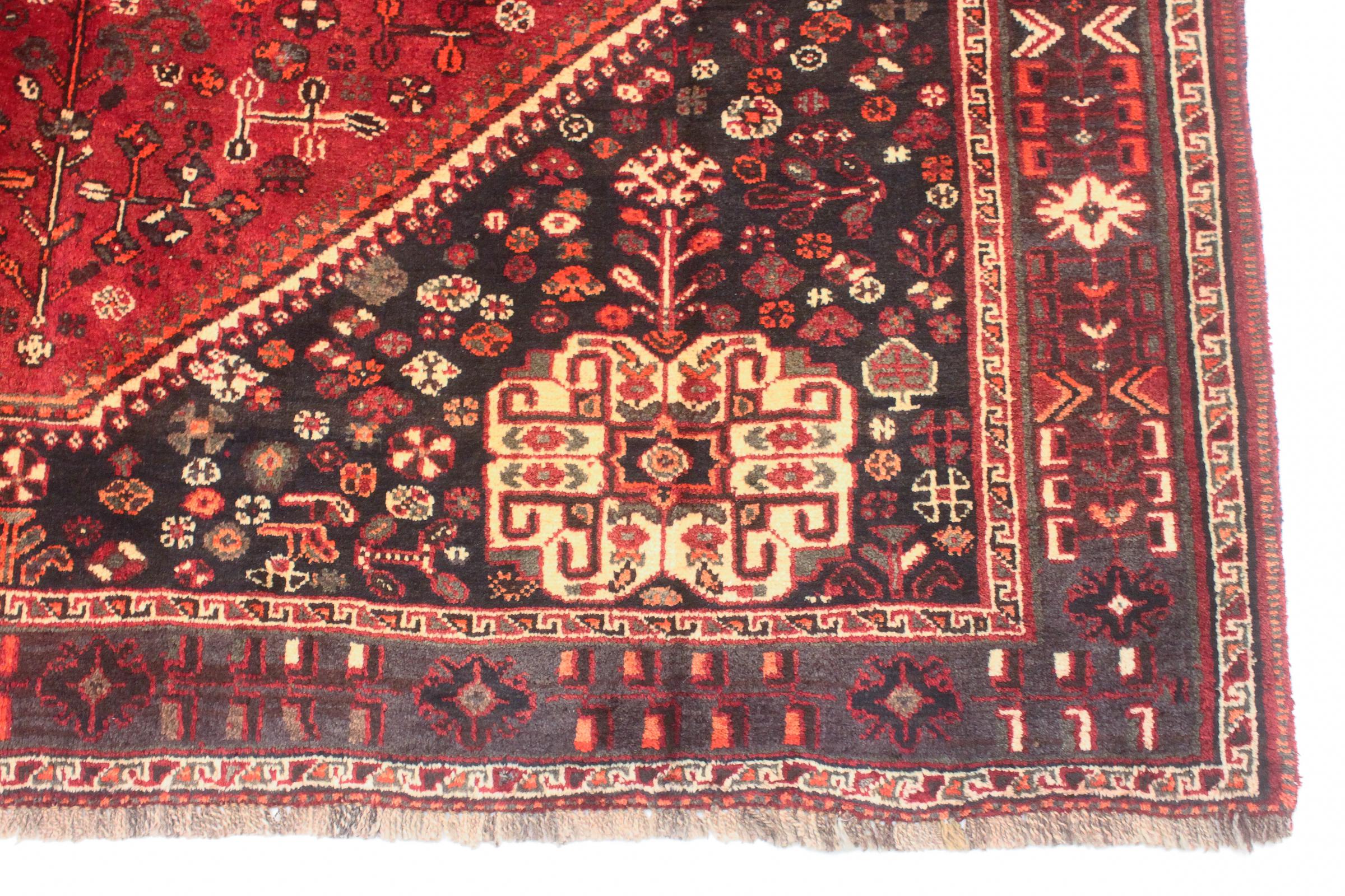 This rug belongs to village and nomadic rugs from Iran, formerly Persia. This type of rug is knotted by hand in smaller towns and villages in old tradition. Even nomads still knot Persian rugs in the open air. The rugs are knotted without a draft and completely from the mind. They are characterized by classical ornaments, which are arranged in straight and geometrical patterns. Thanks to their cultural-traditional origin, these rugs have a unique character that embodies ancient Persia.
