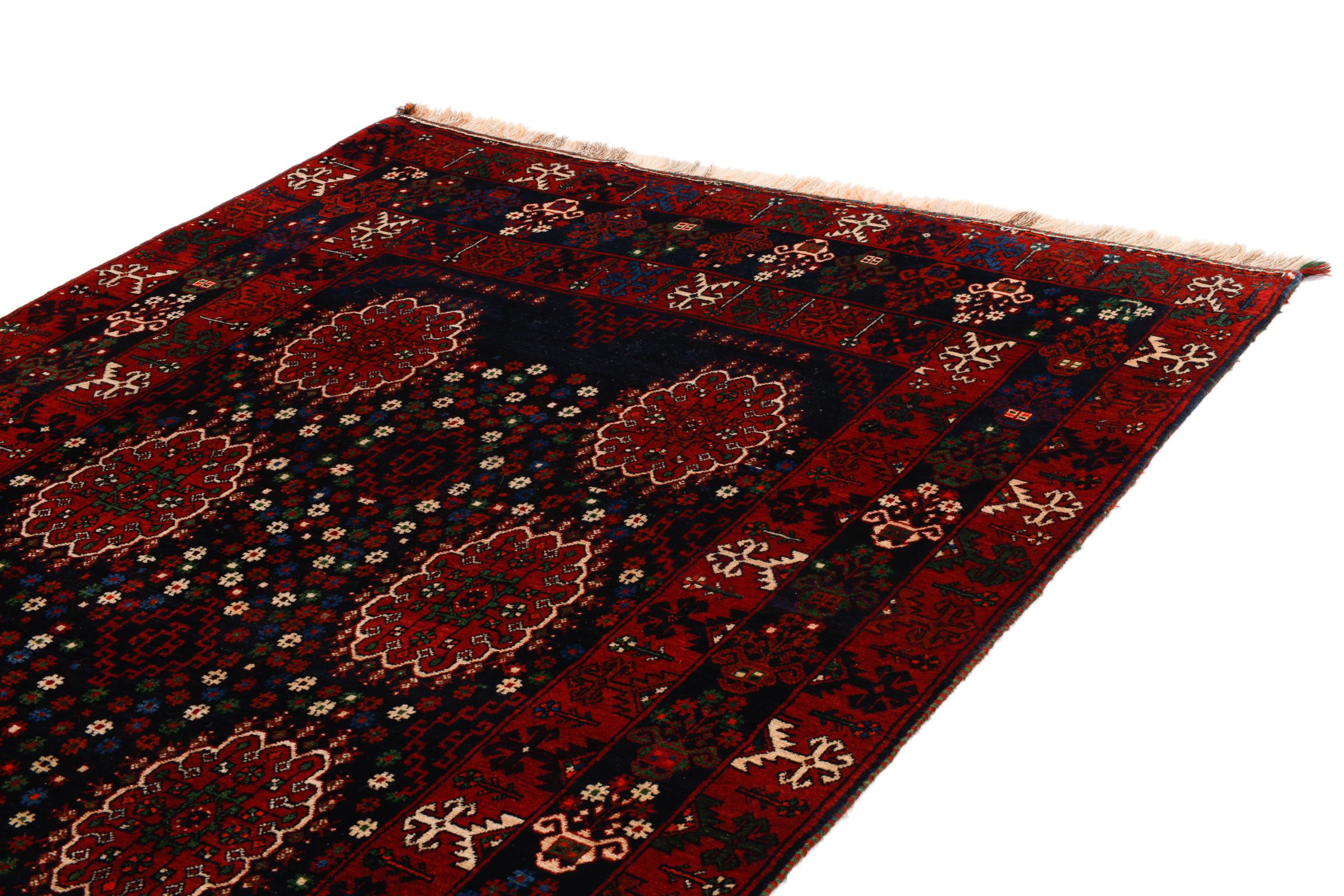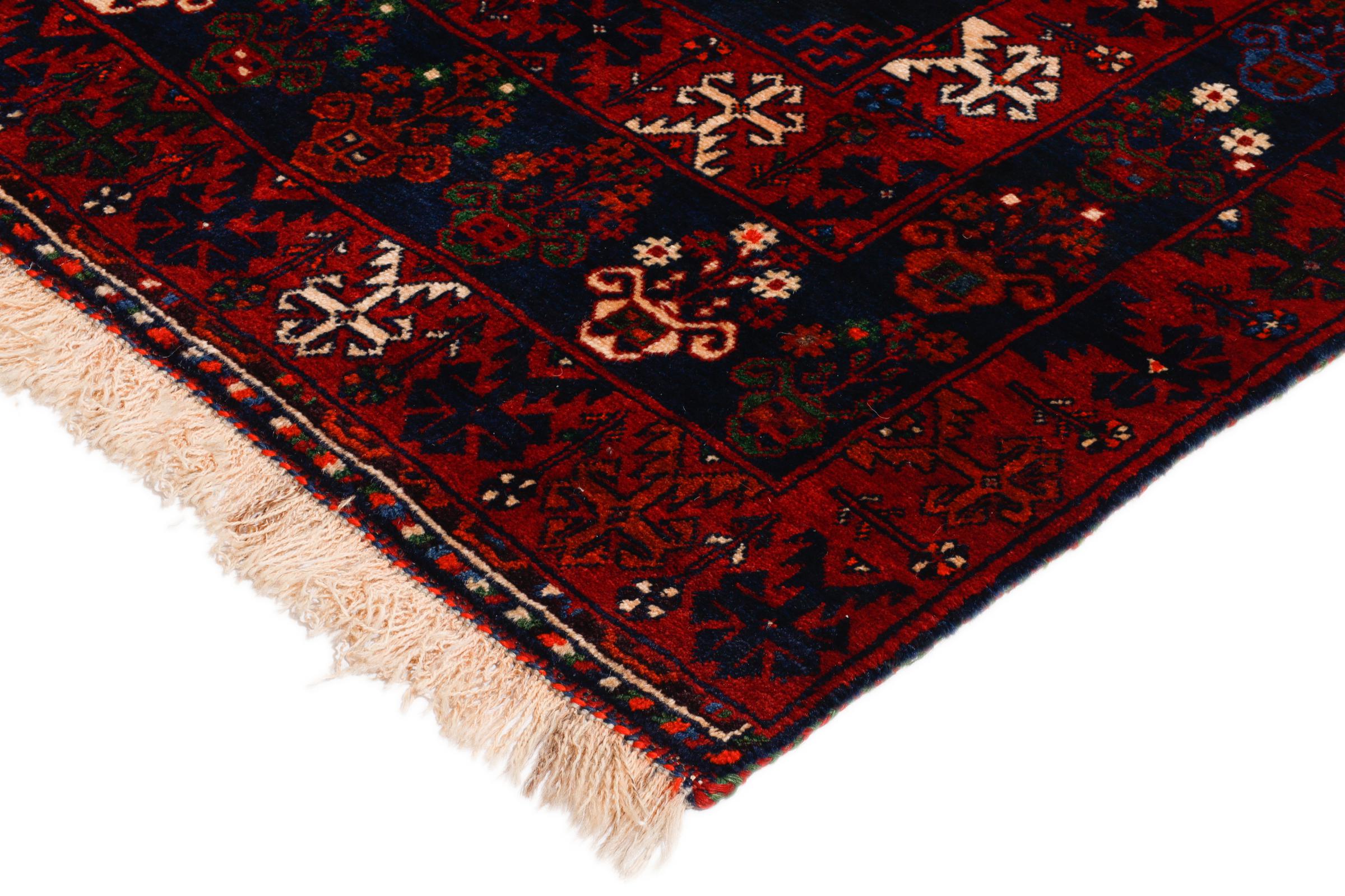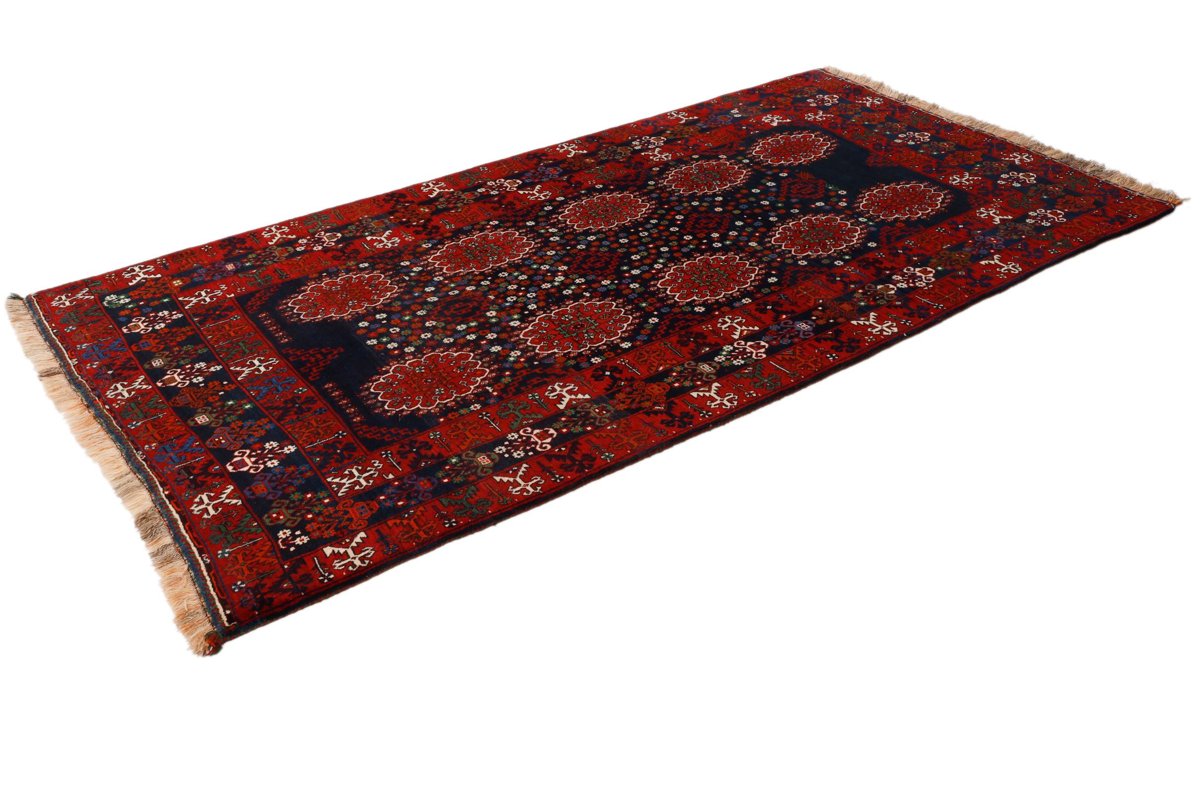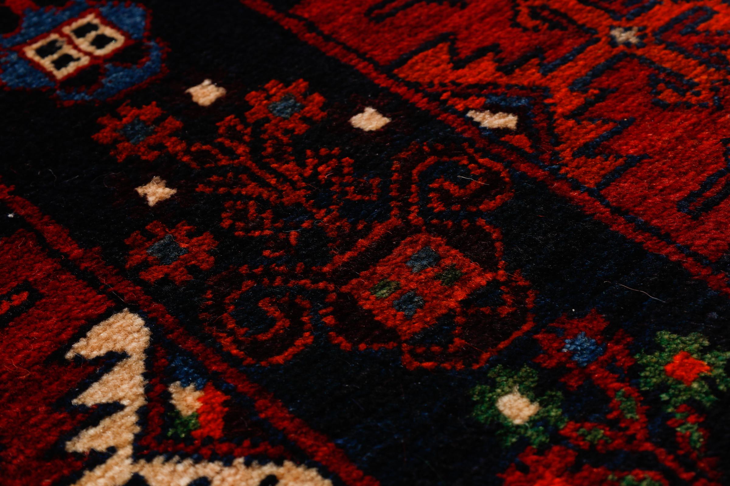 This rug belongs to village and nomadic rugs from Iran, formerly Persia. This type of rug is knotted by hand in smaller towns and villages in old tradition. Even nomads still knot Persian rugs in the open air. The rugs are knotted without a draft and completely from the mind. They are characterized by classical ornaments, which are arranged in straight and geometrical patterns. Thanks to their cultural-traditional origin, these rugs have a unique character that embodies ancient Persia.