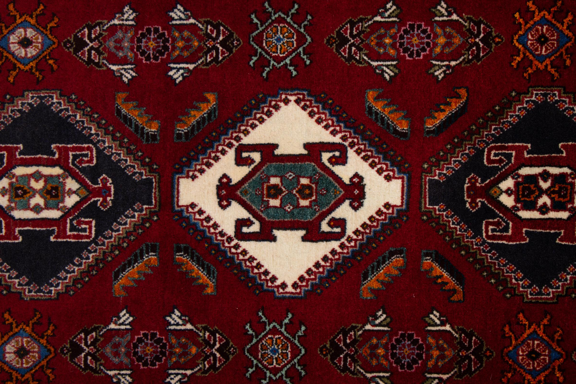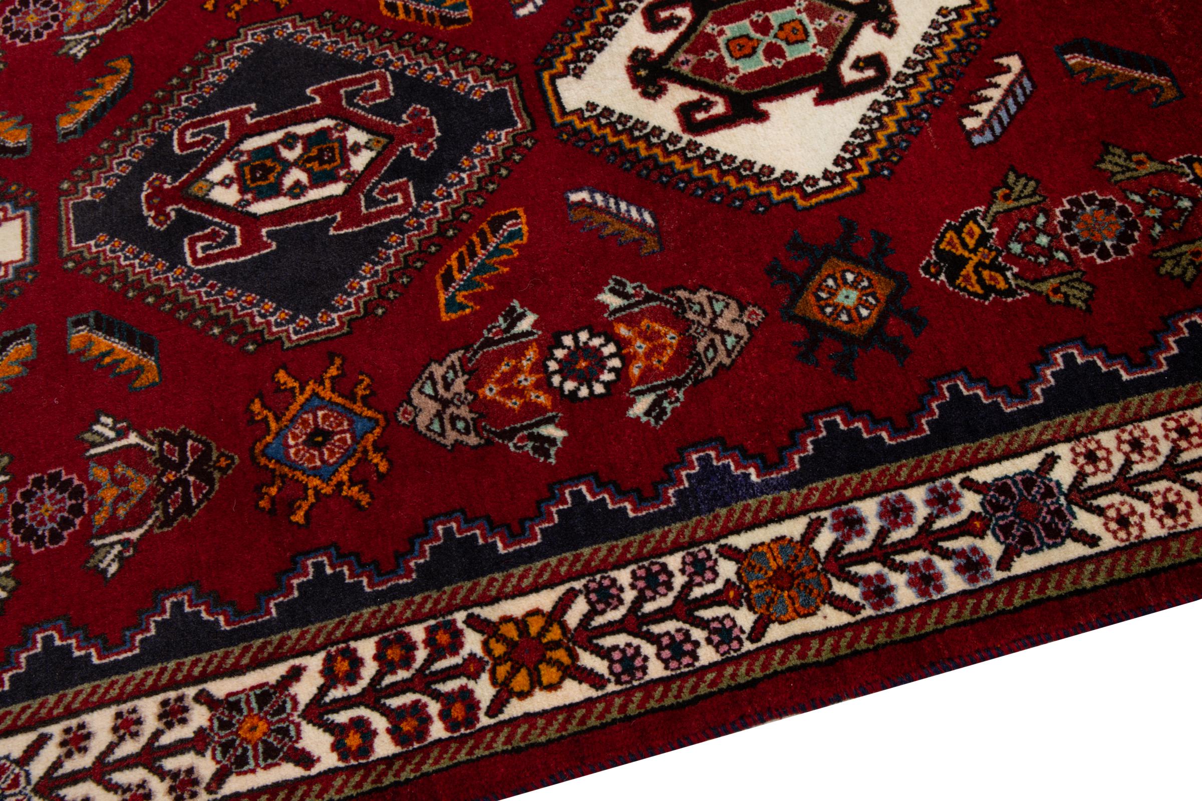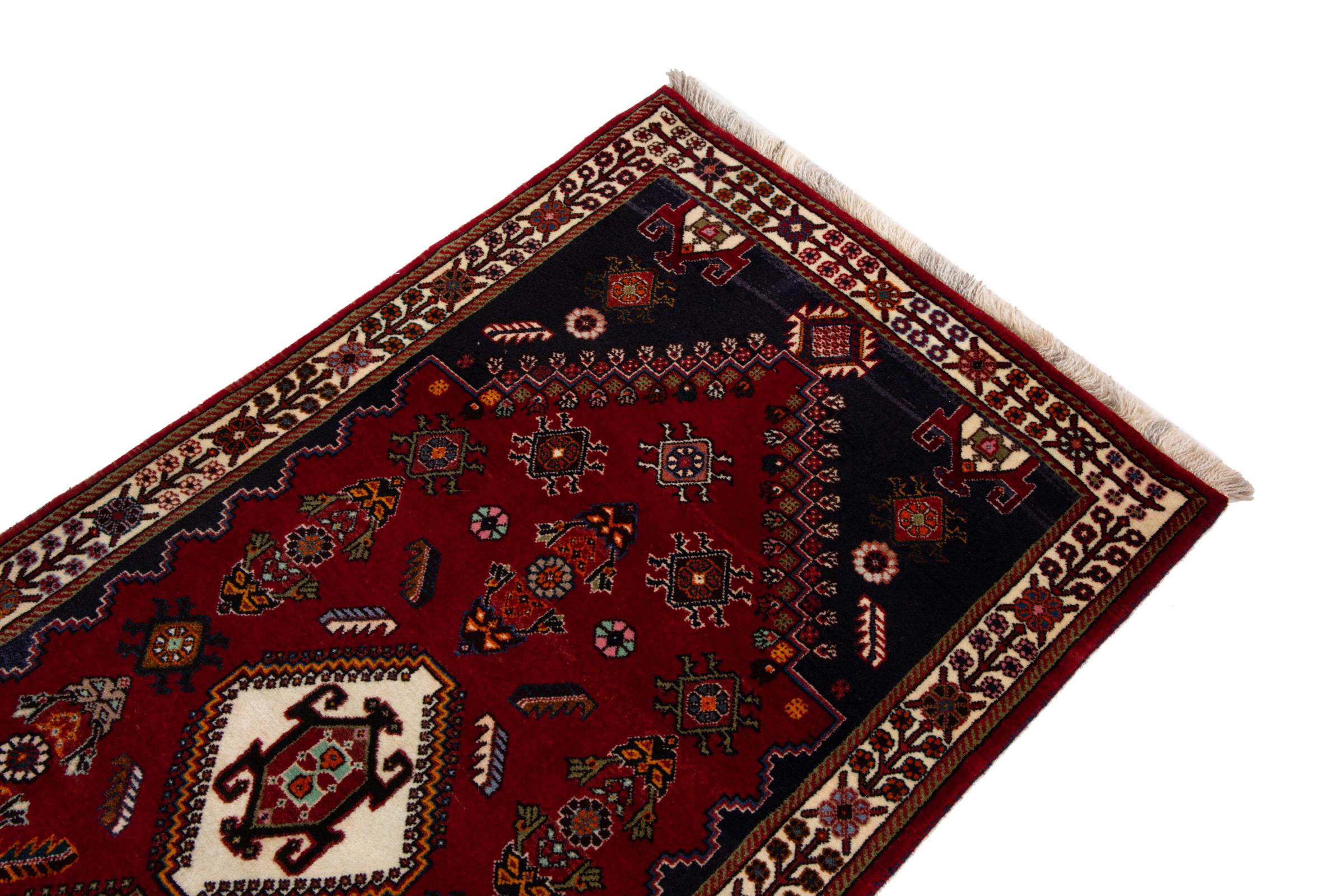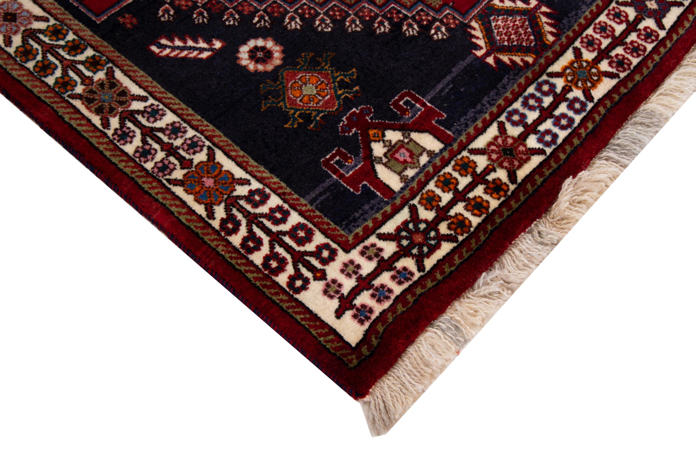 This rug belongs to village and nomadic rugs from Iran, formerly Persia. This type of rug is knotted by hand in smaller towns and villages in old tradition. Even nomads still knot Persian rugs in the open air. The rugs are knotted without a draft and completely from the mind. They are characterized by classical ornaments, which are arranged in straight and geometrical patterns. Thanks to their cultural-traditional origin, these rugs have a unique character that embodies ancient Persia.