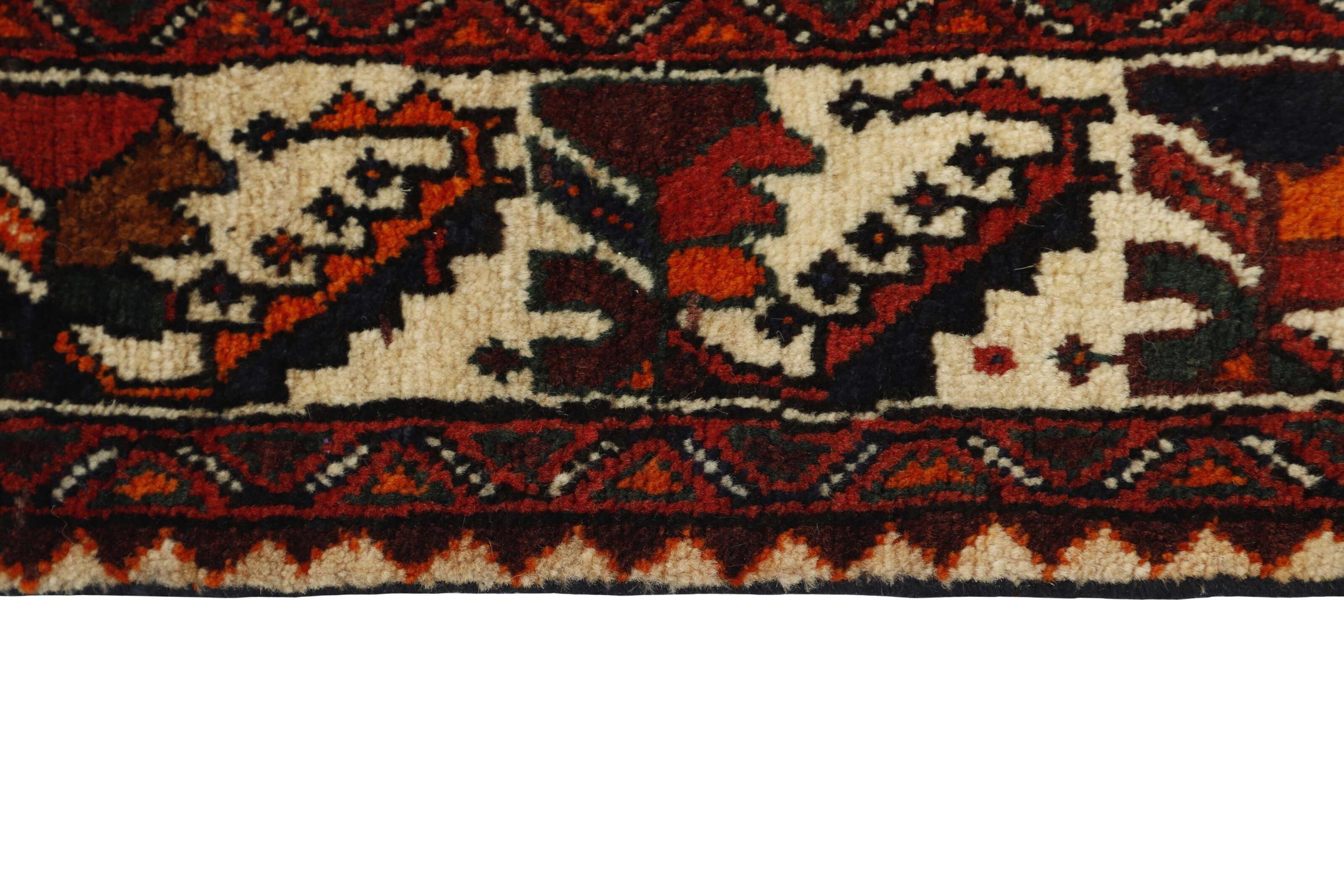 This rug belongs to village and nomadic rugs from Iran, formerly Persia. This type of rug is knotted by hand in smaller towns and villages in old tradition. Even nomads still knot Persian rugs in the open air. The rugs are knotted without a draft and completely from the mind. They are characterized by classical ornaments, which are arranged in straight and geometrical patterns. Thanks to their cultural-traditional origin, these rugs have a unique character that embodies ancient Persia.
