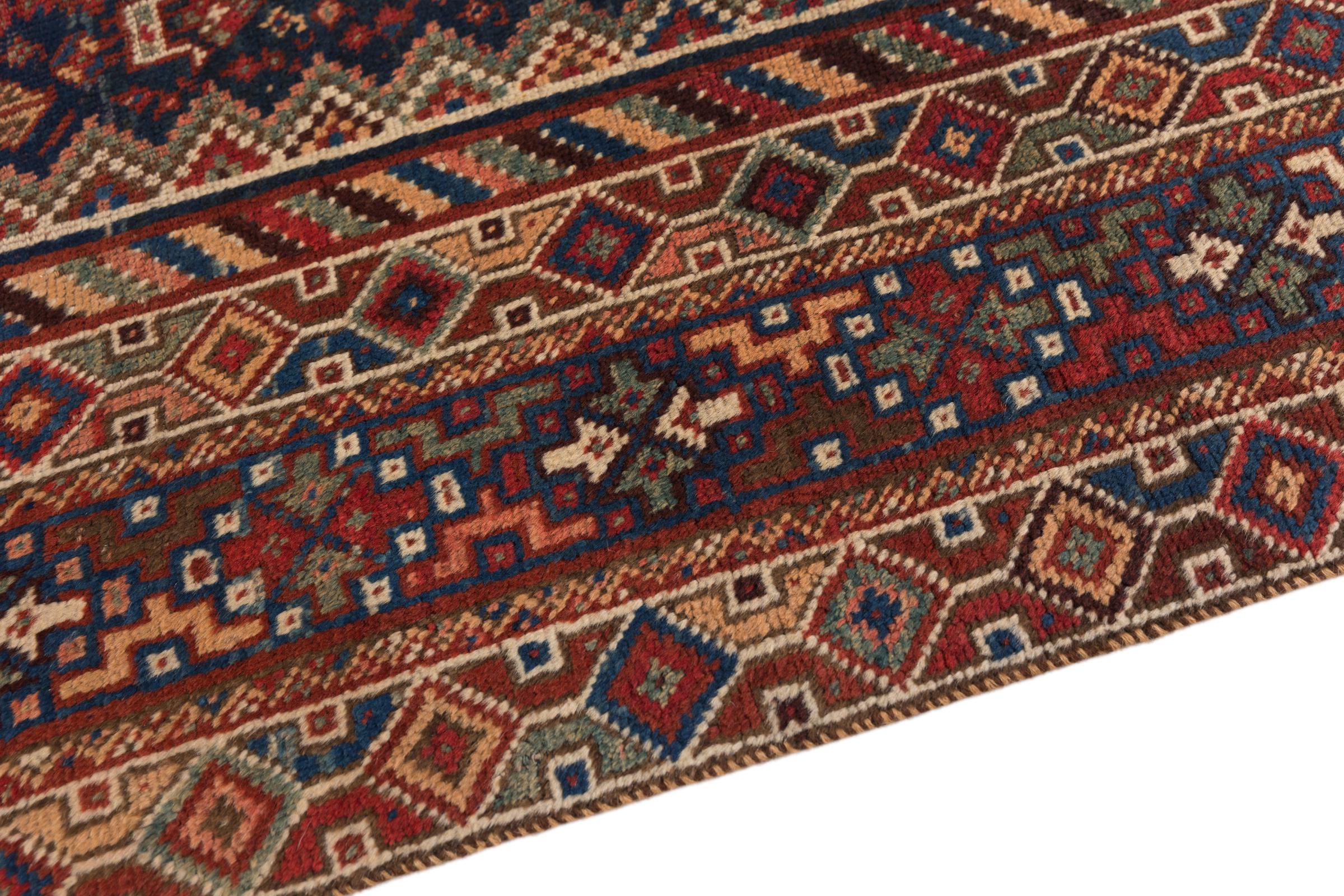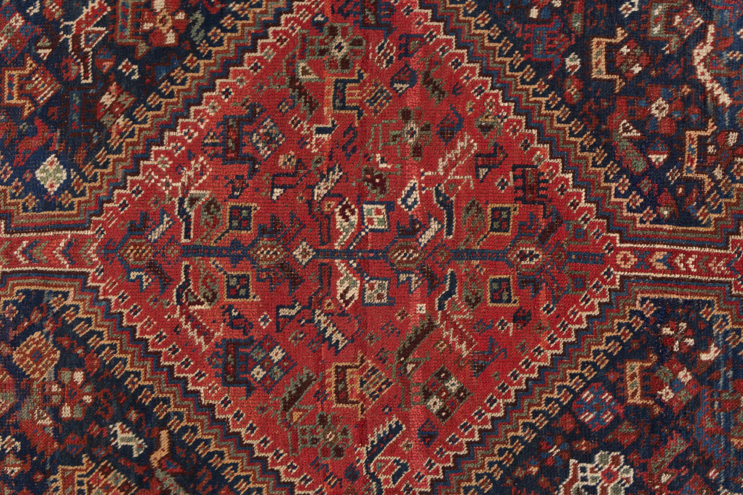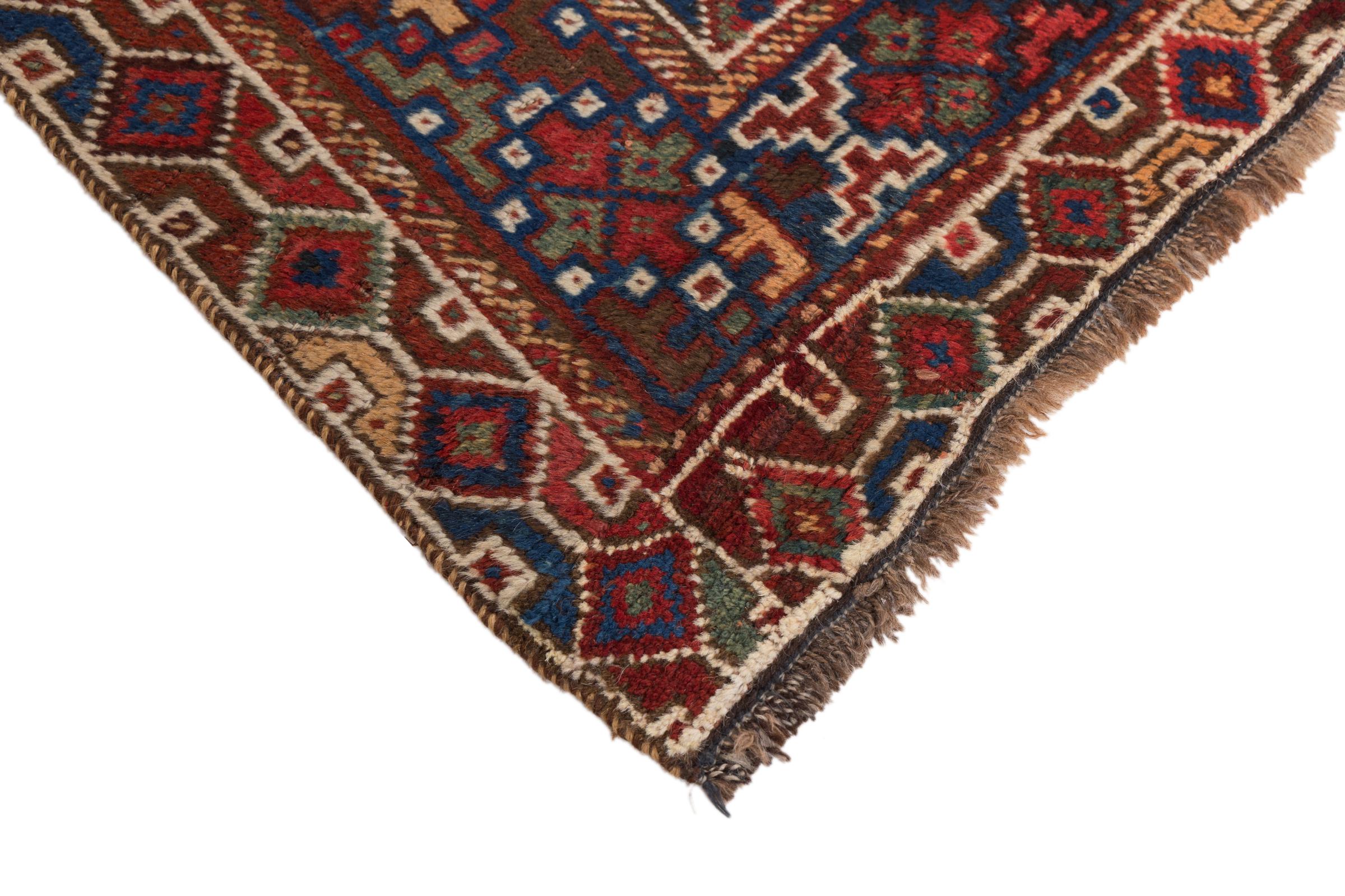 This rug belongs to village and nomadic rugs from Iran, formerly Persia. This type of rug is knotted by hand in smaller towns and villages in old tradition. Even nomads still knot Persian rugs in the open air. The rugs are knotted without a draft and completely from the mind. They are characterized by classical ornaments, which are arranged in straight and geometrical patterns. Thanks to their cultural-traditional origin, these rugs have a unique character that embodies ancient Persia.
