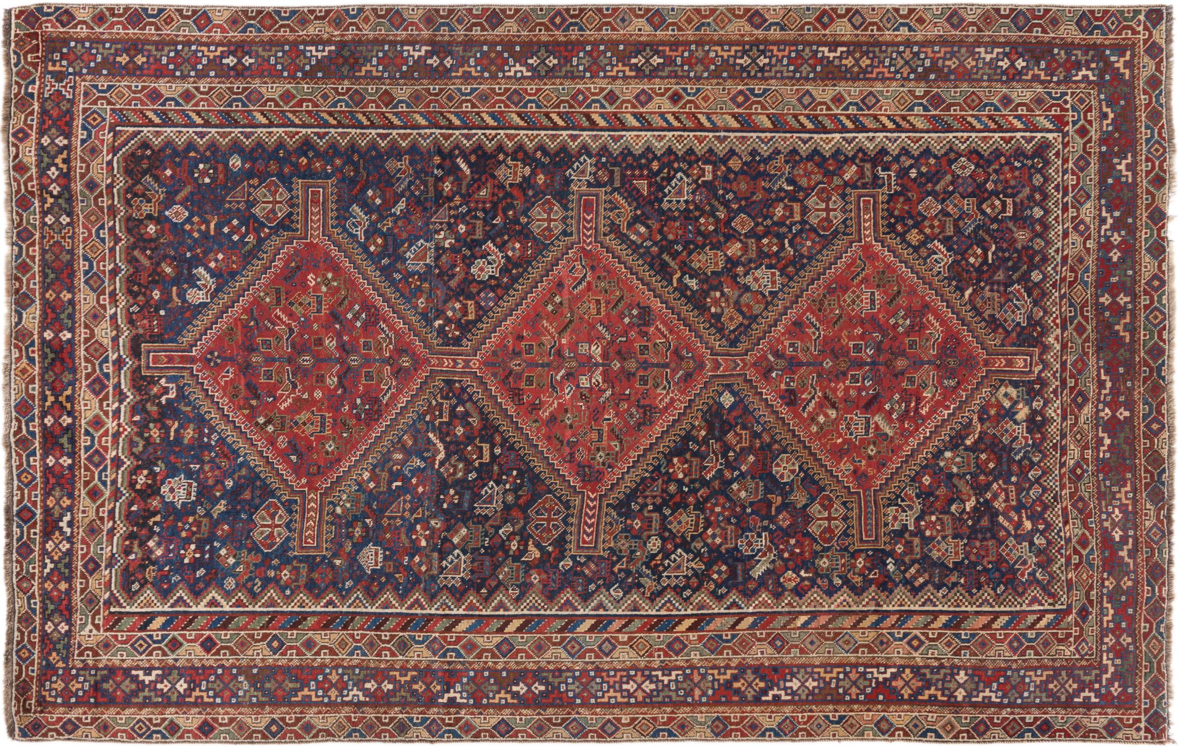 This ghashghai is a real highlight. Its colours and patterns reflect the life of the Ghashghai nomads of Iran. These nomadic tribes live mainly in the neighbourhood of the city of Shiraz. Bring a piece of ancient Persian culture into your own four walls.