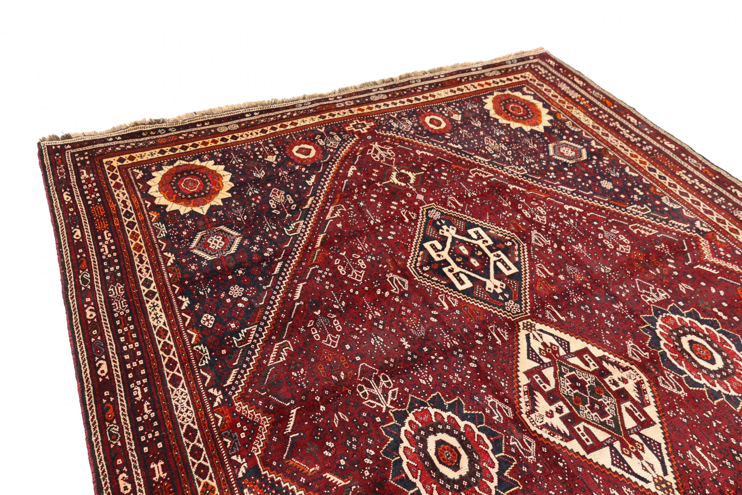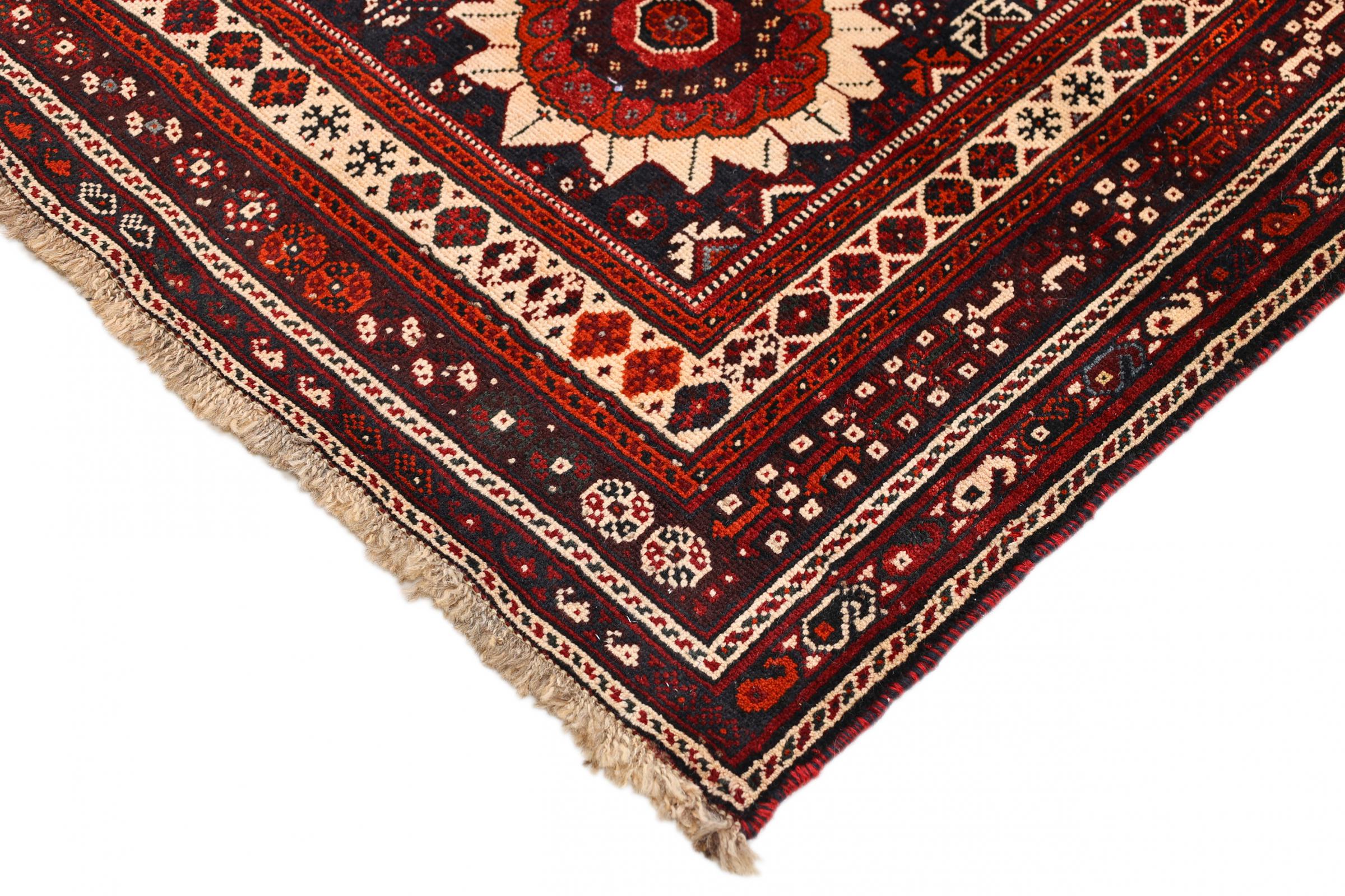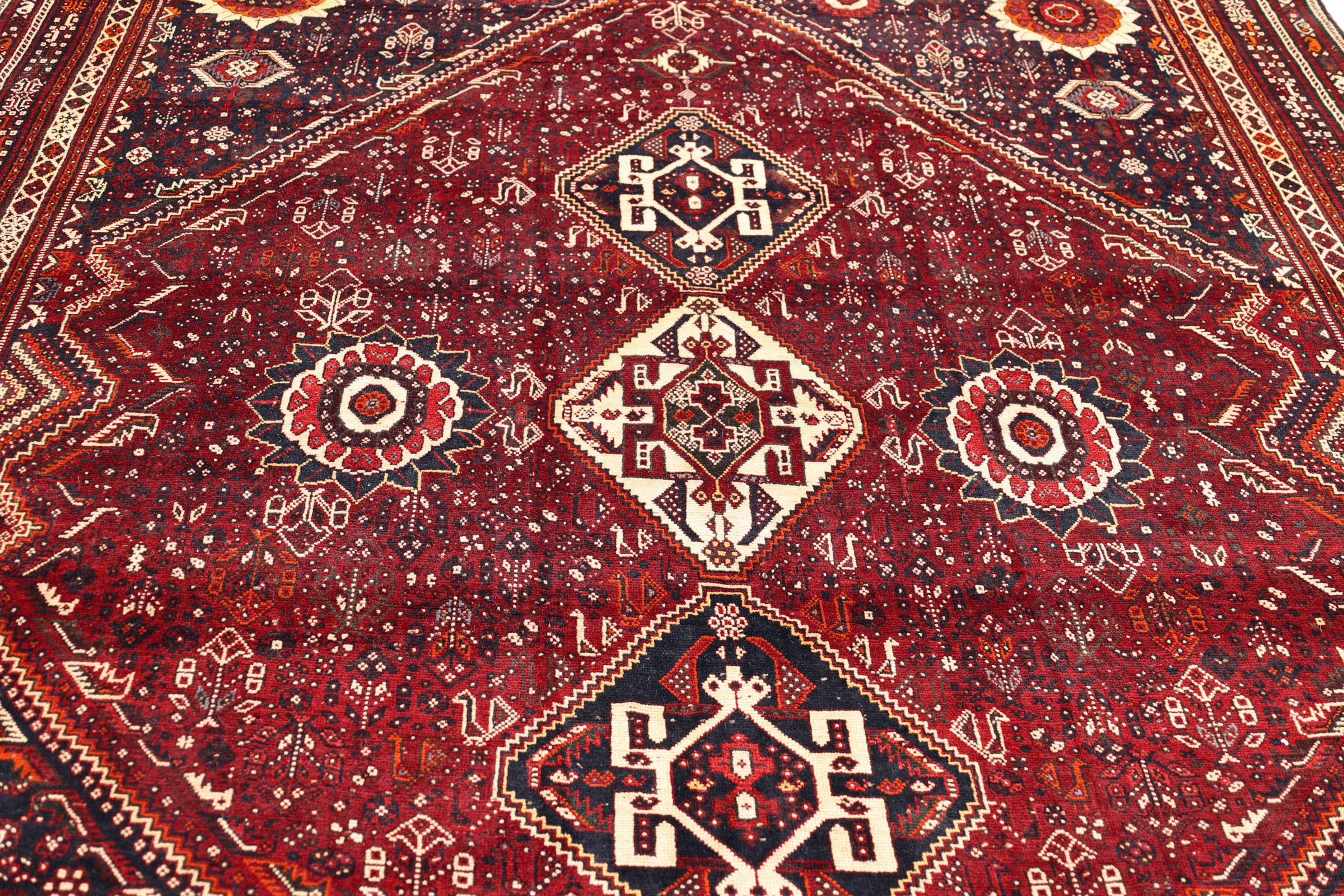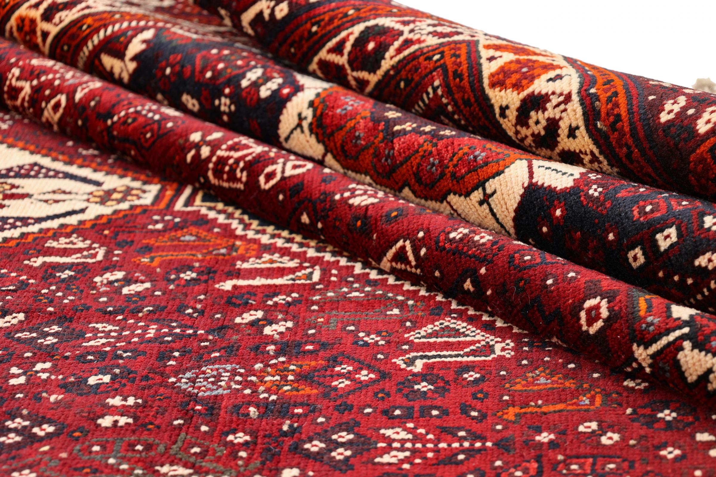 This rug belongs to village and nomadic rugs from Iran, formerly Persia. This type of rug is knotted by hand in smaller towns and villages in old tradition. Even nomads still knot Persian rugs in the open air. The rugs are knotted without a draft and completely from the mind. They are characterized by classical ornaments, which are arranged in straight and geometrical patterns. Thanks to their cultural-traditional origin, these rugs have a unique character that embodies ancient Persia.