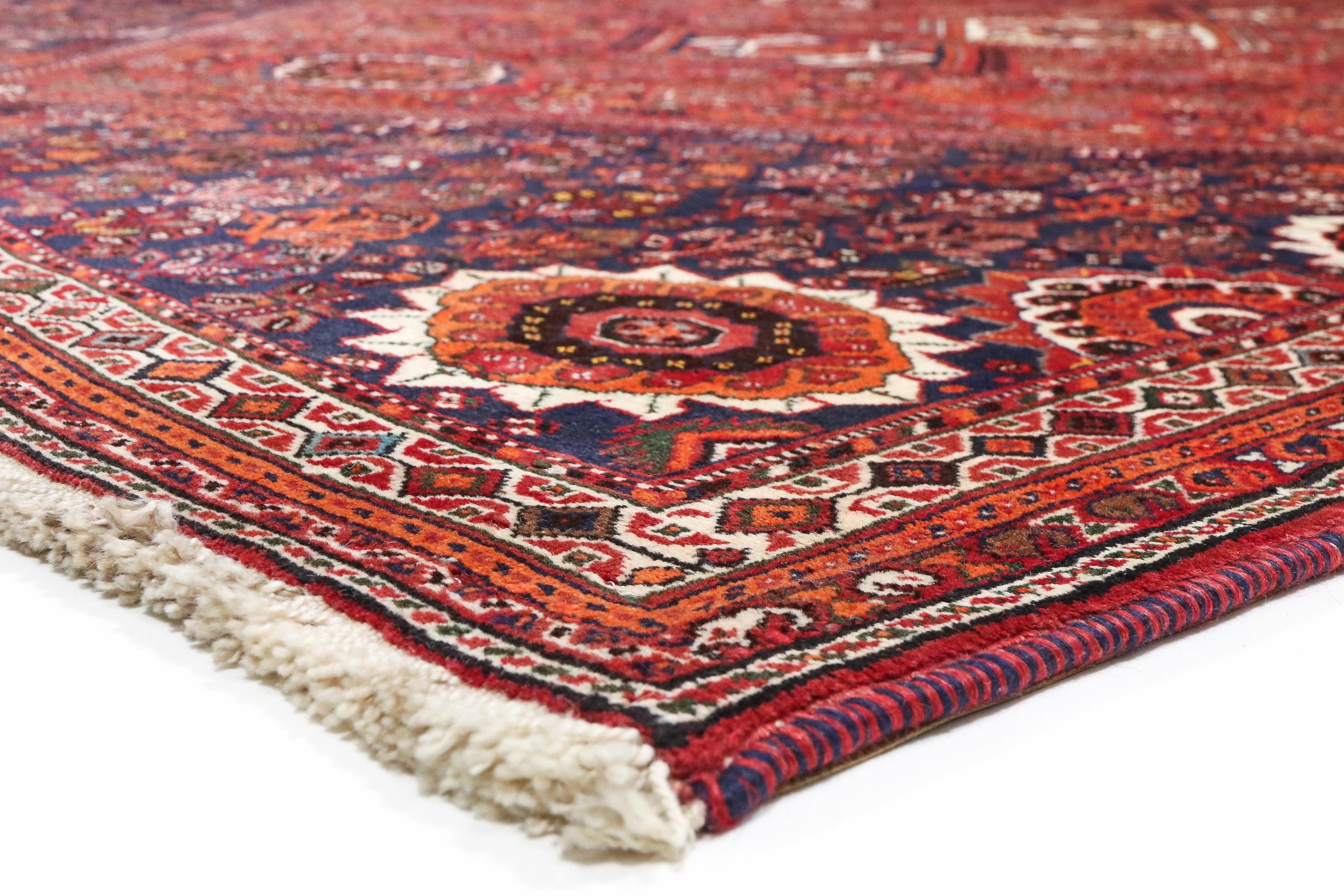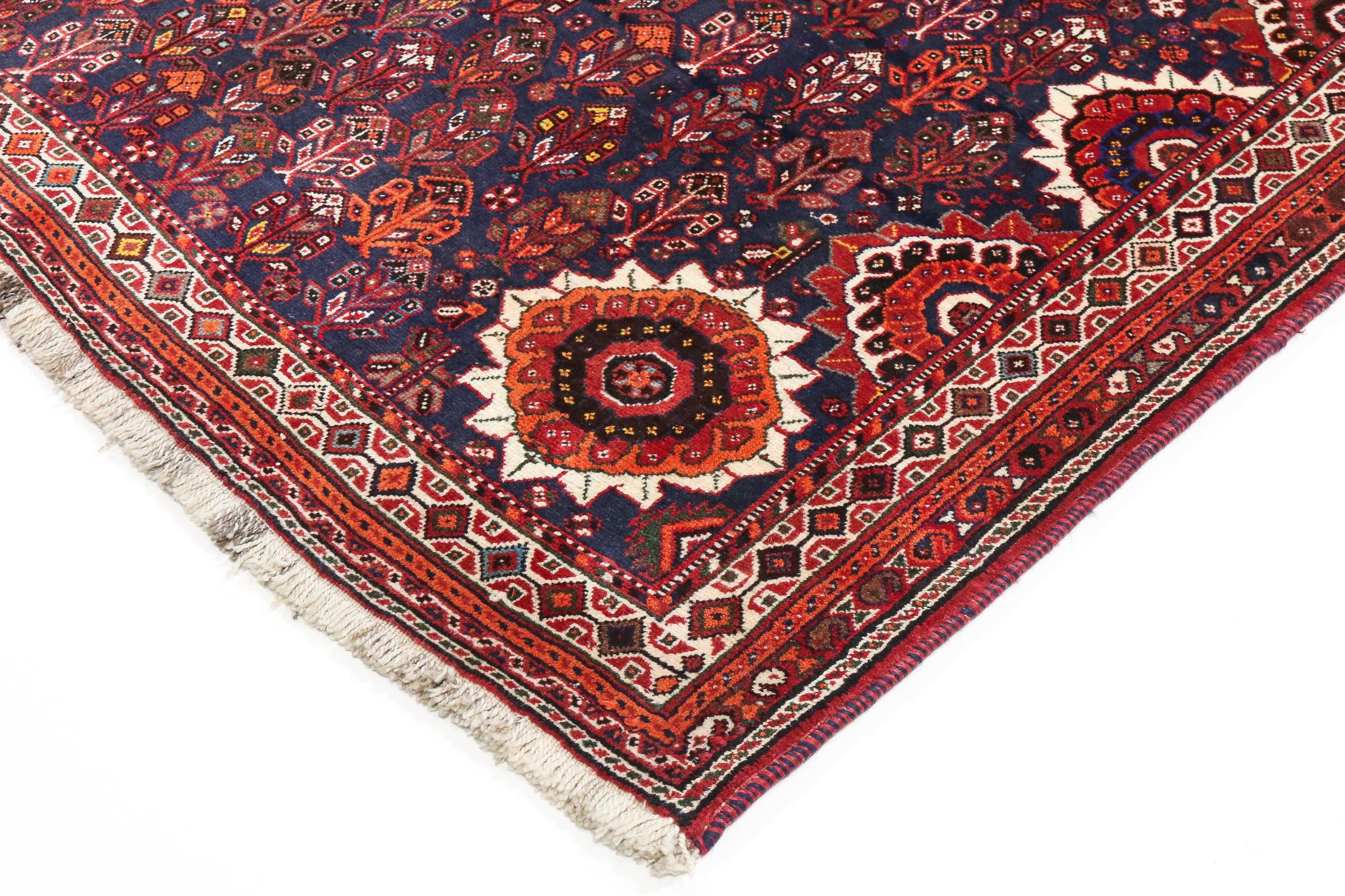 This rug belongs to village and nomadic rugs from Iran, formerly Persia. This type of rug is knotted by hand in smaller towns and villages in old tradition. Even nomads still knot Persian rugs in the open air. The rugs are knotted without a draft and completely from the mind. They are characterized by classical ornaments, which are arranged in straight and geometrical patterns. Thanks to their cultural-traditional origin, these rugs have a unique character that embodies ancient Persia.
