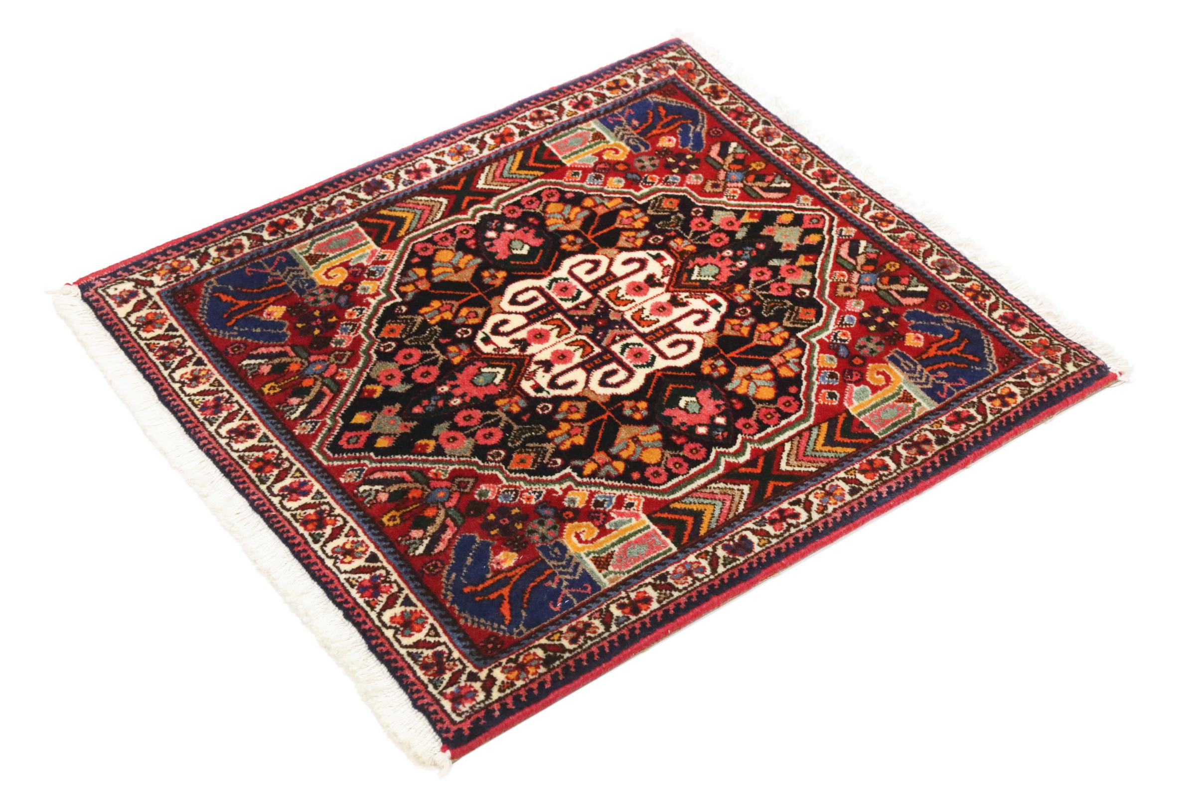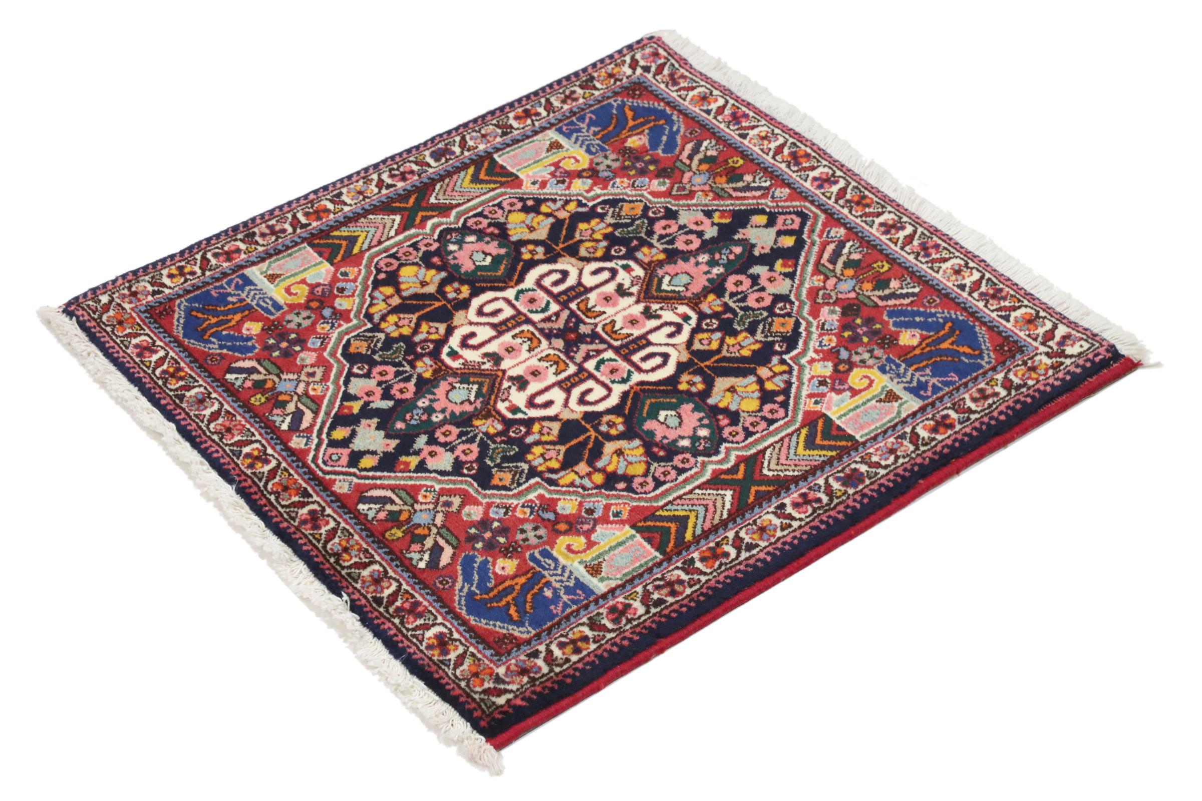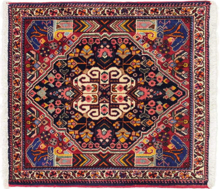 Carpet ID: 181995002310799 Size: 67x62 cm Thickness: ap. 12 mm Knot density: 200 000 - 250 000 / m² Manufacturing: Knotted by hand Pile: Handspun wool Warp: Cotton Origin: Persia Age: New Weight: ap. 1 kg Also know as Qashqai, Gaschgai, Gashghai, Kashgai In stock: Unique - Only 1 in stock