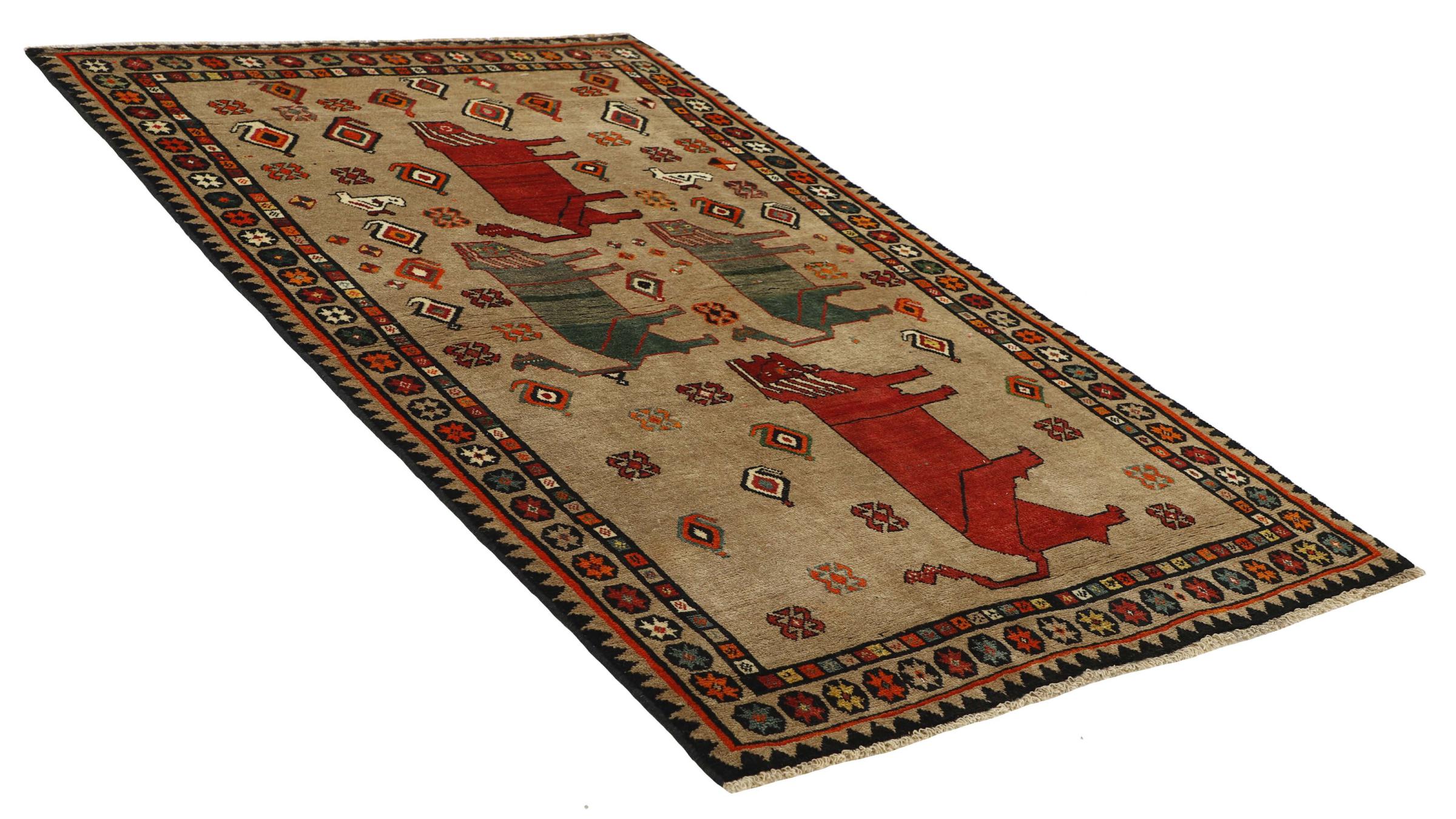 Carpet ID: 251778005153851 Size: 224x134 cm Thickness: ap. 12 mm Knot density: 160 000 - 200 000 / m² Manufacturing: Knotted by hand Pile: Handspun wool Warp: Sheep wool Origin: Persia Age: 20-30 years (New) Weight: ap. 11 kg Also know as Qashqai, Gaschgai, Gashghai, Kashgai In stock: Unique - Only 1 in stock